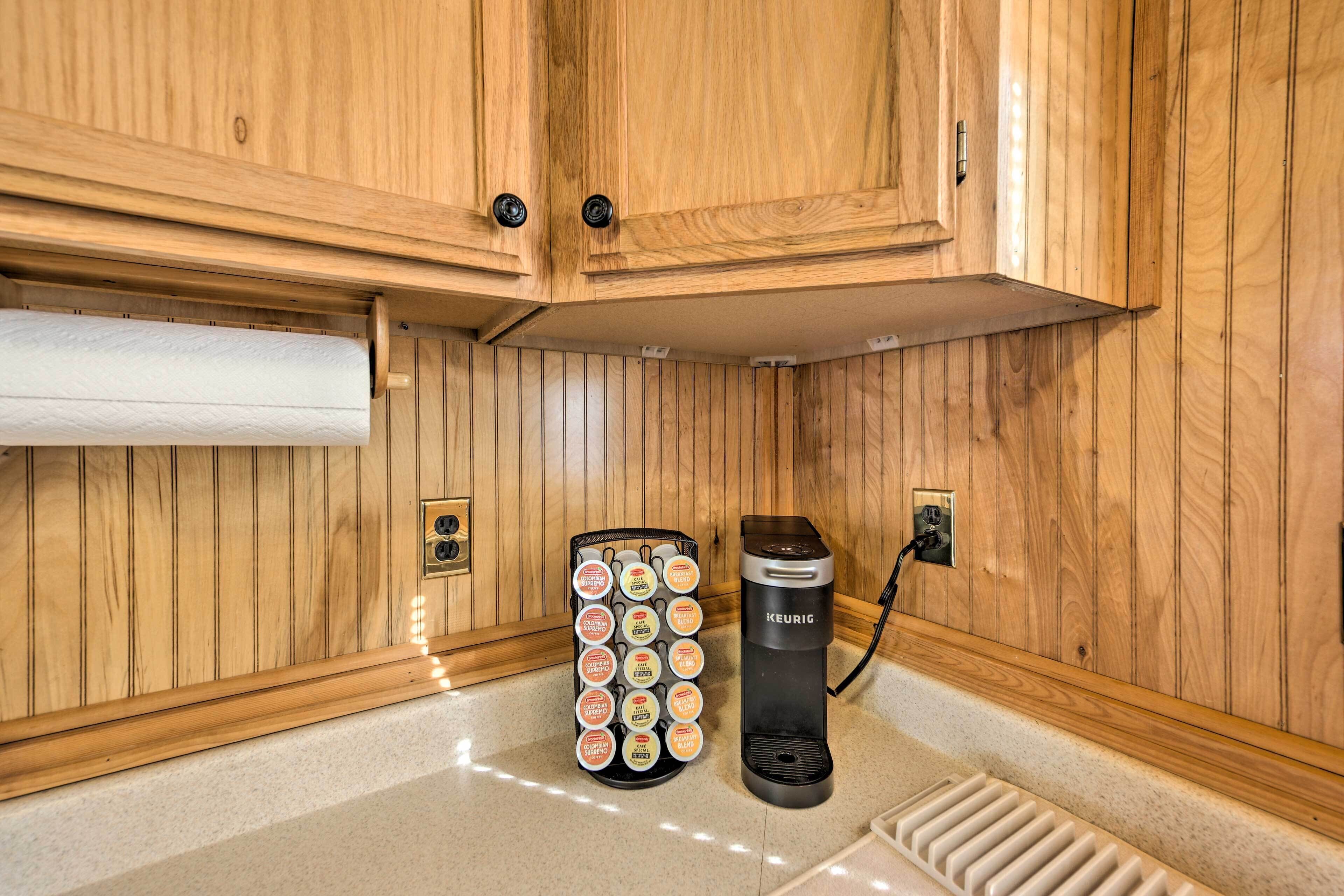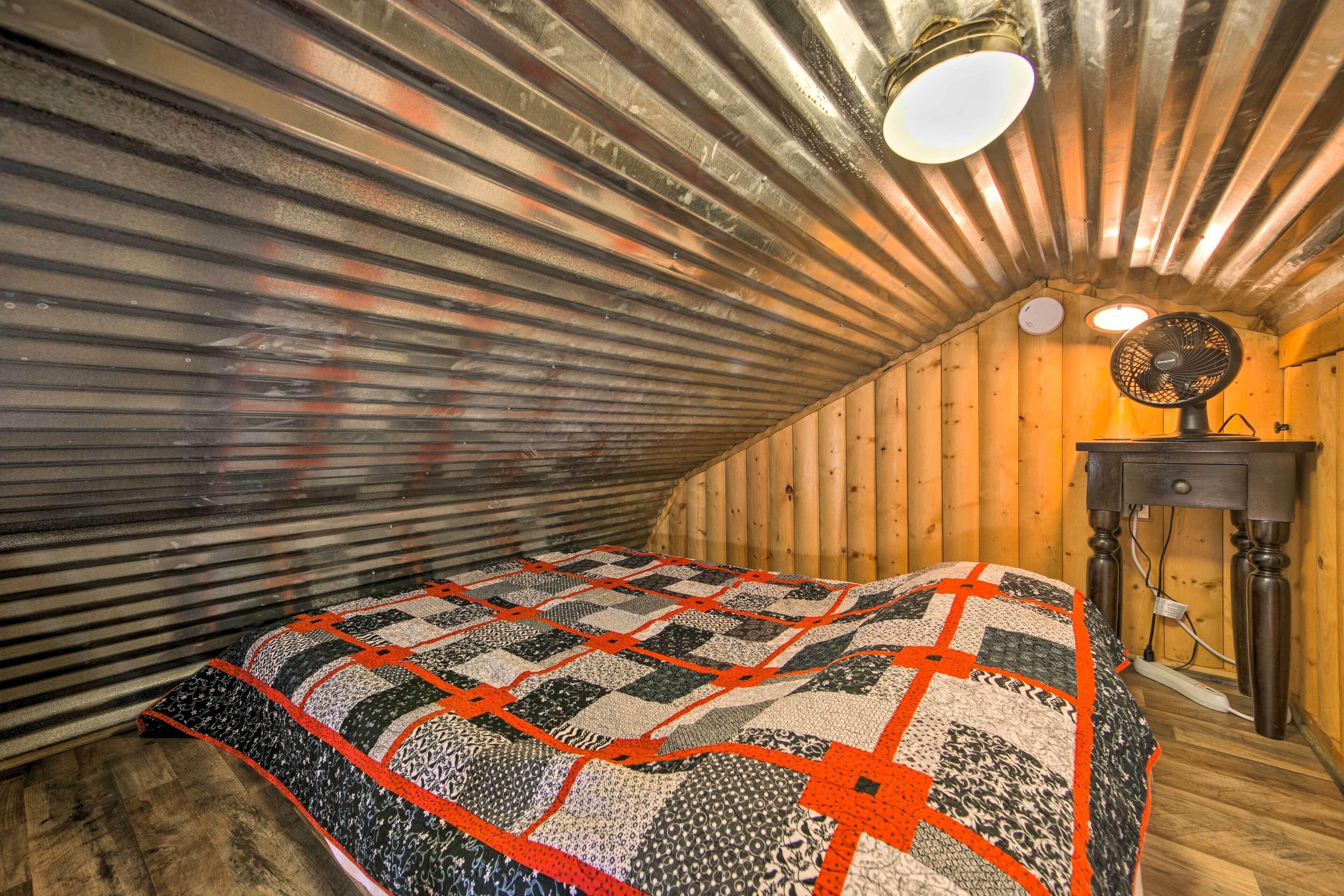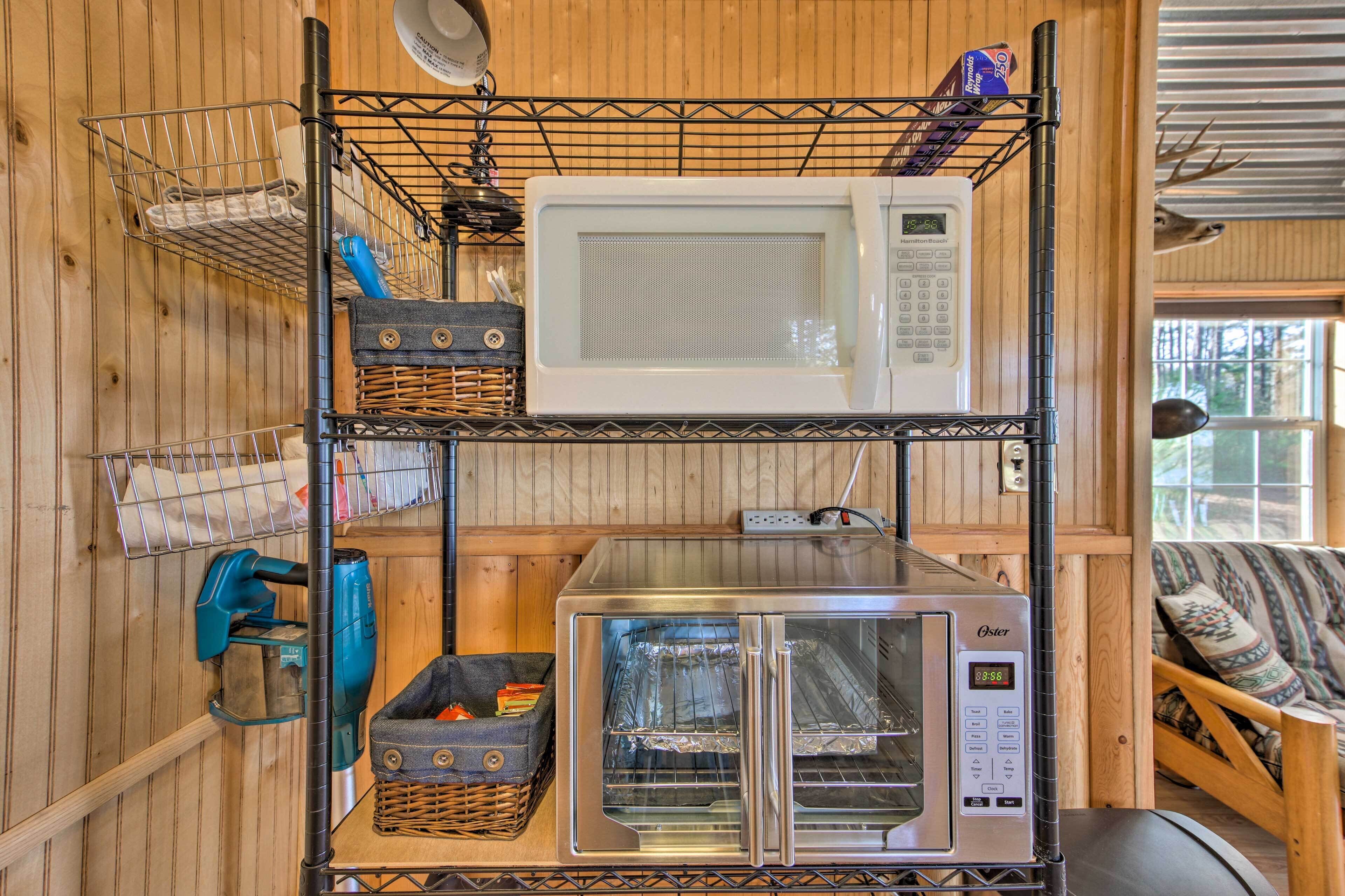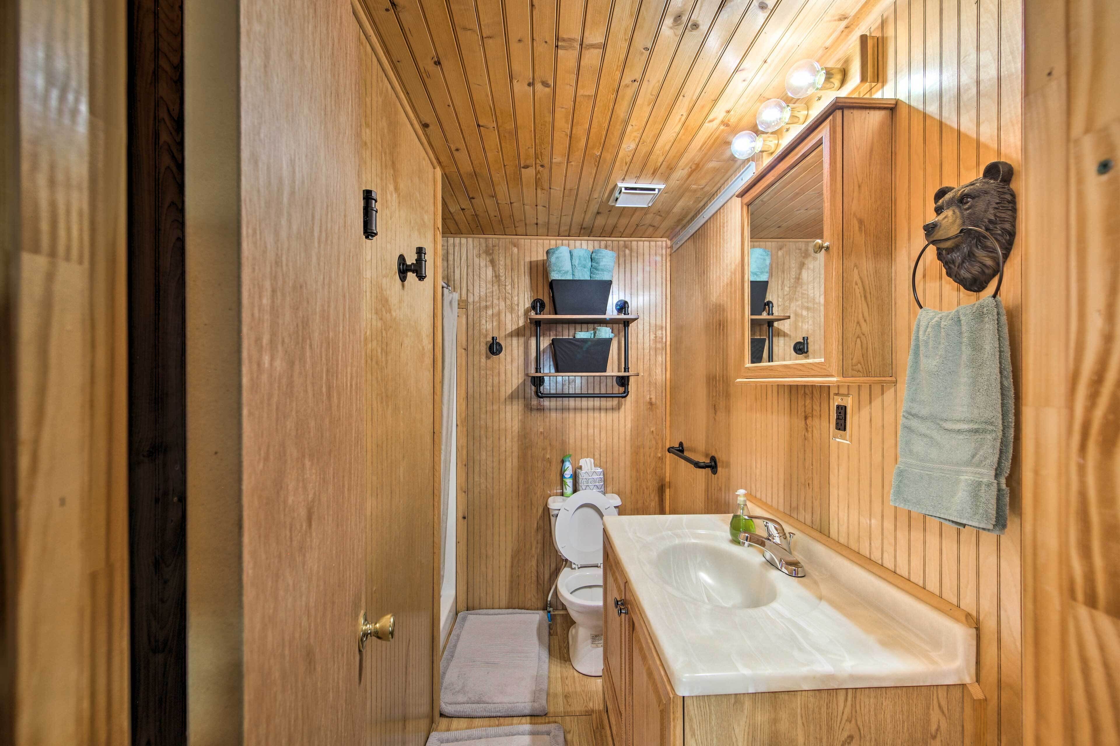 Lakefront Cabin w/ 2 Lofts, Boats on 4 Acres From hosting afternoon picnics to making memories on the water, this lakefront vacation rental has everything you need for a blissful stay! Situated on 4+ acres, this 1-bathroom studio comes complete with a wood-burning fire pit, a gas grill, and 2 additional sleeping lofts for extra space. Cruise around the lake in the provided kayaks, enjoy fishing of...