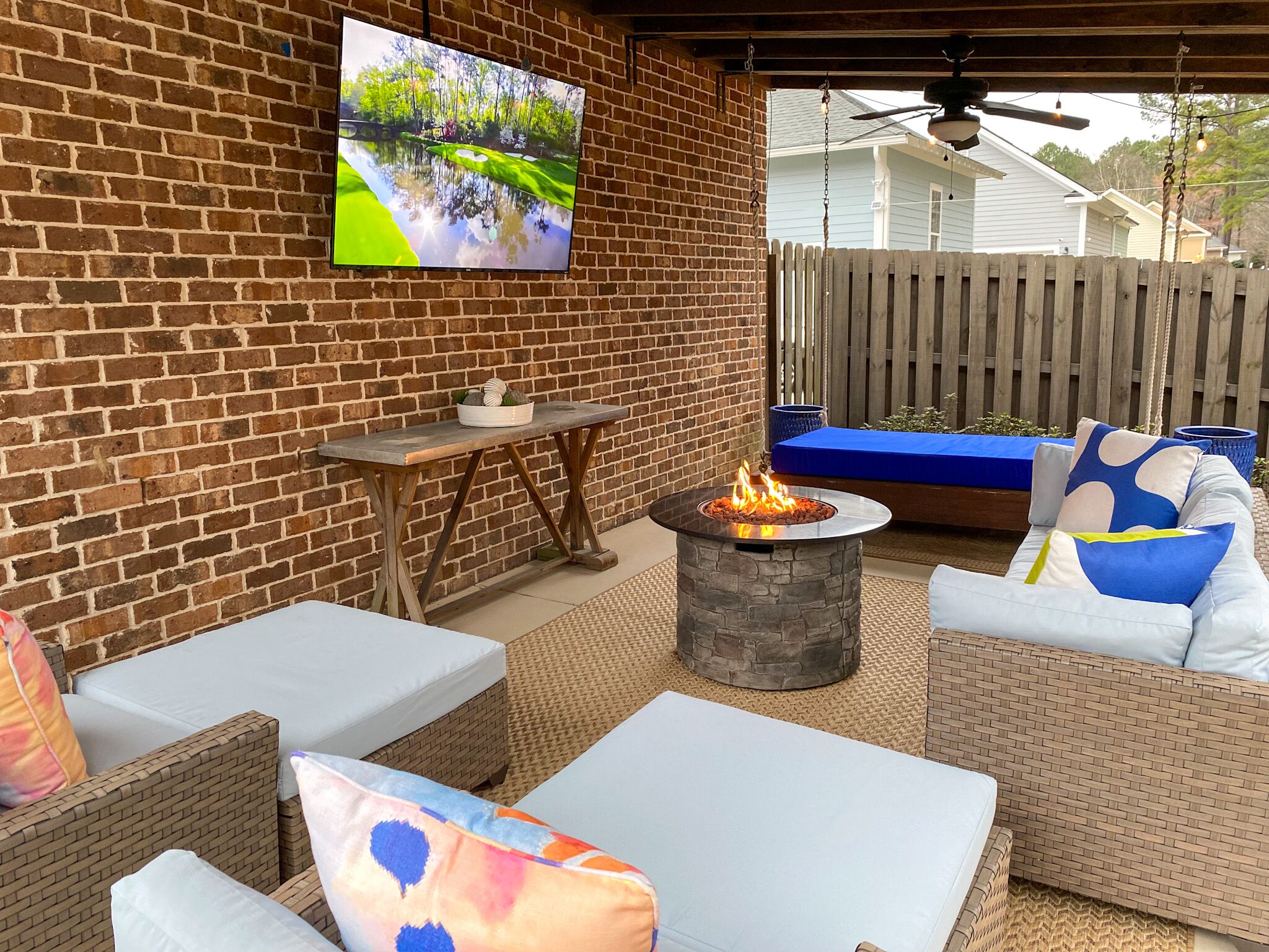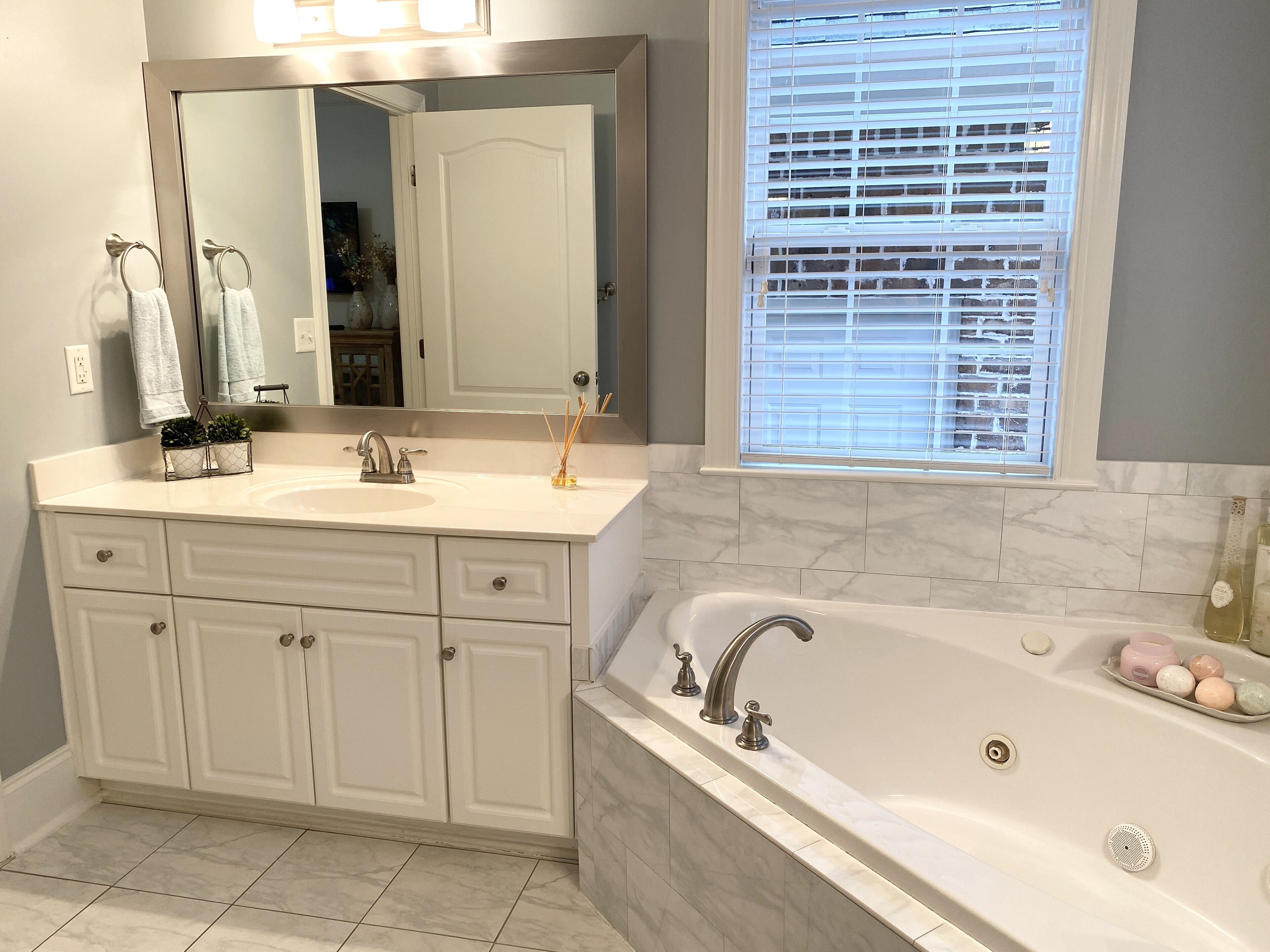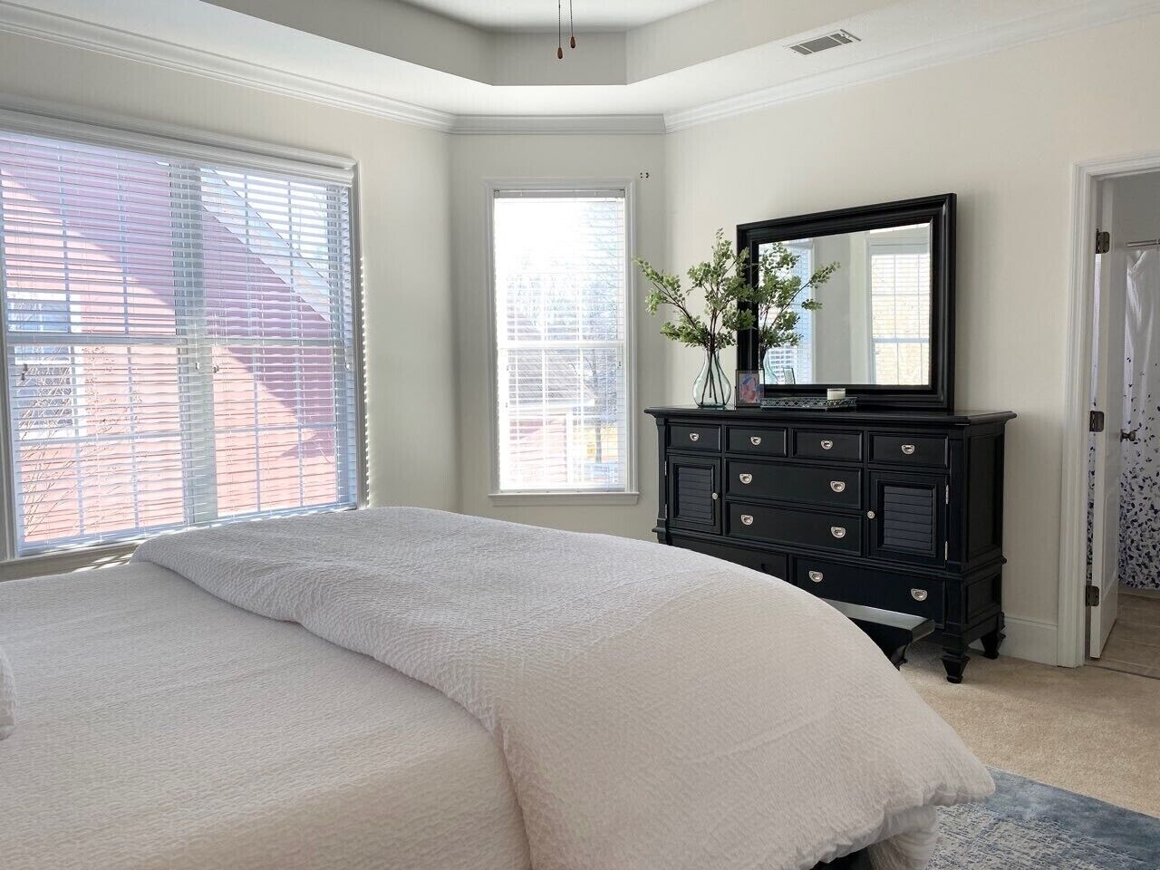 Masters & Women’s Amateur Rental Located in the popular Mitchell Park neighborhood of Riverwood Plantation! All brick, 2-story Charleston-style home with detached 2-car garage in rear and view of the 1 acre park across the street. MAIN LEVEL open floor plan boasts a beautiful living room with tons of natural light, spacious dining room, new hardwood floors throughout, and kitchen with NEW quartz countertops/tile backsplash/stainless steel appliances and peninsula island. Also on main level - Owner's suite with a king bed, updated bathroom, laundry room w/ pedestrian entrance, and 1/2 bath. UPPER LEVEL has 3 generously sized bedrooms and 2 bathrooms - one bedroom with queen bed and a private, attached bath. Second bedroom with Queen bed and a couch. Third bedroom has Queen bed and is next to upstairs patio. Full hall bathroom with a two-sink vanity included upstairs. Side porches located on main level and upper level overlook the park space. Covered patio in back with fully fenced, private yard. Walking distance to Women’s Amateur Tournament and 12.5 miles from Augusta National gates. Golf Cart included and can be ridden to Publix supermarket and local restaurants at neighborhood entrance.