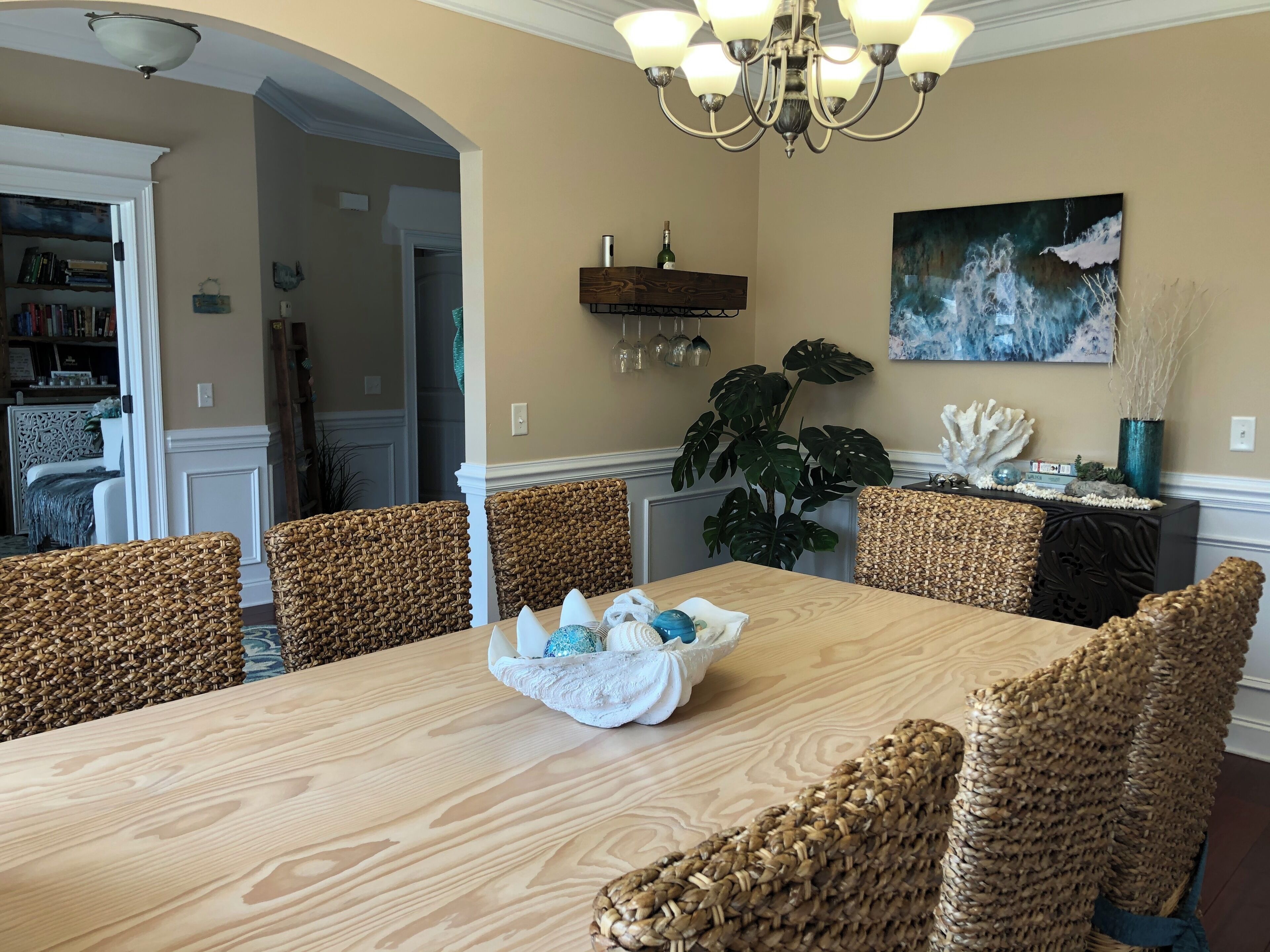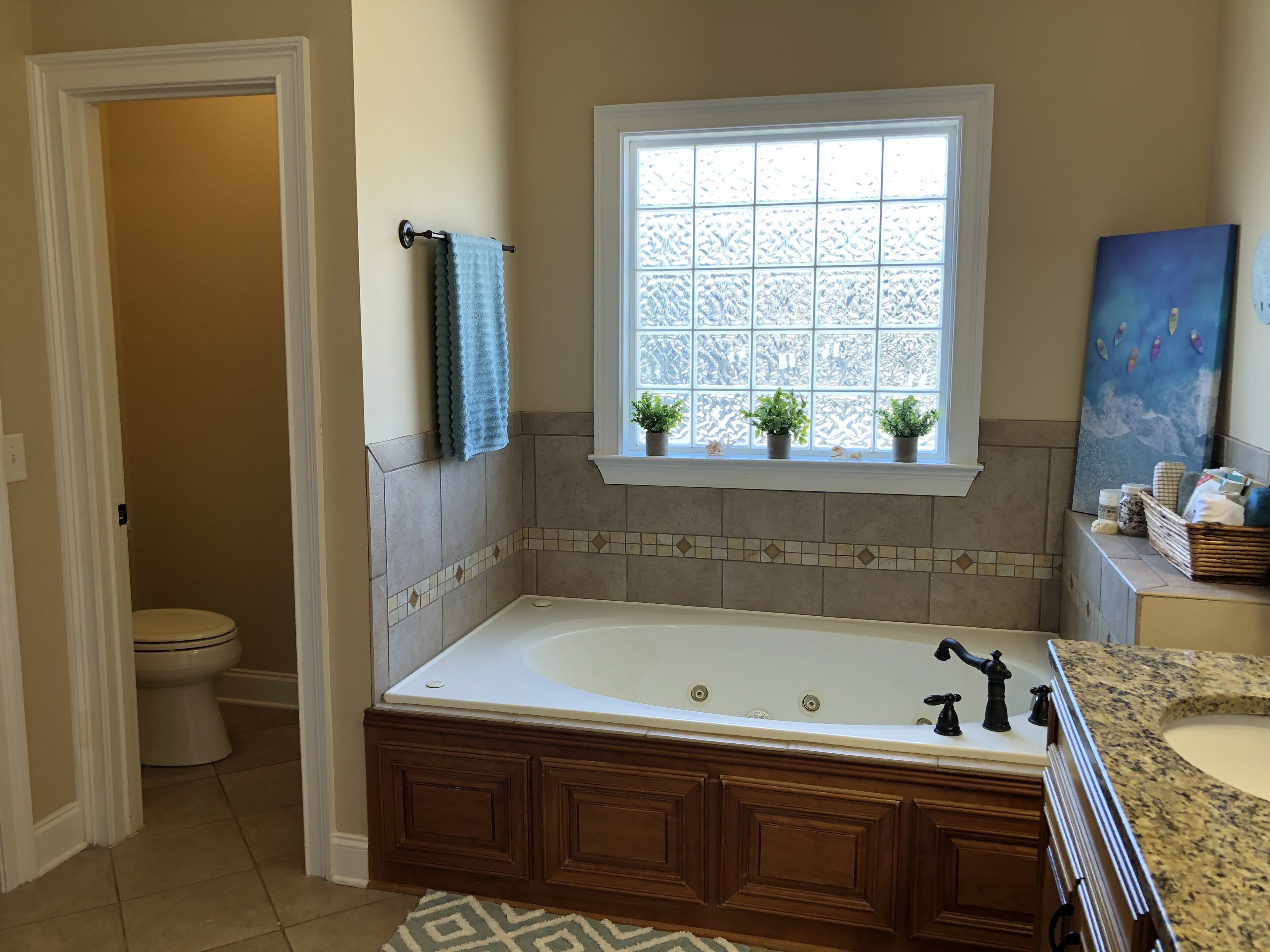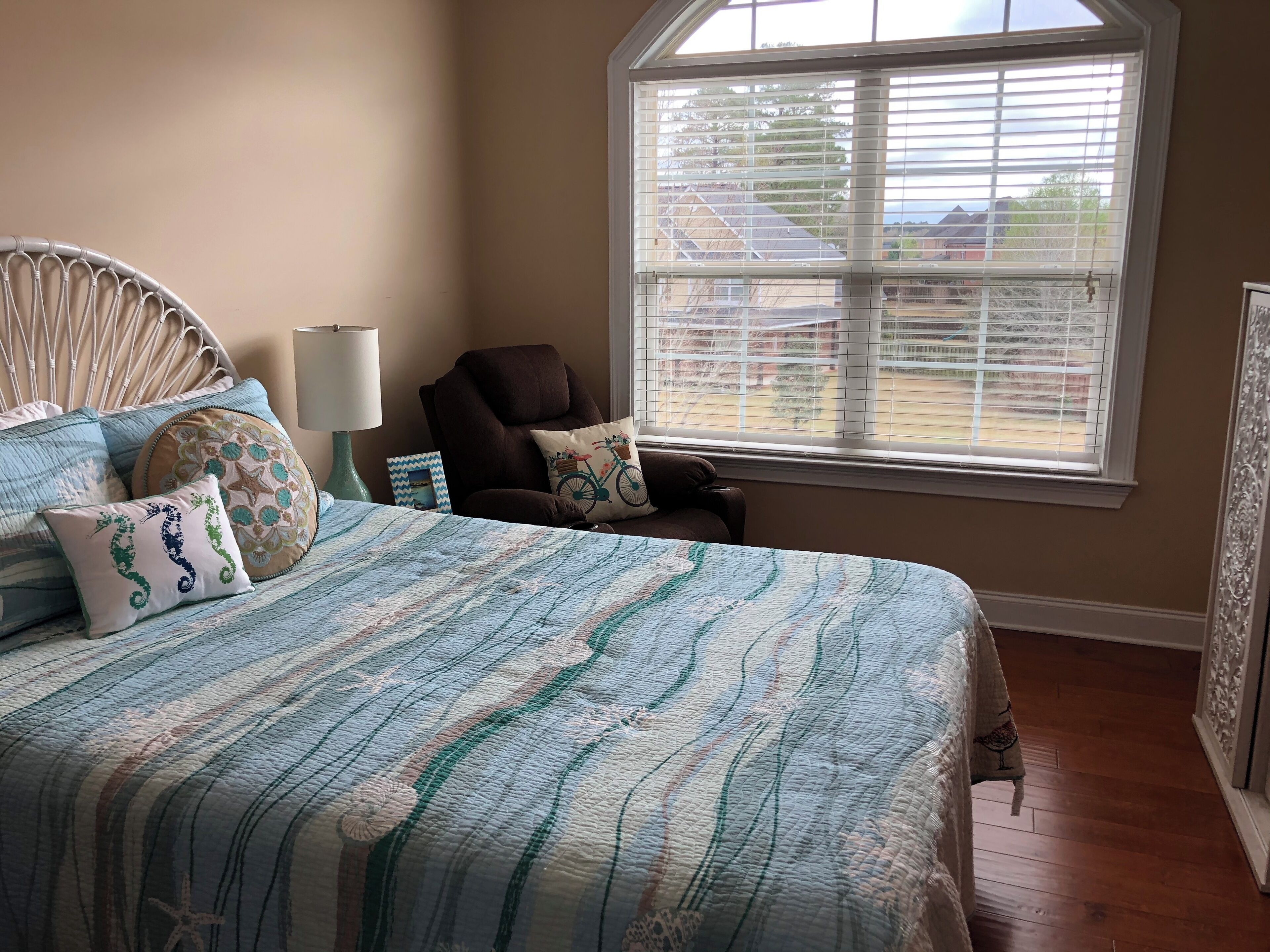 2025 Masters Rental 5 Bd/3 Ba + Heated, Saltwater Pool + Fire Pit + Bocce Ct! Enjoy a relaxing, coastal vibe while visiting Augusta, GA for the Masters Tournament 2025! This house in Evans (13 miles from the Augusta National) has 5 cozy bedrooms (sleeps up to 12) + 3 full bathrooms + a heated, saltwater pool (40' x 16') with a natural rock waterfall! The pool is kept at a very comfortable 85 F and great for swimming laps or just playing around (we have lots of towels, robes and goggles) and you'll love the sound of cascading water. We are in the process of completely transforming the backyard, so more pictures will be added as we complete areas like the fire pit, but you can see, in the picture from the sunroom, the large flagstone patio and the pool, and we've also included a current photo of the bocce court. More to come soon like patio furniture :) The only caveat is that we have just built an addition onto the house and we may stay there during your stay. - 4 Bedrooms (upstairs) for up to 9 guests:The master bedroom at the top of the stairs is its own suite with an electric fireplace, an exercise nook with a pool view from the treadmill, plus its own large bathroom with a jacuzzi tub (for 1-2 guests). The tropical bedroom features a split king bed that can be converted to 2 twin XLs if needed (one medium mattress and one firm mattress; for 1-2 guests); this has a pool view.The boat bedroom down the hall is great for a single traveler who can enjoy a full-sized bed all to themselves or a few kids who will have to decide who gets the top bunk (for 1-3 guests)! No pool view.Across the hall, the beach bedroom is for those who'd like a queen bed, desk and a heated, massage chair while they watch TV (for 1-2 guests). No pool view.- Downstairs sleeping options (for up to 3 guests):1 bedroom downstairs with a twin bed and pool view (1 guest).We also have a cot and a couch that can convert into a bed for 2 extra guests. - Bathrooms:There are 3 full-sized bathrooms, two upstairs and one downstairs. There is also a washer and dryer upstairs if needed with laundry detergent, stain remover and dryer sheets. This room actually has a pool view! Common Areas Downstairs + Extra Amenities:Guests can enjoy their morning coffee or tea prepared in the coffee nook (there is a large drip coffee maker, electric kettle, Mr. Coffee iced coffee maker, Keurig + pods and a Nespresso + pods) in the bright front sitting room that faces east or look out onto the pool from the sunroom. We also have a large dining room that seats 8 comfortably. The glass table in the kitchen can fit another 4 people. You'll feel like you're in your own kitchen with plenty of room to prepare any sized meal with a double oven, glass stove top, Breville combination microwave (it's an oven and air fryer too!) and one of the quietest dishwashers ever so you won't be disturbed while just hanging out, watching TV in the living room or playing games (of which we have plenty including Catan, Cribbage, Mexican Train Dominoes, Quacks of Quedlinburg, Battleship and more + lots of puzzles and books). Then, after you get home from the Tournament, we provide Fubo TV so you won't miss any of the Masters coverage or you can relax and enjoy the sunset from the living room while sitting around the gas fireplace or outside around the pool after grilling on the large charcoal grill. For hanging out at night, you can sit around the fire pit set above the pool and play a game of bocce on our well-lit court.We also provide firewood, charcoal, lighter fluid, breakfast foods and juices, coffees, teas, laundry supplies, luggage racks, bed linens, towels and toiletries to make your stay as easy and comfortable as possible. We hope you'll feel right at home! Important Notes: If clean is important to you, you'll appreciate this house. We keep it clean, and ask the same of our guests. You wouldn't know by visiting, but 2 cats live here; so please consider that if any of your party deals with allergies. Once booked, we will reach out to set up a time on your arrival day to meet you to show you around and welcome you to our house. We are very flexible with check in and out times.