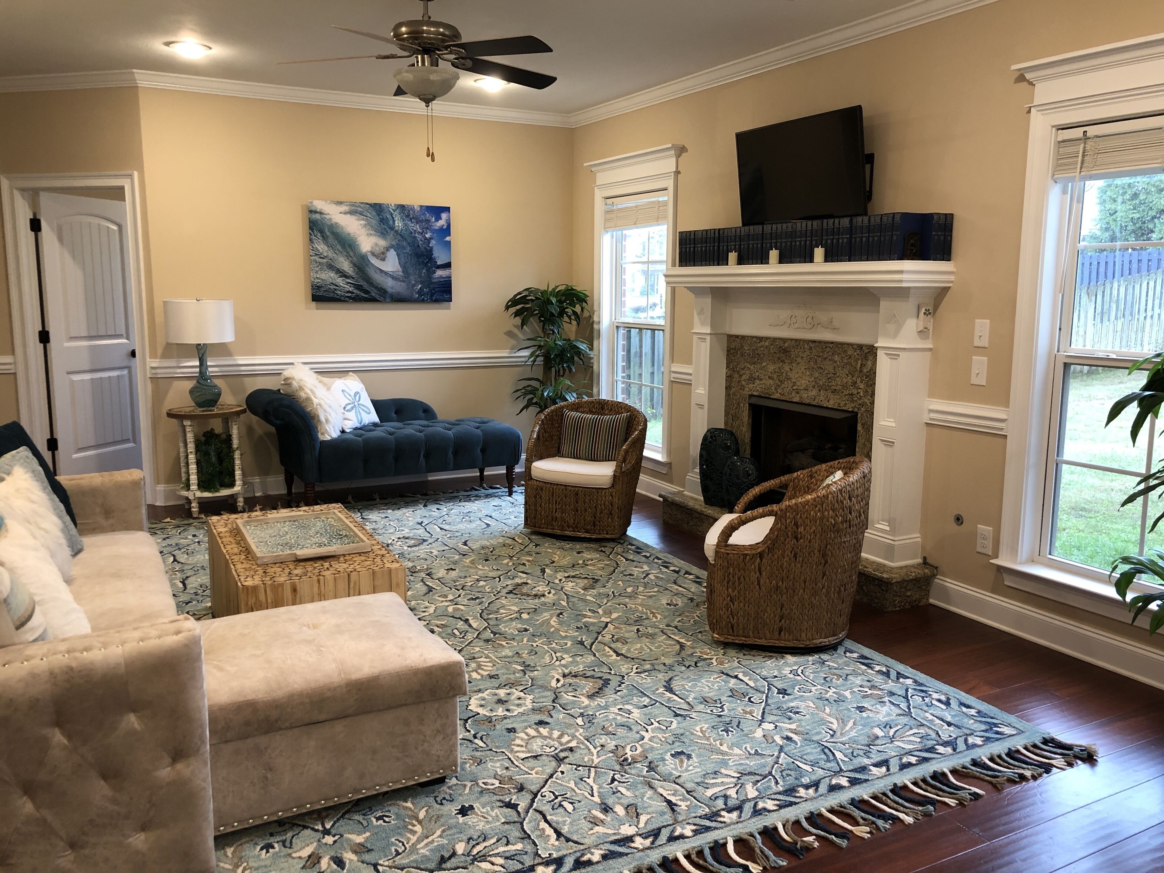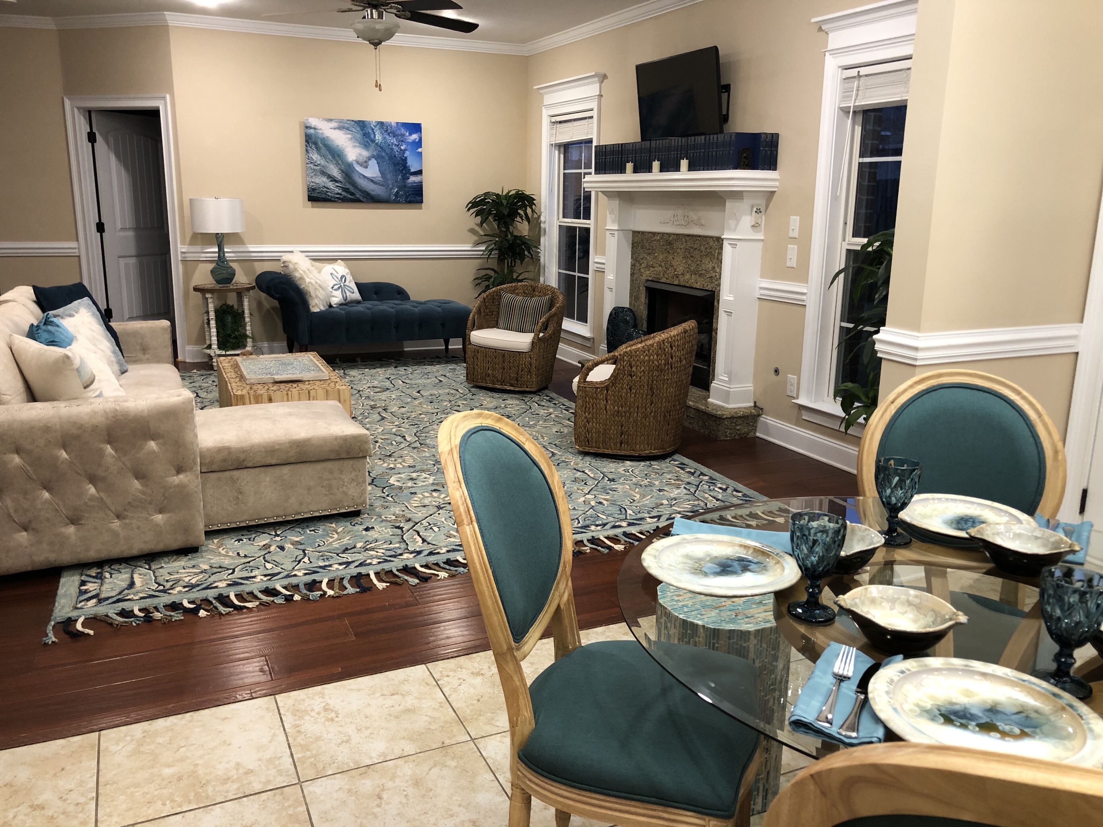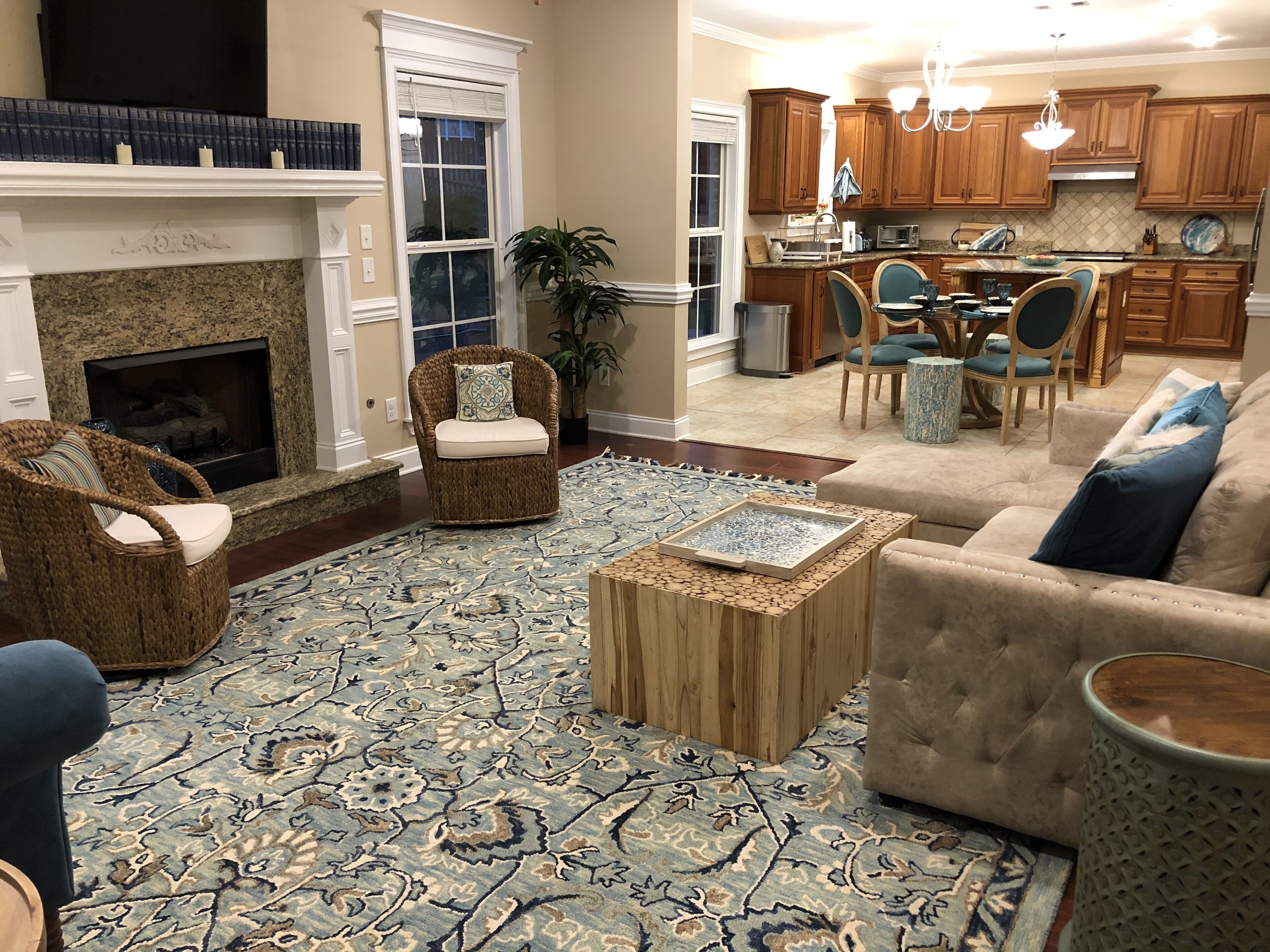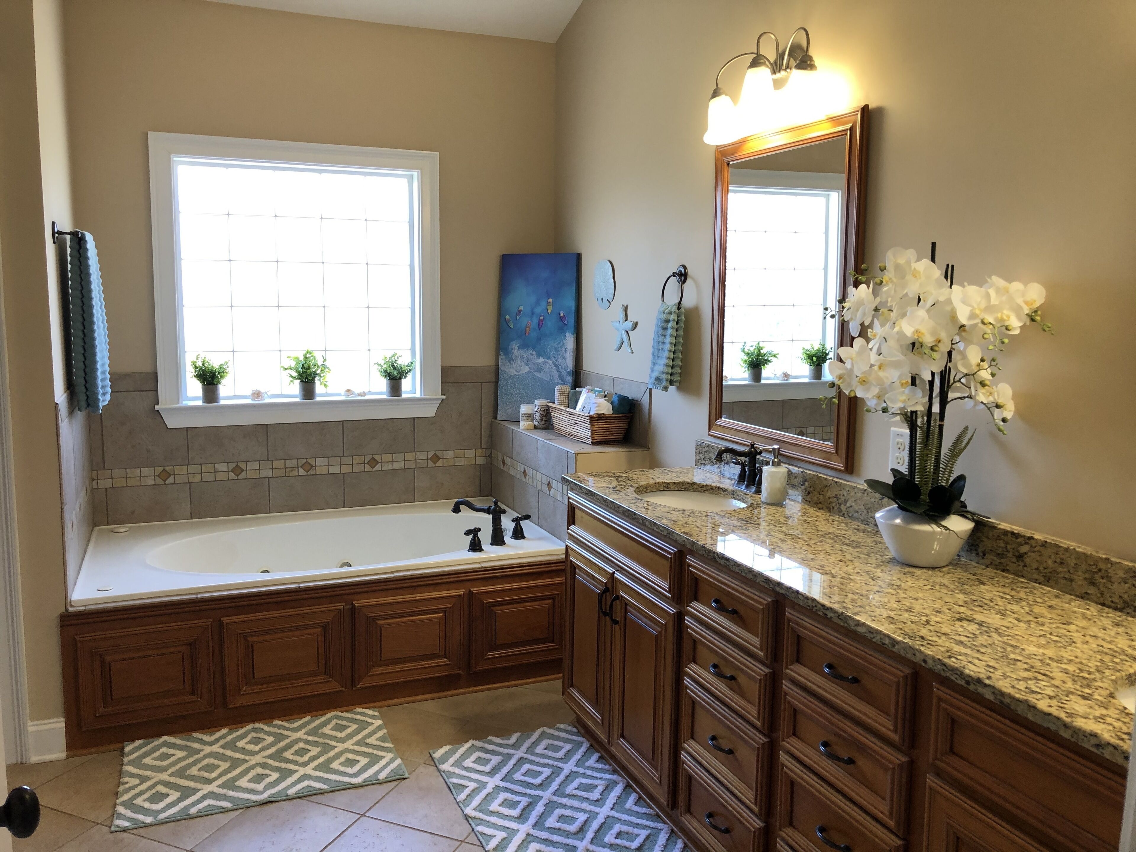 2025 Masters Rental 5 Bd/3 Ba + Heated, Saltwater Pool + Fire Pit + Bocce Ct! Enjoy a relaxing, coastal vibe while visiting Augusta, GA for the Masters Tournament 2025! This house in Evans (13 miles from the Augusta National) has 5 cozy bedrooms (sleeps up to 12) + 3 full bathrooms + a heated, saltwater pool (40' x 16') with a natural rock waterfall! The pool is kept at a very comfortable 85 F and great for swimming laps or just playing around (we have lots of towels, robes and goggles) and you'll love the sound of cascading water. We are in the process of completely transforming the backyard, so more pictures will be added as we complete areas like the fire pit, but you can see, in the picture from the sunroom, the large flagstone patio and the pool, and we've also included a current photo of the bocce court. More to come soon like patio furniture :) The only caveat is that we have just built an addition onto the house and we may stay there during your stay. - 4 Bedrooms (upstairs) for up to 9 guests:The master bedroom at the top of the stairs is its own suite with an electric fireplace, an exercise nook with a pool view from the treadmill, plus its own large bathroom with a jacuzzi tub (for 1-2 guests). The tropical bedroom features a split king bed that can be converted to 2 twin XLs if needed (one medium mattress and one firm mattress; for 1-2 guests); this has a pool view.The boat bedroom down the hall is great for a single traveler who can enjoy a full-sized bed all to themselves or a few kids who will have to decide who gets the top bunk (for 1-3 guests)! No pool view.Across the hall, the beach bedroom is for those who'd like a queen bed, desk and a heated, massage chair while they watch TV (for 1-2 guests). No pool view.- Downstairs sleeping options (for up to 3 guests):1 bedroom downstairs with a twin bed and pool view (1 guest).We also have a cot and a couch that can convert into a bed for 2 extra guests. - Bathrooms:There are 3 full-sized bathrooms, two upstairs and one downstairs. There is also a washer and dryer upstairs if needed with laundry detergent, stain remover and dryer sheets. This room actually has a pool view! Common Areas Downstairs + Extra Amenities:Guests can enjoy their morning coffee or tea prepared in the coffee nook (there is a large drip coffee maker, electric kettle, Mr. Coffee iced coffee maker, Keurig + pods and a Nespresso + pods) in the bright front sitting room that faces east or look out onto the pool from the sunroom. We also have a large dining room that seats 8 comfortably. The glass table in the kitchen can fit another 4 people. You'll feel like you're in your own kitchen with plenty of room to prepare any sized meal with a double oven, glass stove top, Breville combination microwave (it's an oven and air fryer too!) and one of the quietest dishwashers ever so you won't be disturbed while just hanging out, watching TV in the living room or playing games (of which we have plenty including Catan, Cribbage, Mexican Train Dominoes, Quacks of Quedlinburg, Battleship and more + lots of puzzles and books). Then, after you get home from the Tournament, we provide Fubo TV so you won't miss any of the Masters coverage or you can relax and enjoy the sunset from the living room while sitting around the gas fireplace or outside around the pool after grilling on the large charcoal grill. For hanging out at night, you can sit around the fire pit set above the pool and play a game of bocce on our well-lit court.We also provide firewood, charcoal, lighter fluid, breakfast foods and juices, coffees, teas, laundry supplies, luggage racks, bed linens, towels and toiletries to make your stay as easy and comfortable as possible. We hope you'll feel right at home! Important Notes: If clean is important to you, you'll appreciate this house. We keep it clean, and ask the same of our guests. You wouldn't know by visiting, but 2 cats live here; so please consider that if any of your party deals with allergies. Once booked, we will reach out to set up a time on your arrival day to meet you to show you around and welcome you to our house. We are very flexible with check in and out times.