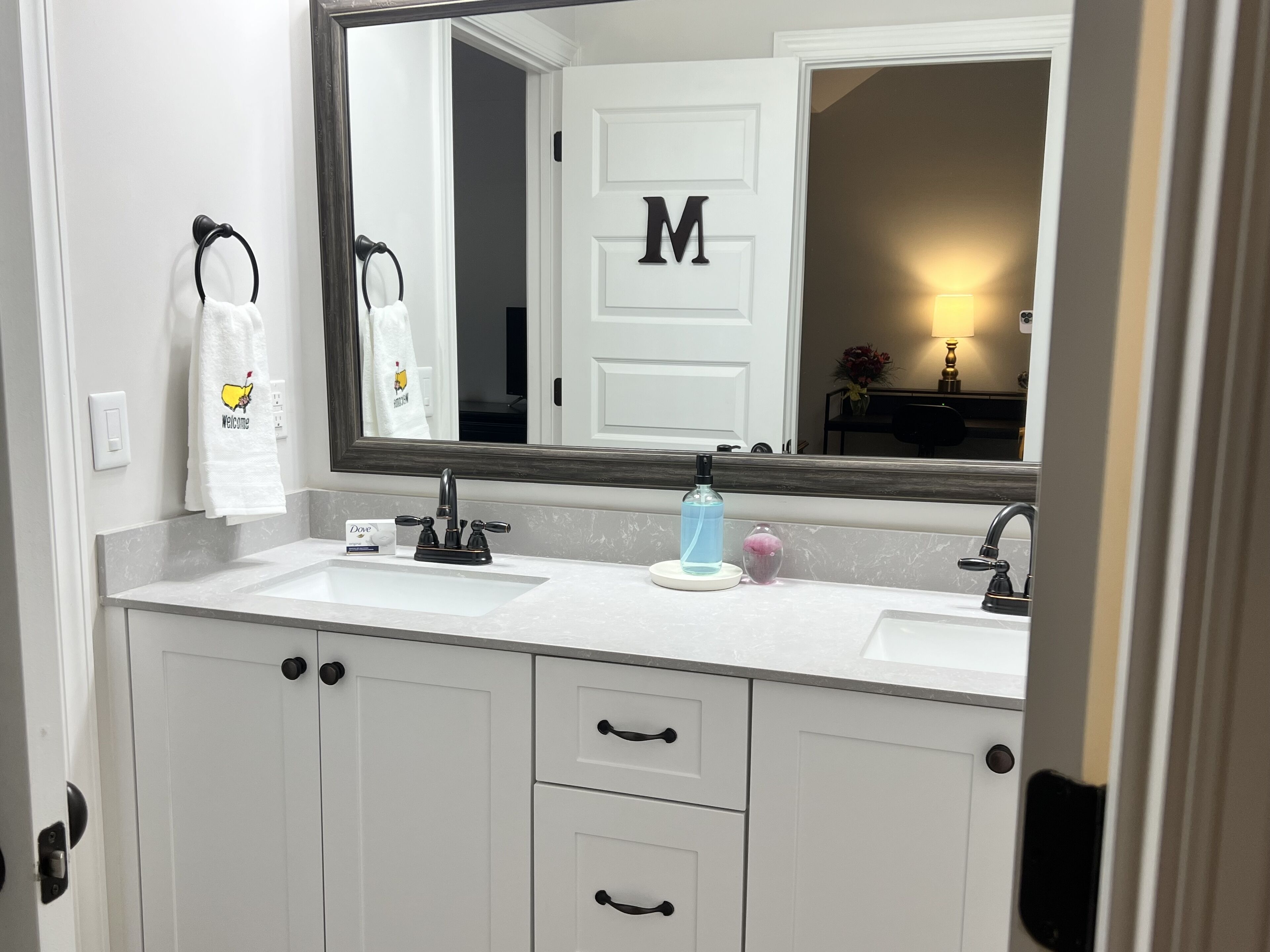 Home Away from Home Welcome to your home away from home. Our home is known as our Augusta Oasis. Our lot is unlike any other in the neighborhood, tucked back off the road, gives you the private feeling. Our home has 6 bedrooms with 4 full bathrooms. Also, you will receive daily cleaning. Downstairs there is 1 bedroom with full bath, will add additional room with twin bed if needed. Upstairs is the Master suite + 4 bedrooms with jack + jill bathrooms. Outdoors comfort we have a sofa, fire pit, and television on the back porch for a relaxing evening with views of the beautiful Augusta sunsets. We are just a golf cart ride away to the Women's Amateur Tournament. Within our community, we have a delicious locally owned restaurant + coffee shop including other restaurants and stores. There is also a grocery store for your convenience. All just a golf cart ride or walk away. Our home is filled with La-Z-Boy furniture, so wherever you sit you will Live Life Comfortably.