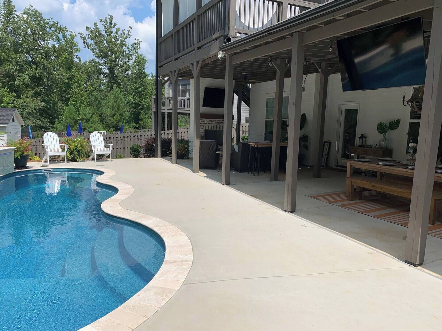 Master's/Women's Amateur Rental With Pool - Entertainer's Paradise with Pool! 3 story home with open floor plan in Riverwood Plantation, located just outside of Champions Retreat Golf Club and only a short drive to Augusta National. Open concept kitchen opens to the living room and access to backyard living space with outdoor deck. Upstairs is master bedroom/bathroom, 1 bedroom with bathroom and 1 bedroom with shared bathroom. Basement includes a kitchenette, 2 bedrooms, full bathroom and living room. Pool with lots of privacy and a large covered patio with lighting.