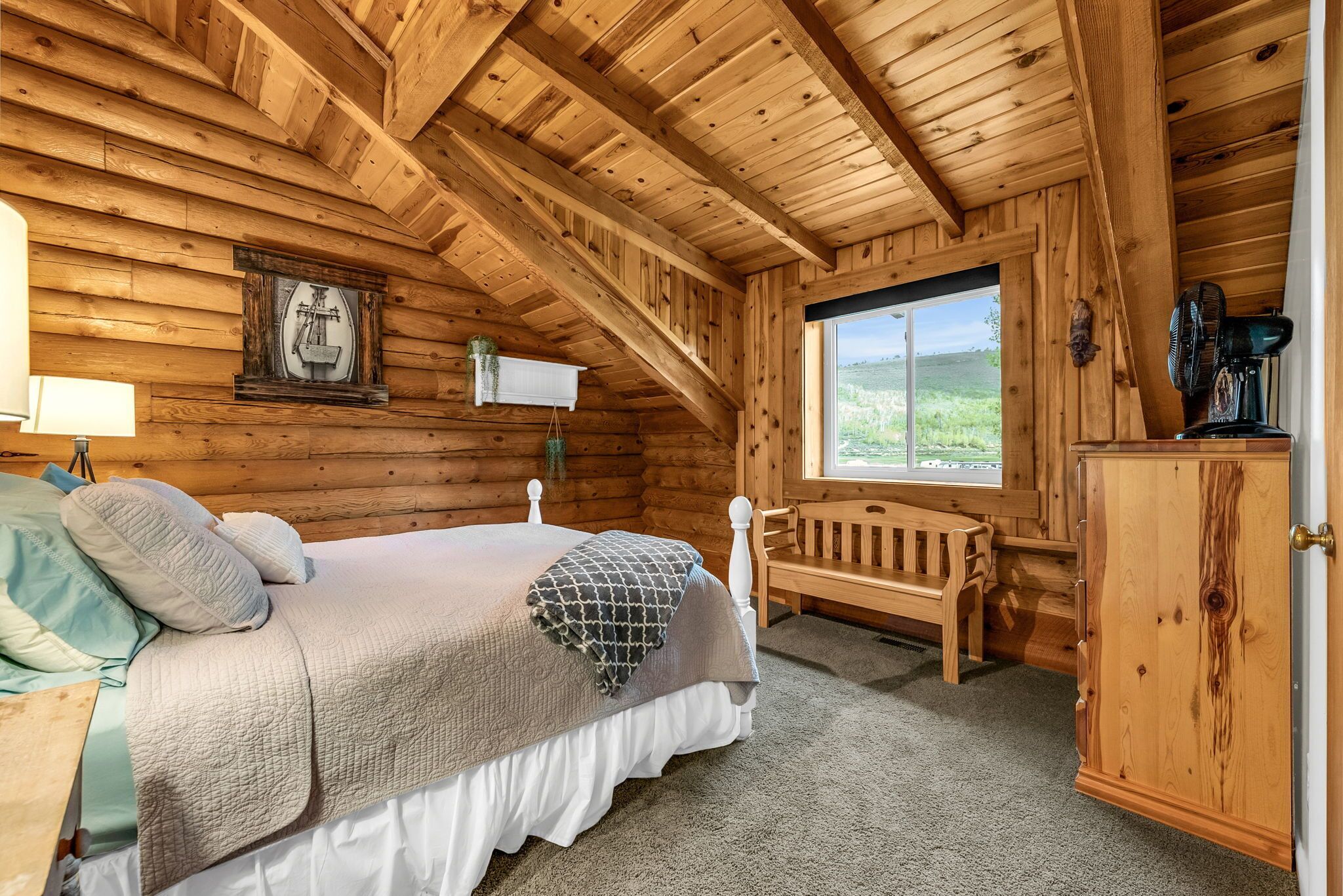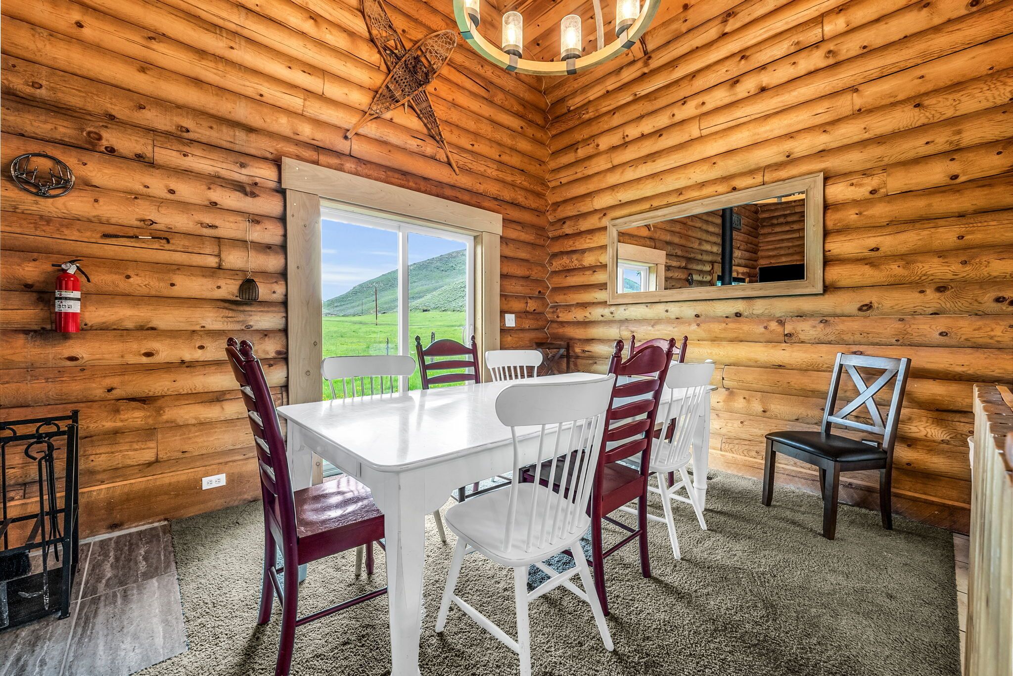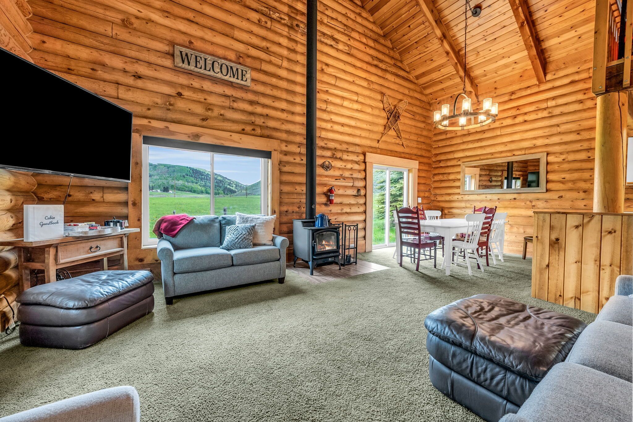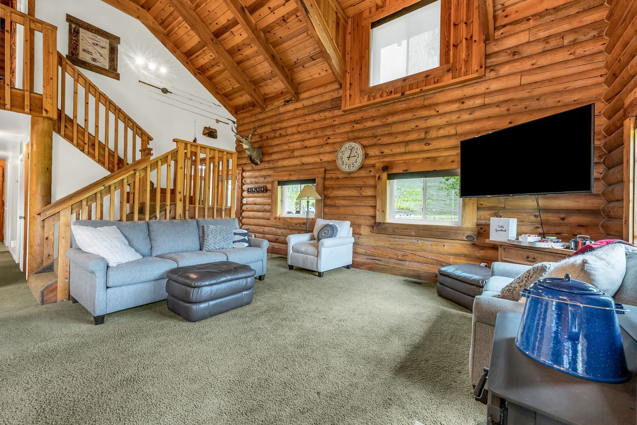 Spacious Beautiful Log Cabin Accessible Year Round Enjoy time together with friends and family in this beautiful log cabin in Scofield, Utah. You are minutes from Blue Ribbon fishing at Scofield Reservoir where you can also water ski, jet ski, wakeboard, paddleboard, canoe, kayak. This area also has great ATV and snowmobile trails and quick access to national forest properties. This cabin sits on 3/4 of an acre of green space where you can sit around the campfire, play outdoor games, and much more. Access to the cabin is available year-round. There are two private bedrooms and one spacious room that sleeps up to 10 people. The main level has an open floor plan that invites group gatherings and is a great place to bring the group together to watch movies or play games.