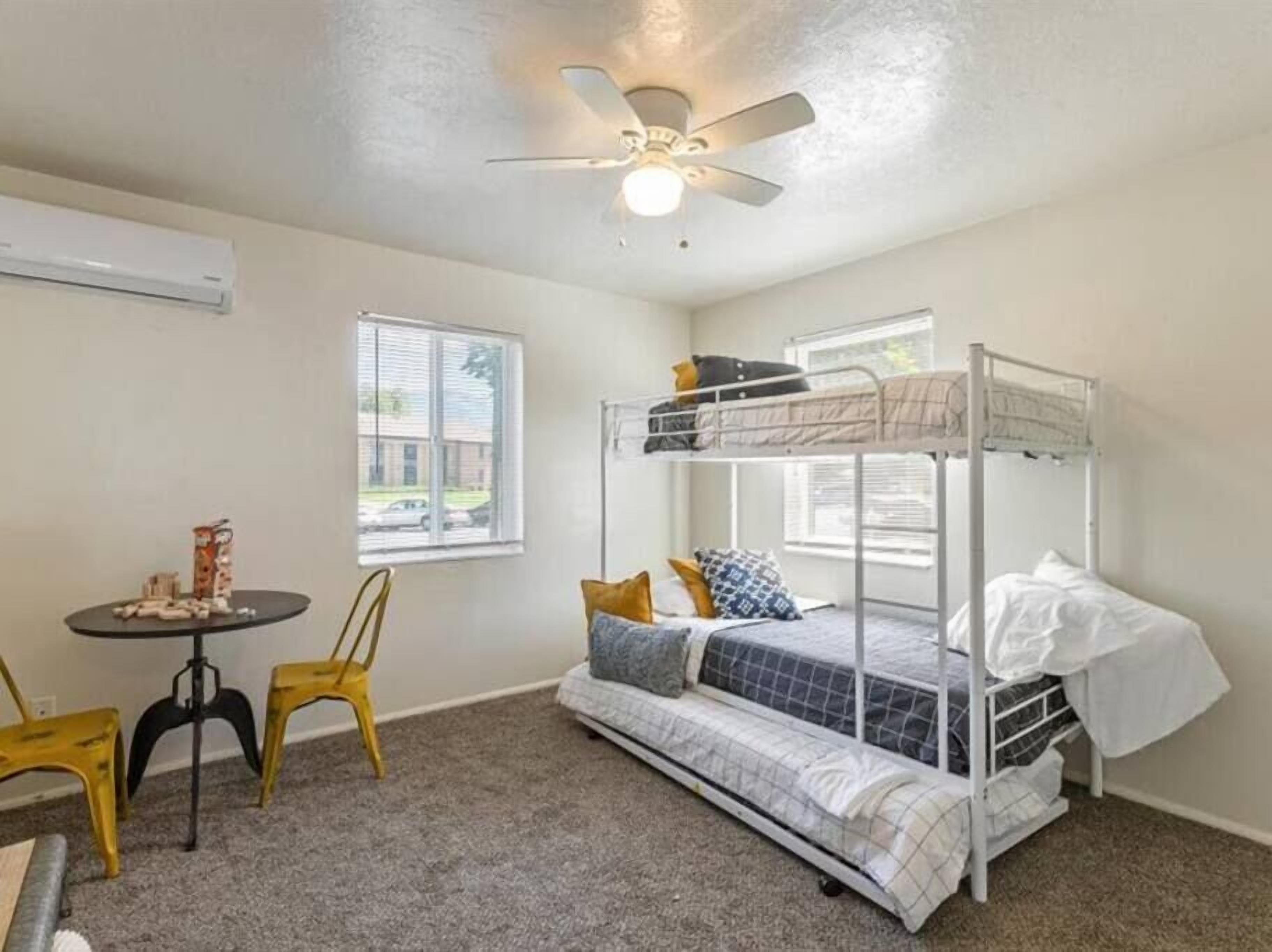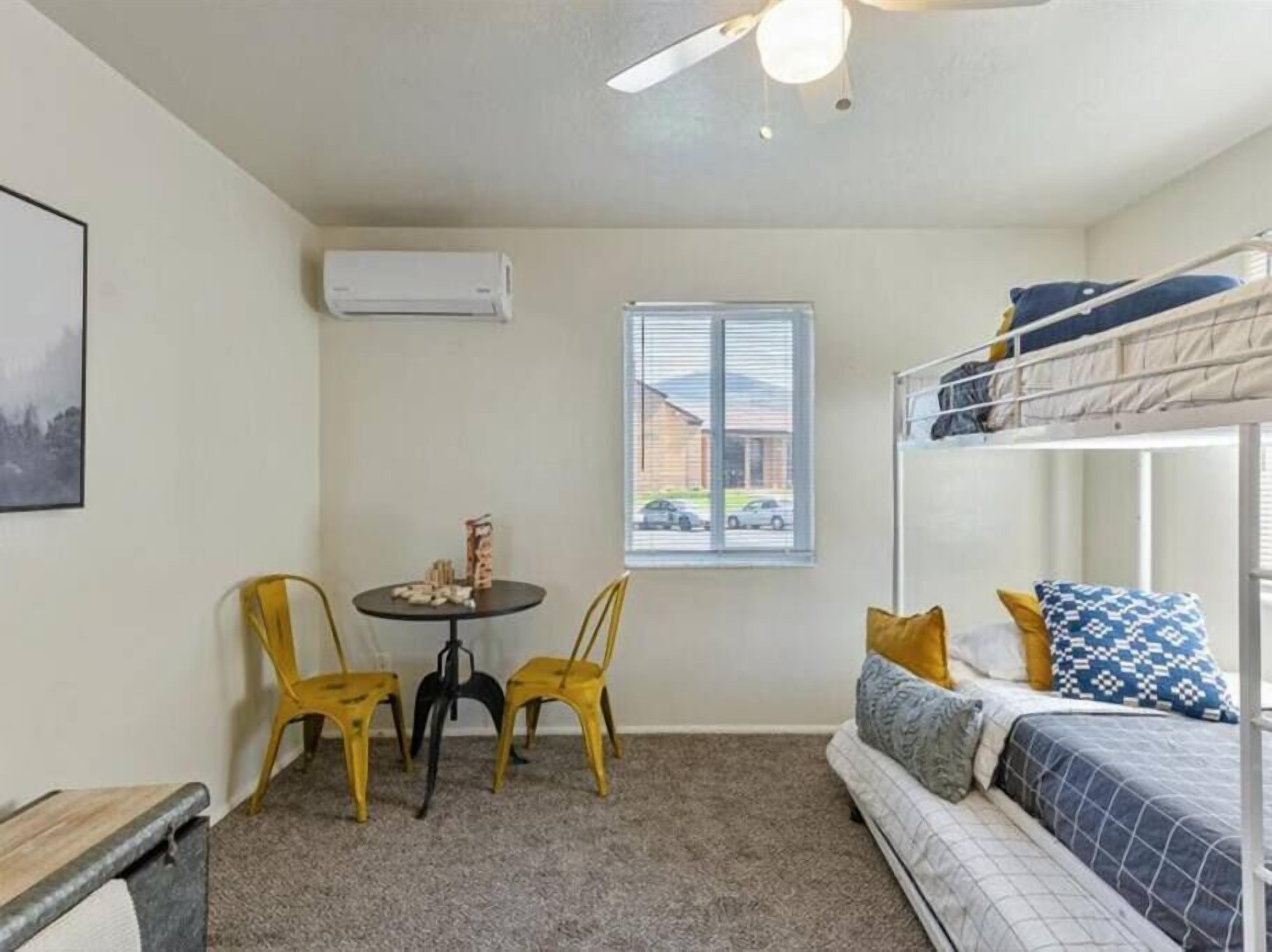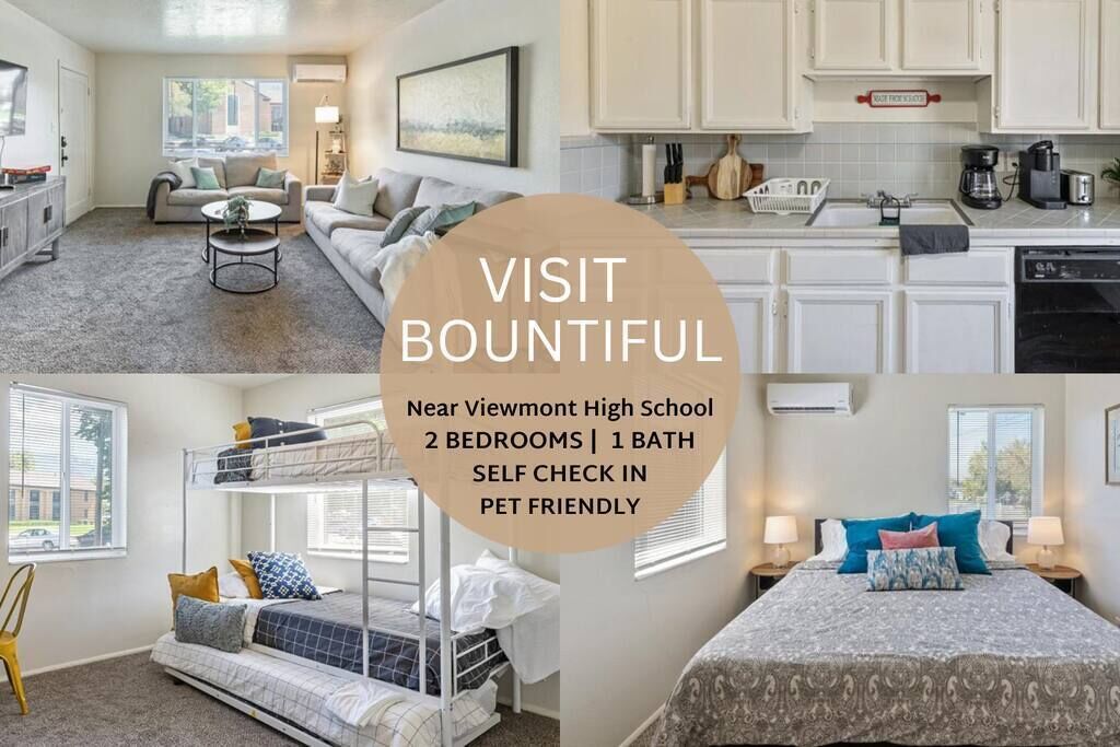 Pickle ball court closeby, Peaceful Neighborhood! Summary:Unlike any other hosts, we covered your service fee to lessen your payment! Book now and experience the heartwarming charm of our home!Welcome to our home away from your home! The spacious living room is perfect for relaxing after a long day of exploring the city. With plenty of natural light and comfortable seating, you'll feel right at home. Our amenities checklist ensures that you have everything you need for a comfortable stay!The Space:Rooms & Spaces Layout:Main Floor:Living Room - spacious sofa and TV w/ HD RokuKitchen - All major appliances (NO MICROWAVE)Dining Room- Table for 4Bedroom with a queen bedBedroom with bunk beds and a pullout + a working spaceLaundry Room- located outside of the unit in a community laundry areaOne full bathroom with tubGuest Access:**Tourist Spots:**- Bountiful Ridge Golf Course - 1.5 miles- Mueller Park Trailhead - 3.5 miles- Bountiful Temple - 4 miles- Utah State Capitol - 10 miles- Temple Square - 10 miles**Supermarkets:**- Smith's Marketplace - 1.5 miles- Walmart Supercenter - 2 miles- Costco Wholesale - 2.5 miles- Harmons Bountiful - 3 miles- Trader Joe's - 10 miles**Restaurants:**- Mandarin - 1 mile- Red Lotus Bistro - 1 mile- Copper Creek Pub and Grub - 1.5 miles- Maddox Ranch House - 2 miles- The Mandarin - 2 milesInteraction with Guests:Our management team will always be happy to help with all your questions and concerns throughout your stay!