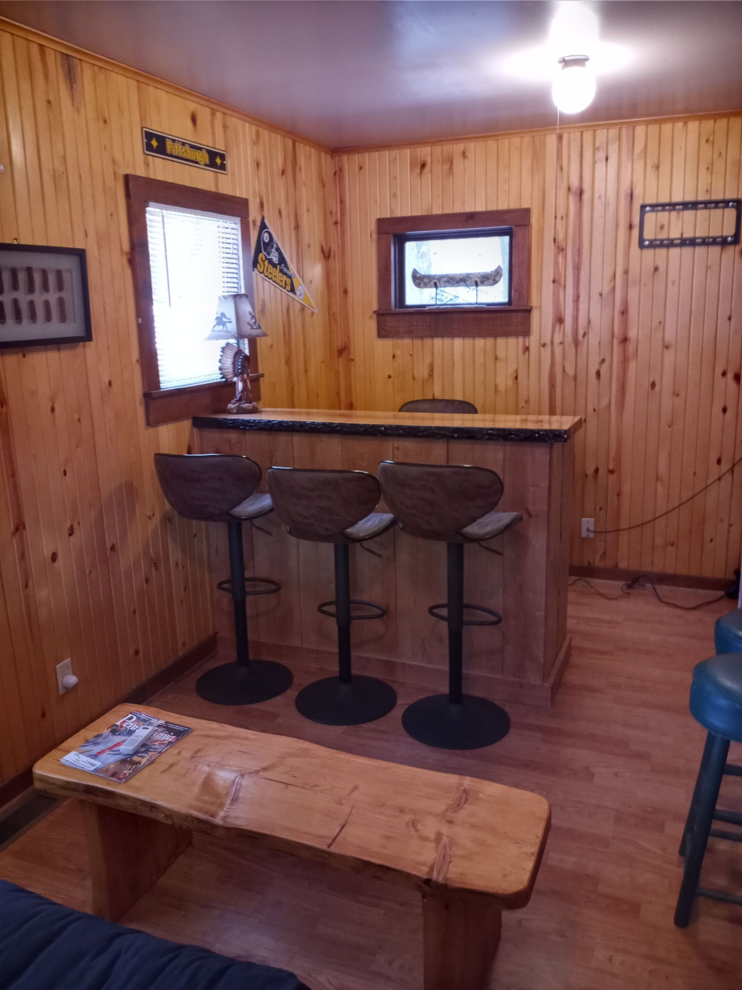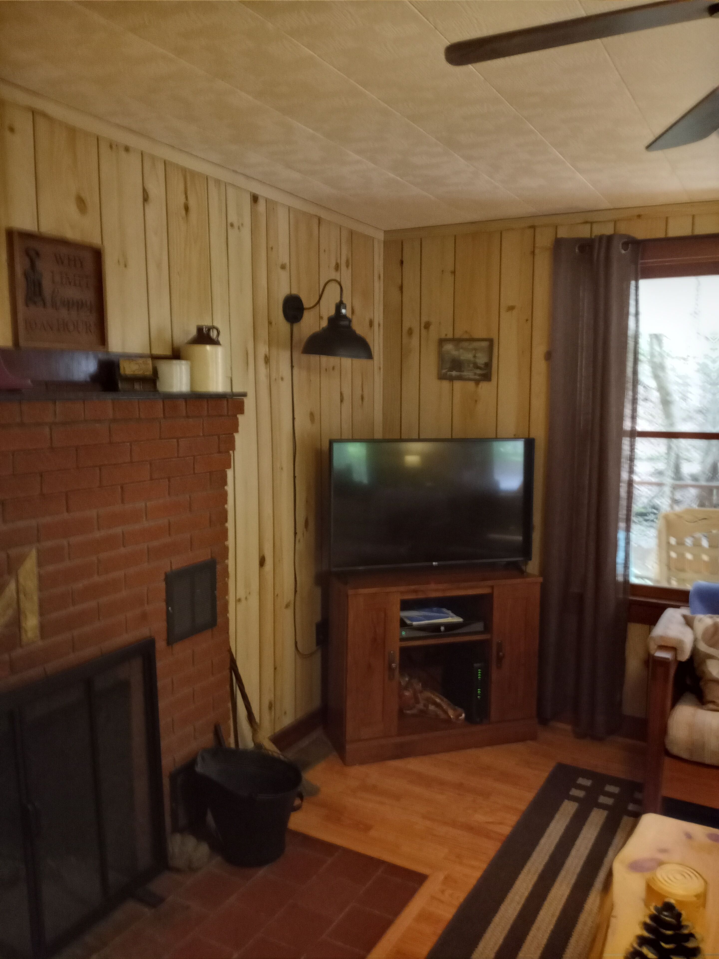 Montgomery Run cabin located in a secluded wooded area close to Clearfield, PA This is a two story cabin nestled in a private wooded area next to a stream. The upstairs has two private bedrooms with full size beds and a newly remodeled bathroom. Renters must provide their own bed linens, blankets, pillows, towels and bathroom products. The cabin can sleep additional two people by using the futon in a downstairs entertainment room. The kitchen is equipped with an electric stove, microwave, refrigerator, toaster oven and coffee pot. The pots and pans, plates, silverware and utensils are available for use. Also included is basic soaps, toilet paper, paper towels and cleaning products. Property has city water and garbage collection is on site. Wifi is available and there is cable TV for the main living room and both bedrooms. Cell phone service can be accessed, and a land line is available for local calls only.A private lane leads to plenty of parking next to the cabin with lots of outdoor lighting. This is a great location for a quiet getaway, birthday parties, or local family reunions. Separate pricing for events based on number of people attending, call for details. A covered porch with swing and chairs faces the stream for a relaxing afternoon. A fire pit is located next to the stream and beside a covered pavilion. For the adventurer, Parker Dam, Elliott Park, Bilger Rocks, and Curwensville Dam are close by. Clearfield area provides places to eat such as Denny's Beer Barrel Pub, Moena's Restaurant, St Charles Restaurant and the Toasted Monkey. For other points of interest and entertainment there is Grice’s Gun Shop, the Ritz theater and local wineries. Enjoy the 12 miles of rails to trails for biking and hiking between Clearfield and Grampian. Enjoy fishing, rafting and kayaking on the West Branch of the Susquehanna River, which flows through Clearfield, and was named one of 2012 best destinations by National Geographic Magazine. The town of Benezette, where the Elk roam free, is approximately one hour away. There is a minimum of 2 night stay.