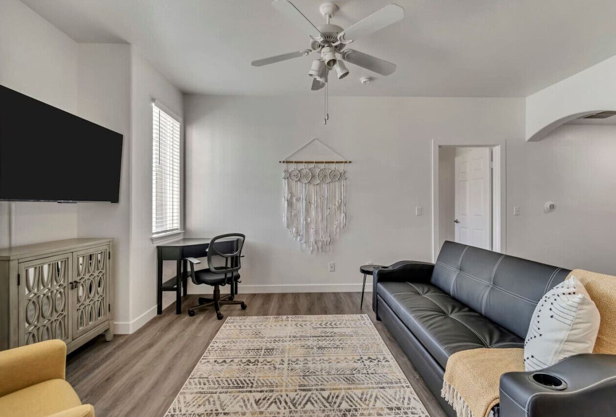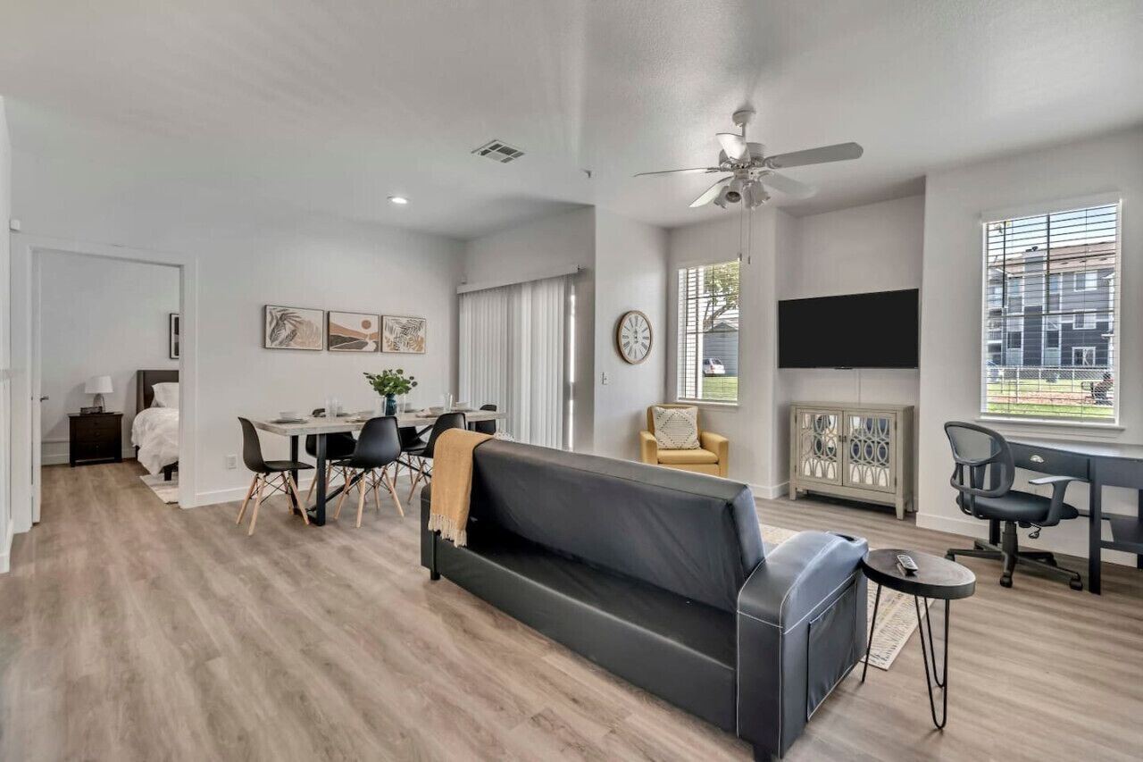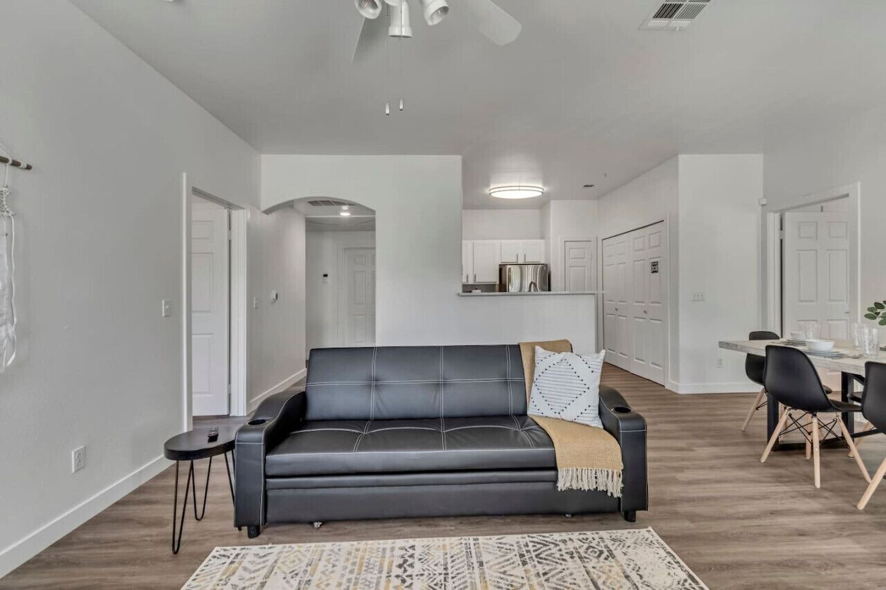 Ground Floor - Attached Garage - King Bed Enjoy a beautiful welcoming private apartment close to Hill Air Force Base, the Davis Conference Center, Lagoon, Ogden and moreSummary❖ No "chores" before check-out.❖ 3 min drive to Hill Air Force Base❖ 5 min drive to Davis Conference Center❖ 14 min drive to Lagoon or Station Park❖ 800 Mbps WiFi❖ Dedicated covered parking for 1 vehicle❖ Equipped kitchen for cooking meals❖ Hulu with HBO and Hulu Live TV Provided❖ In Unit Laundry❖ Pool, Hot Tub, Gym, Tanning Bed, Playground and PickleballThe Space❖ 55" 4K Ultra HD TV in Living Room with Roku apps❖ 43" 4K Ultra HD TV in Each Bedroom with Roku apps❖ Hulu with HBO and Hulu Live TV available on all TVs❖ Nest Thermostat❖ Fully equipped kitchen for cooking meals❖ King bed in each bedroom❖ Twin XL Foldout Bed for Living Room❖ 800 Mbps Internet with WiFi 6 (AX 1800)❖ In unit washer and dryer❖ Video doorbell camera and security system for added safety and security of our guests and the property❖ Quartz Counterops❖ Recently Remodeled~~Great for Business~~❖ 800 Mbps Internet with WiFi 6 (AX 1800)❖ Iron + Ironing Board❖ Close sales over a game of Pickleball❖ Use the tanning bed to look your best on your zoom calls~~Great for Families~~❖ Fully equipped kitchen for cooking meals❖ Kids Plates, Cups and Bowls❖ Kids playground off the back patio❖ Board Games and Card Games❖ Hulu with Kids Account❖ Stroller (and a decent one, not just the cheapest stroller one can find)❖ Clean Highchair❖ Pack n Play with Infant Basinet Attachment❖ Humidifier❖ Hot Chocolate K-Cups for the Keurig~~Extra On Property Amenities~~❖ Kids playground off the back patio❖ Pickleball Court❖ Tanning Bed❖ Pool❖ Hut Tub❖ Fully Equipped Gym❖ Pool Table❖ Dart Board❖We do not require any cumbersome chores before check-out. That's what the cleaning fee is for. We do ask as a favor if you can get the dishes started in the dishwasher since the silly machines take so long to run, but even that is not a requirement, just a favor we ask if you have time.Access❖This apartment is on the 1st floor of a 3 story building; climbing stairs is not required to reach it.❖ Equipped for self-check-in and check-out❖ Door code will be sent to guest at the designated check-in timeGuest has full access to the private apartment as well as access to the following amenities:❖ Free parking w/ 1 Dedicated Covered Spot❖ Kids playground❖ Clubhouse w/ game tables❖ Fitness Center❖ Pool Area❖ Pickleball CourtNeighborhoodThis apartment complex has plenty of green space, well cared for amenities and is maintained by a friendly and welcoming management staff. It is close to plenty of restaurants, shopping, family activities and business centers. Some highlights include:❖ 3 min drive to Hill Air Force Base❖ 3 min drive to Davis Hospital❖ 5 min drive to local mall and other shopping❖ 5 min drive to Davis Conference Center❖ 14 min drive to Lagoon or Station ParkParking is free with an attached garage and many free uncovered parking spaces. The easiest way to get around is via car, or bike. All nearby restaurants, stores and entertainment have plenty of free, easily accessible parking.❖Pool and pickleball court close approximately between Labor Day and Memorial Day each year.❖This unit is on the 1st floor of a 3 story building, you do not need to climb stairs to reach the unit.❖For same-day reservations made after the check-in time, the earliest we can guarantee access to the home is 1 hour after the reservation is made.**Important:** We are committed to protecting our properties and keeping up-to-date with short-term rental regulations, which is why you will be asked to complete our independent verification.House RulesThe Guest agrees to abide by the following house rules and understand that any violation of the following rule may result in extra fees and/or cancellation of the booking without refund. Violation of any of these rules may result in an admin fee of $50 added to any other lost item, damage, extra cleaning or incidental fees associated with the violation per violation incident.Tobacco, Alcohol and Drug Usage1. No Smoking, Vaping, or use of marijuana at any time anywhere on the property.2. No illegal substances of any kind anywhere on the premises.3. Smoking of any kind in or near the property will result in a minimum of $250 cleaning fee and eviction from the property without refund.Being a Good Neighbor1. No Parties, events, birthdays, bachelor, or bachelorette stays, get-togethers, hangouts, or the like.2. Quiet time in our neighborhood begins at 10pm and ends at 8am. 3. Be respectful of neighbors.4. Do not have more guests than stated on your reservation and no unapproved visitors. There is a $50 per night fee for every guest not listed on the reservation.5. No loud music or disturbances. Especially after quiet hours which start at 10:00 PM6. Do not use shared amenities outside of their posted allowed time frames.7. Do not park in any assigned parking spaces that have not been assigned to the guest. Do not park anywhere parking is not allowed. The owner is not respondible for damage, or costs incurred due to improper parking.Check-In and Check-Out1. The check-in form with attached photo government ID an photo of responsible party must be filled out before arrival. The Guest will not be sent the door code at the designated check-in time unless this form is filled out properly. Incomplete check-in forms may result in cancellation of the reservation. Reservations cancelled less than 5 days before check-in due to an incomplete check-in form are not subject to refund.2. Early check-ins can never be guaranteed prior to the day of check-in at 11:00 AM. Confirmation of early check-in will be sent in writing via SMS, Email or the booking channel’s messaging platform between 11:00 AM and 4:00 PM on the check-in day. The cost for early check-in is $10 for ever