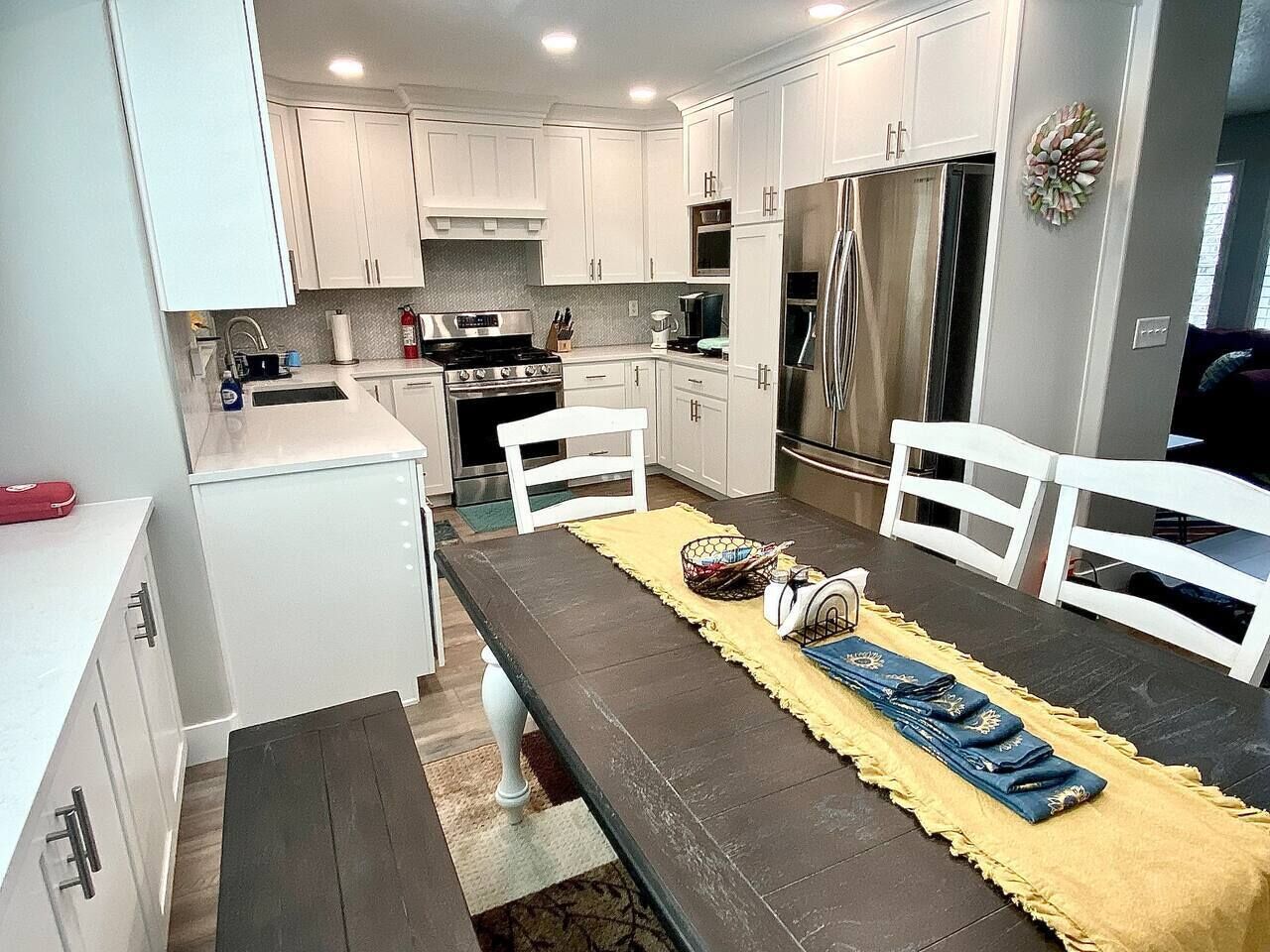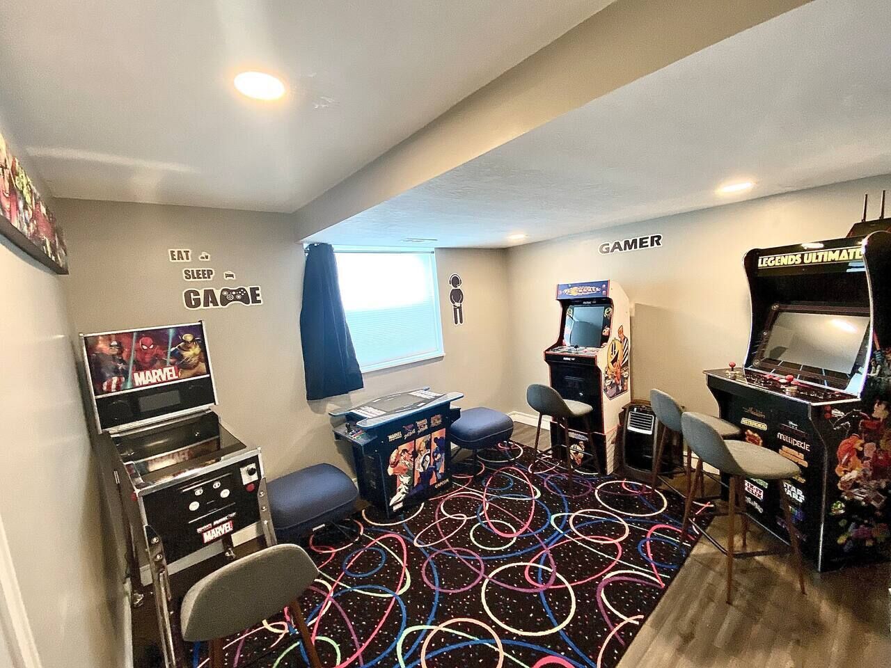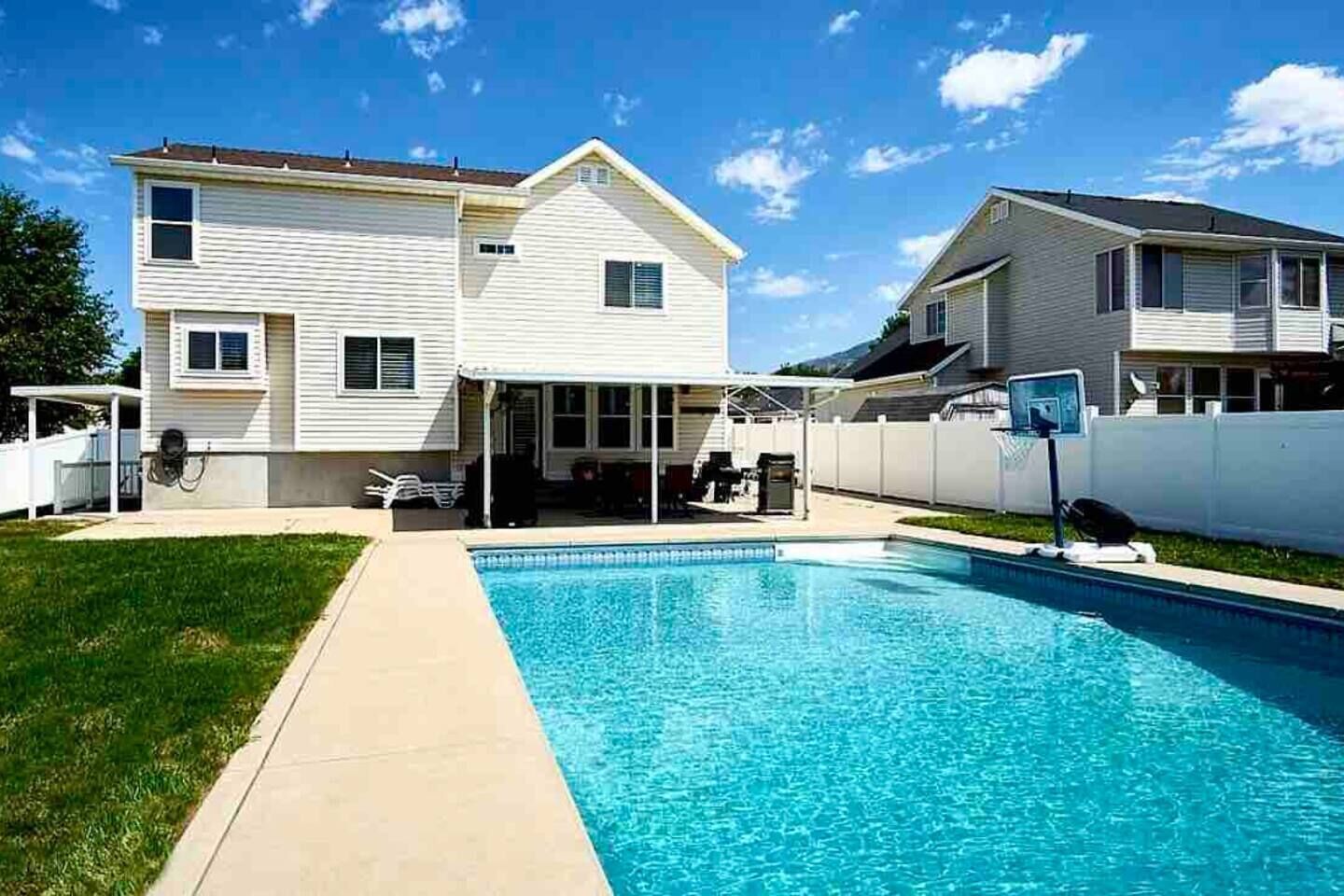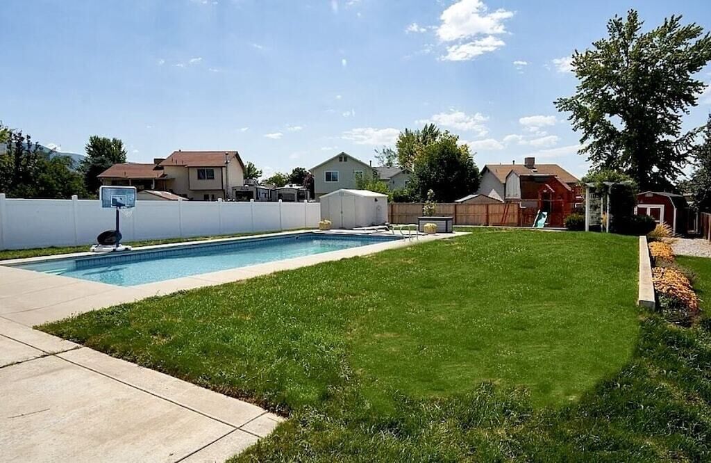 Family Fun: Pool, Arcade, Massage Chair Relax with the whole family at this peaceful place. Enjoy the private pool (open mid-May to mid-September), play some arcade consoles, go skiing and come back to a massage chair, play family board games, or simply enjoy yourself in front of the fireplace!Sleeps 12 people in 9 beds in 5 rooms. The master king room is spacious with massage chair, tv, and private bathroom. 2 queen bedrooms are just down the hall, both with tvs. A bunk room with 4 beds is perfect for the kids; another bunk downstairs.5 roomsRoom 1: 1 King upstairsRoom 2: 1 Queen upstairsRoom 3: 1 Queen upstairsRoom 4: 2 bunk beds (4 beds) upstairsRoom 5: 1 bunk bed (2 beds) downstairsYou'll have access to the whole property except the garage, a closet upstairs, and a closet downstairs.Office hours 9am-9pm; I'll often be available these hours.Someone may need to come shovel, mow, or garden during your stay, depending on circumstances. You'll be notified prior to the visit, either by phone, text, or knock on the door.In-between I-15 and Hwy 89. Fairly close to the air base, but far enough away to not be overwhelming. Close to Layton Hills Mall.Quiet neighborhood.You'll need a car or Uber-type service to access any stores, entertainment, or events outside of the home.