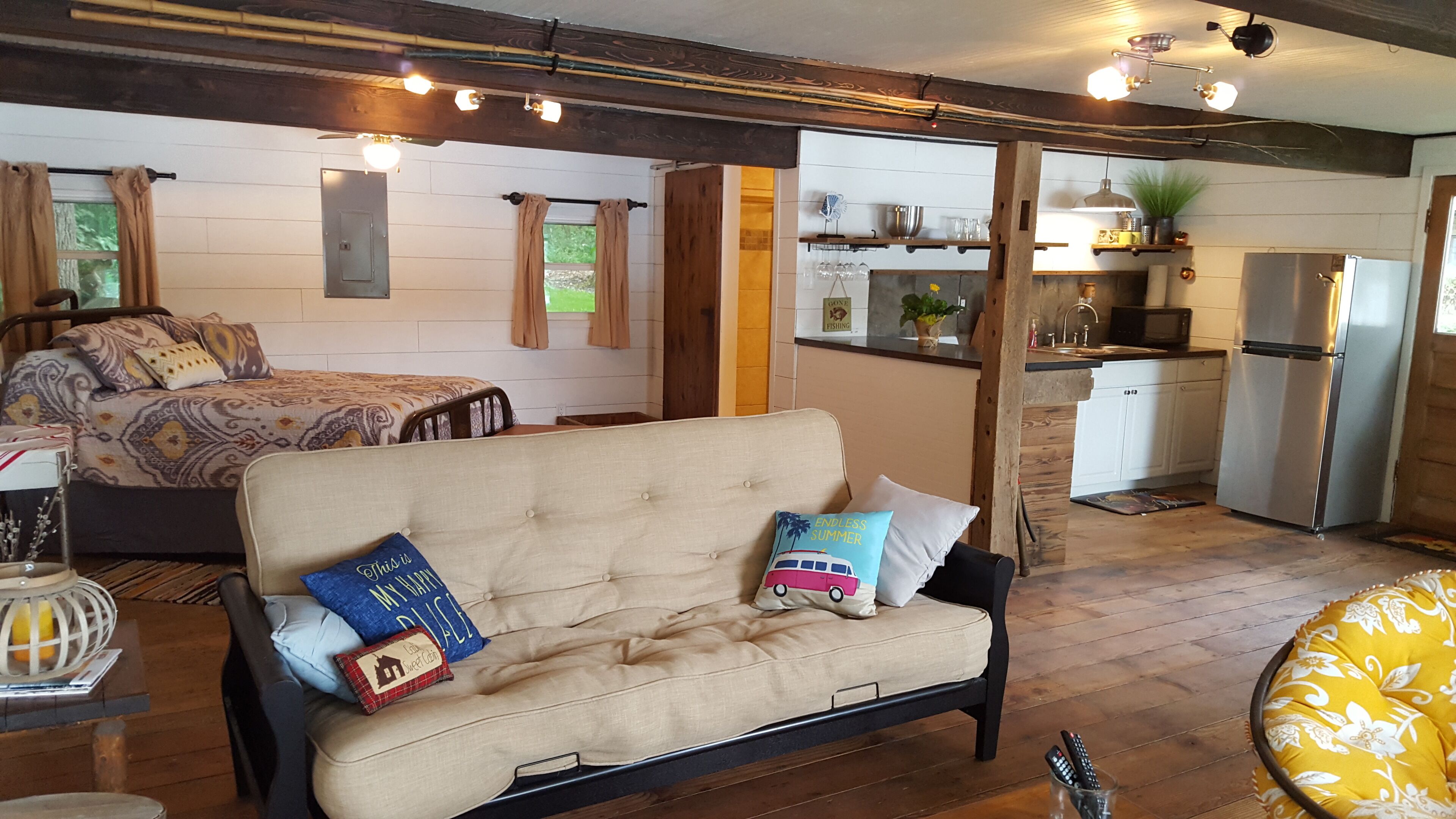 Lake life the way it used to be. Sweet cabin on a private and serene lake. Construction plans have changed and we are able to open up our cabin summer of 2020. We have updated our landscaping to provide a gentle and even slope to those guests who may have difficulty with uneven surfaces. If you enjoy waking up listening to birds and chattering squirrels, sitting in your adirondacks enjoying a morning coffee while watching the sun rise and feeling the morning mist, then this is the place for you. This is a private 179 acre lake which does not allow motors of any kind, strictly canoes, kayaks and rowboats. Peace and Serenity abound. Come for warm summer days and nights, or beautiful fall colors. 3,569 acres of Tri-county fish and wildlife adjoin the property and provide opportunity for bird watching and exploring. Nearby towns offer antiquing and amish crafts. Notre Dame/South Bend is an hour's drive.2 Kayaks available for use, with a 2 seater paddle boat upon request. Gently sloping lake front allows for safe children's swimming. Life jackets provided.Completely restored lakefront cabin with original hardwood floors and open concept floorplan. Adorable kitchenette with slate backsplash and butcher board countertop. Queen size bed. Futon has a very thick and comfortable full size mattress. Refinished sliding barn door closes off the bathroom with tiled, glass enclosure shower. Water/drinking station provided since this is well water. We've put a lot of our own love for this place into restoring this cabin and hope you'll enjoy it as much as we do.Your booking requests will be returned with details about us and our own pets as we live next door. Please watch for your replies!Thank you.