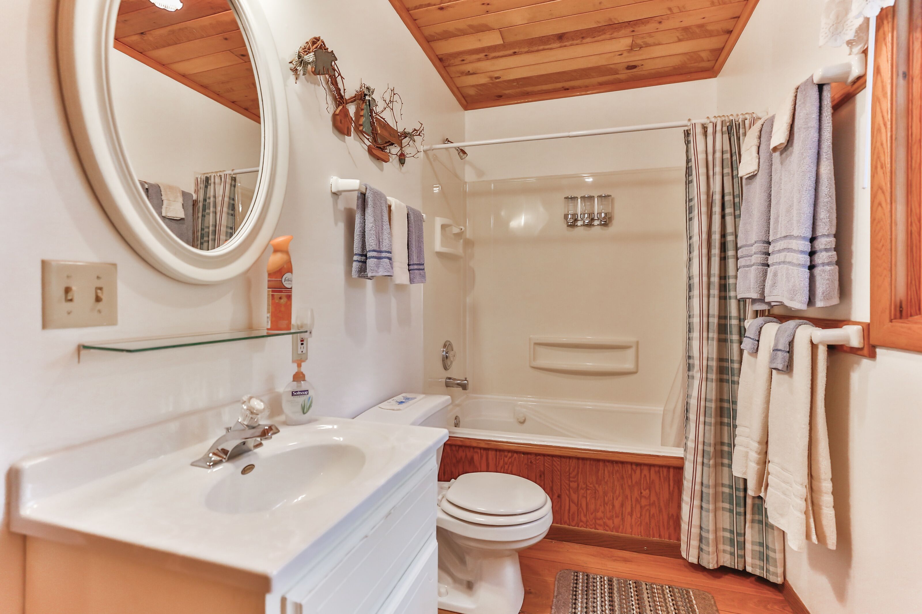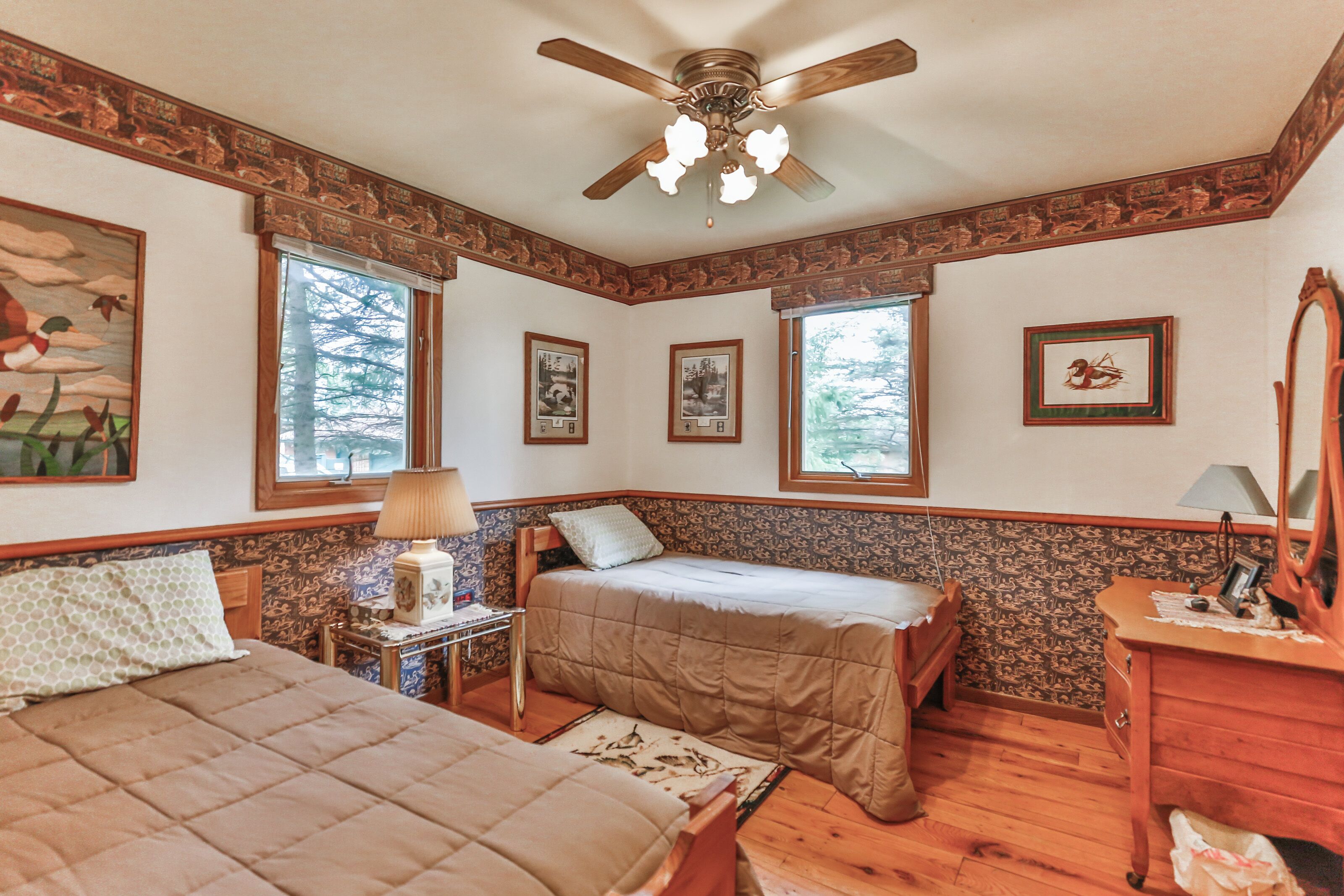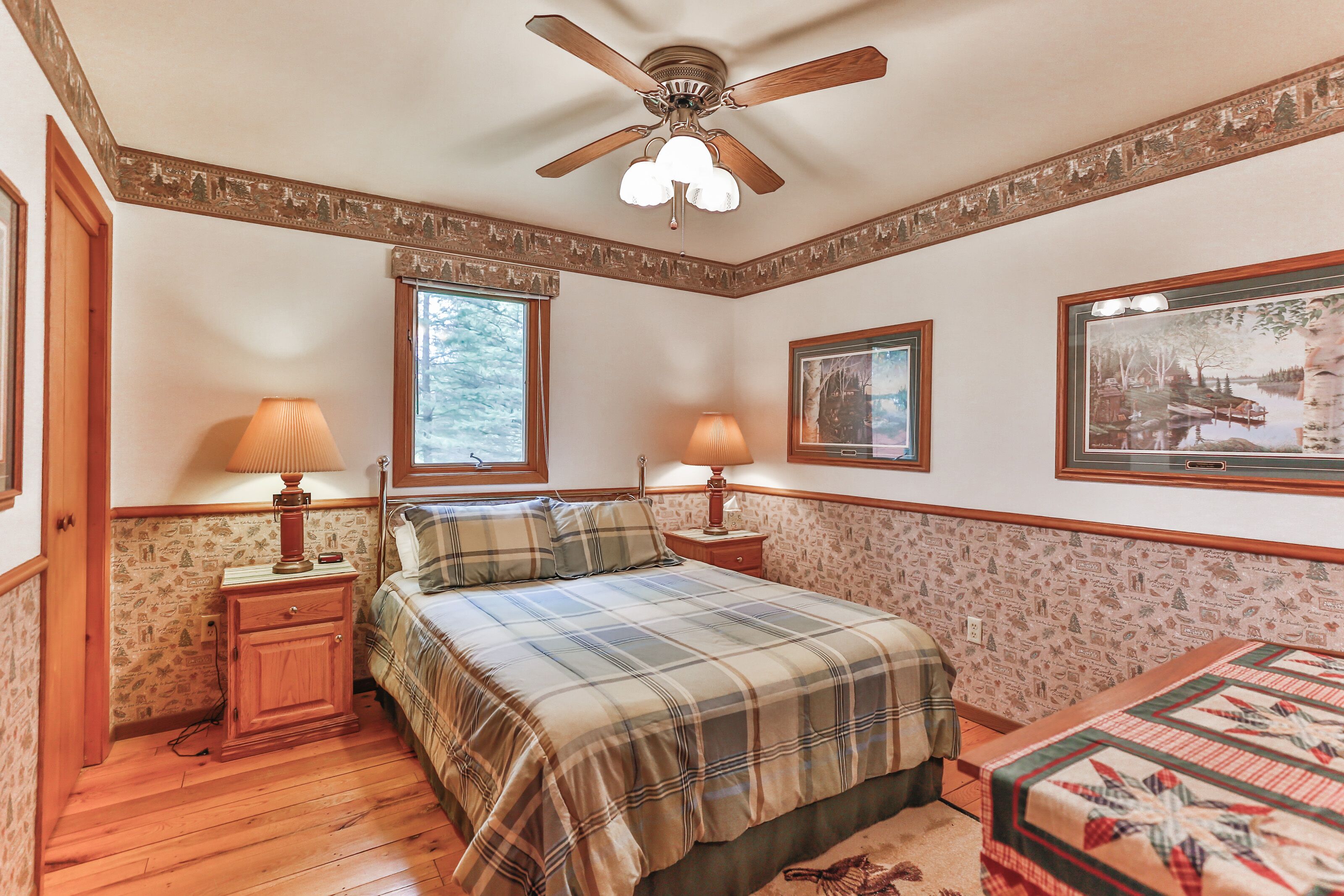 Cozy and comfortable accommodations in picturesque country setting Enjoy the peace and quiet of a private north woods hideaway! Our guesthouse is a fully furnished home away from home with the cozy ambiance of a well-appointed knotty pine cabin. It features two bedrooms, one with a queen bed and the other has two twins. There is a futon in the living room, a single jetted tub, laundry facilities, fully equipped kitchen including coffee and spices, central air, and a three-season porch.