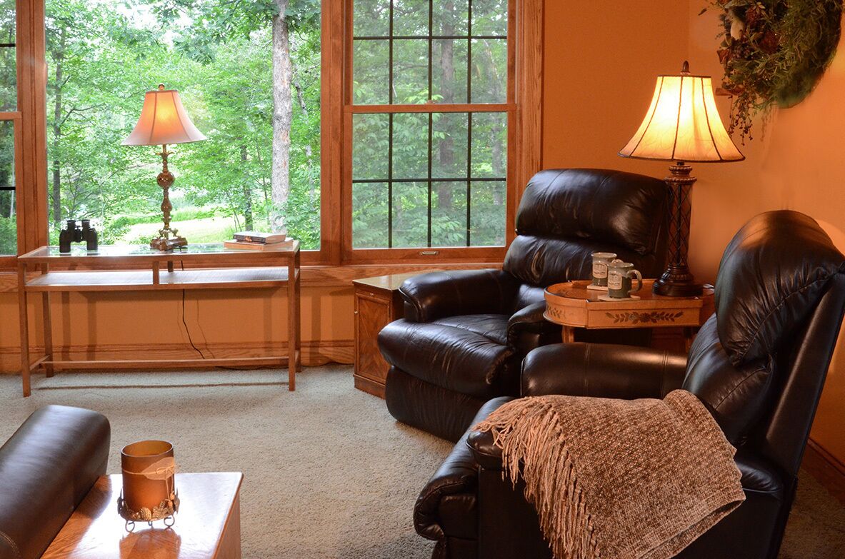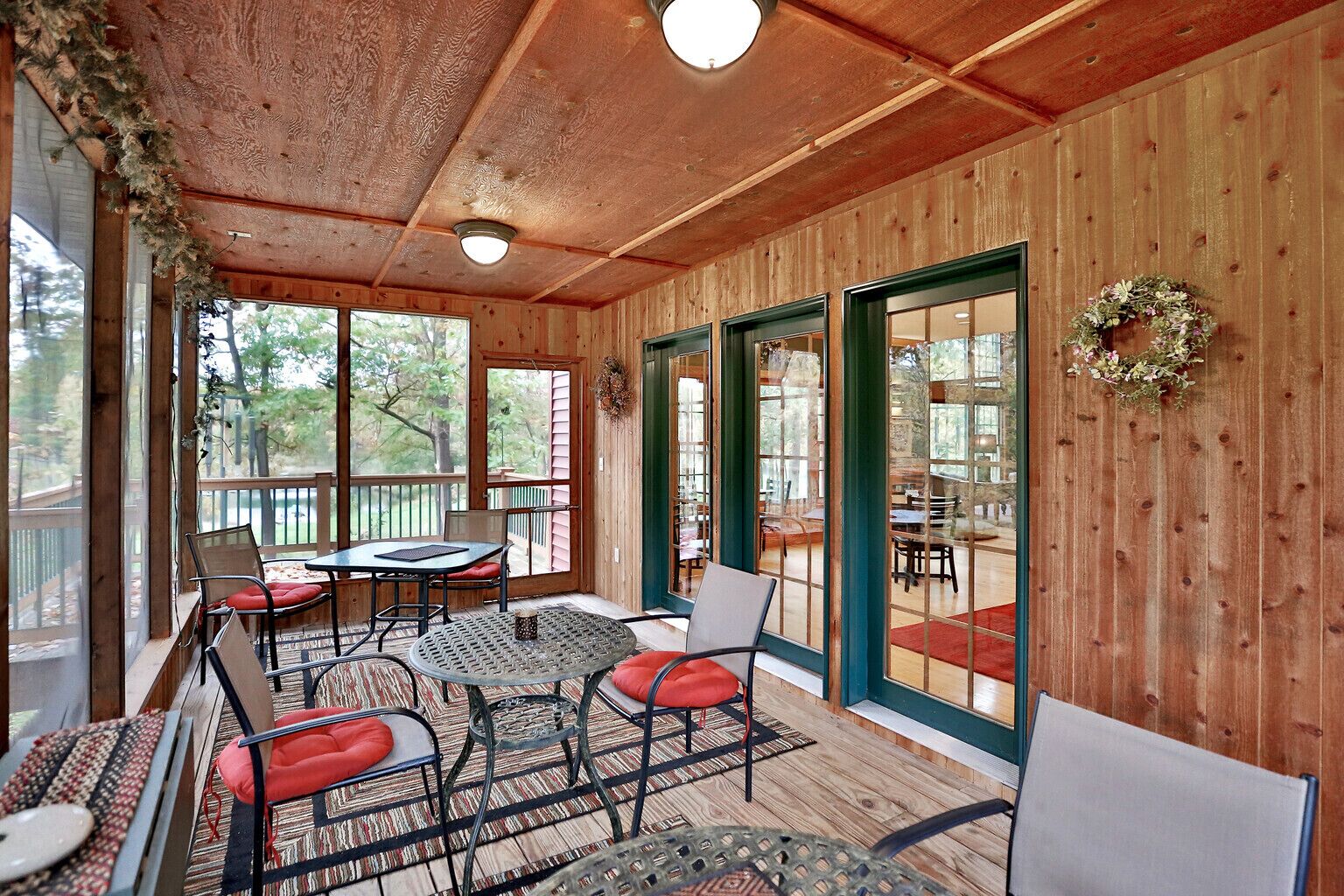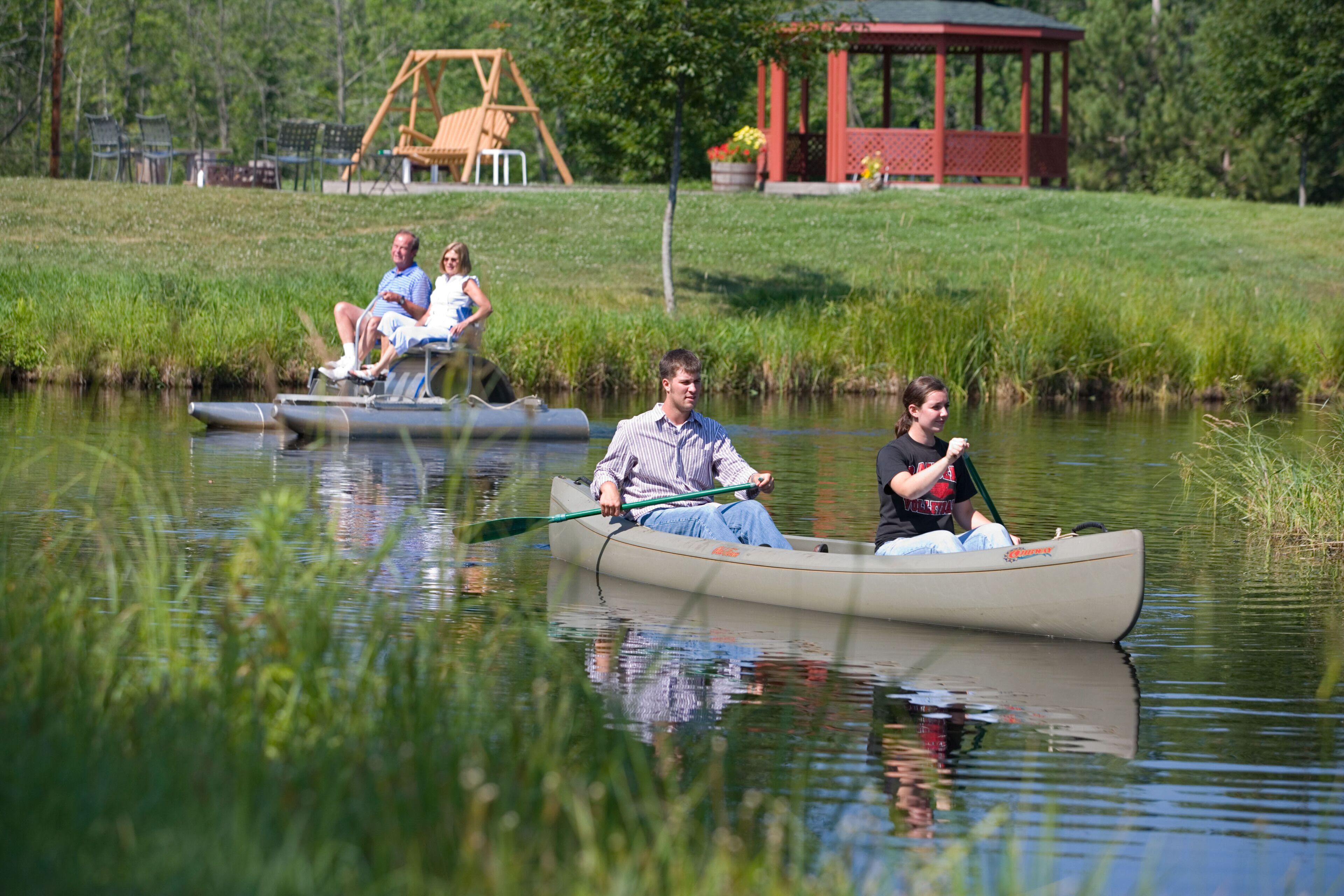 Woodland Trails Lodge on 130 acres with ponds and miles of private trails Woodland Trails' Lodge was built in 2003 to be an upscale B & B and has been meticulously maintained since. It is now available for your exclusive use. The Great Room is a perfet place for your friends and family to gather. The wood-burning fireplace, with wood provided, adds cozieness. The dining room has seating for everyone, and the kitchen is fully equipped.The view out the windows is of wildlife, including deer, and birds at the feeders. Our private pond is a big figure "8" that makes for an enjoyable trip around on one of our paddle boats or canoe. The seven bedrooms are all spacious, have a private bath, comfortable seating area with electric fireplace and a private deck or patio. Six of the baths also have a whirlpool tub. Each bedroom is perfect for quiet time, to take a nap or read a book. The Owners' Suite, with bedroom, bath and living room is on the main floor. It is perfect for anyone who has difficulty with stairs. Four bedrooms are located on the 2nd floor. They are the Winterberry, Royal Fern, Aspen and Red Oak. The St. Croix and Sugar Maple Rooms are located on the lower, walk-out level. Five of the bedrooms have king-size beds. The Red Oak as a queen-size and the Sugar Maple has two twin beds and a private bath with shower but no tub.We have miles of private trails on our wooded land. Outside of snow season, golf carts are provided for touring in comfort. Bring your four-wheelers or snowmobiles. We have plenty of parking. Our trails are reserved for hiking, snowshoeing and our complimentary golf carts but, in Pine County, it is legal to ride ATVs and Four-Wheelers on the roadside to a major trail system 1/2 mile north of the Lodge.While our address is Hinckley, we are located 23 miles east of Hinckley, near the St. Croix River and the Wisconsin border. We are just four miles from Danbury, Wisconsin.We are an easy two-hour drive from the Twin Cities, St. Cloud or Eau Claire and just over an hour from Duluth. Besides enjoying the view, perhaps with a real-wood fire in the fireplace, guests enjoy watching the birds at feeders outside. Your well-behaved one or two dogs are welcome.Two casinos are nearby: St. Croix Casino in Danbury and Grand Casino in Hinckley. Canoeing and tubing on the St. Croix and Namekagan Rivers through Pardun Conoe Rental in Danbury. Four-wheeling? Bring yours or rent from Throttle RX Rentals in Danbury.St. Croix State Park, Minnesota's largest, has activities in every season. Crex Meadows Wildlife Area in Grantsburg has great wildlife watching, particularly during spring and fall migrations. Forts Folle Avoine in Webster, Wisconsin is a reproduction of an 1803 fur trading post.What are your interests? Let us know and we will be happy to make suggestions.Rates: The base rate covers six guests. The rate for each additional guest is $45 per person per night, which is shown under "Host Fees" and "Additional Guests".