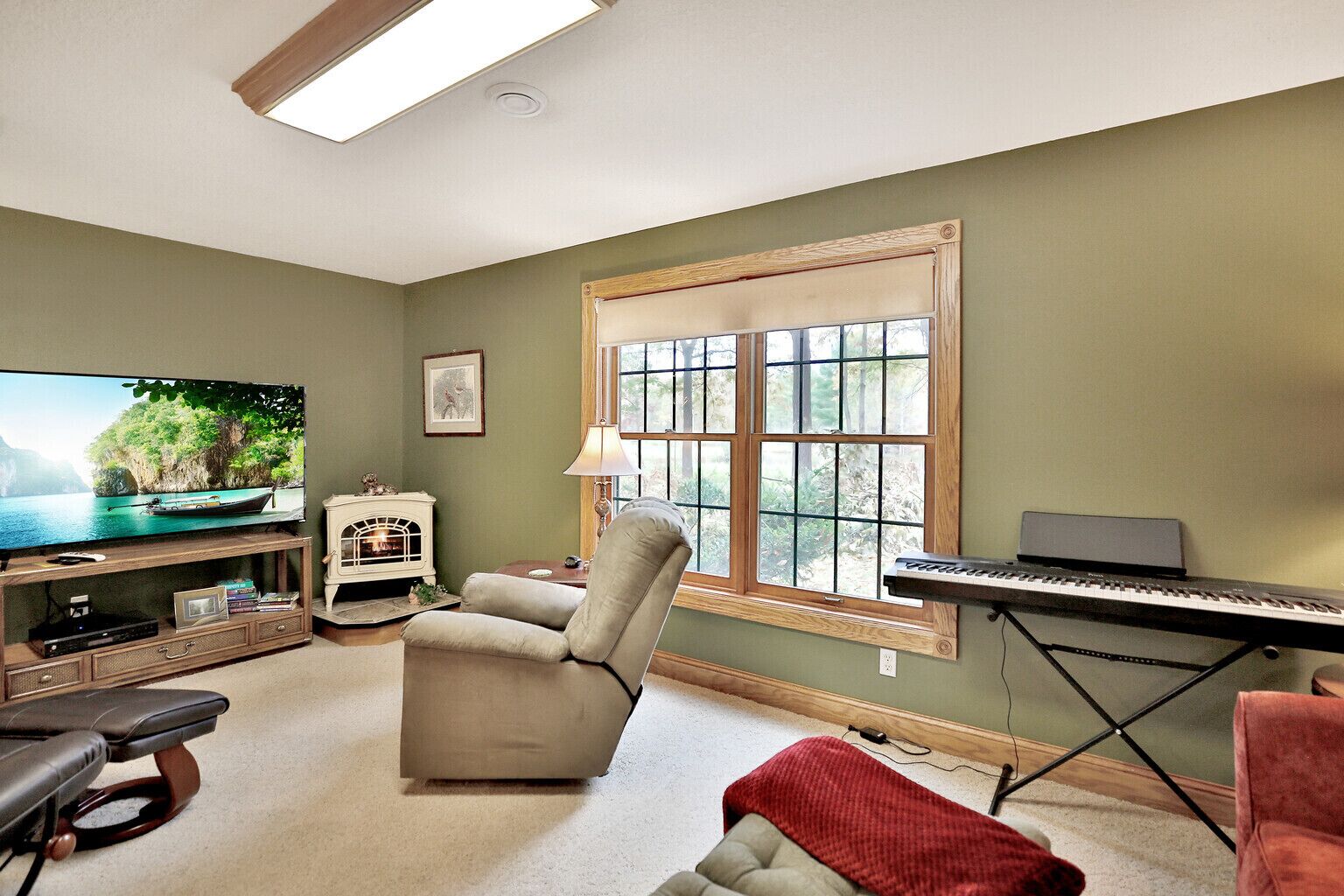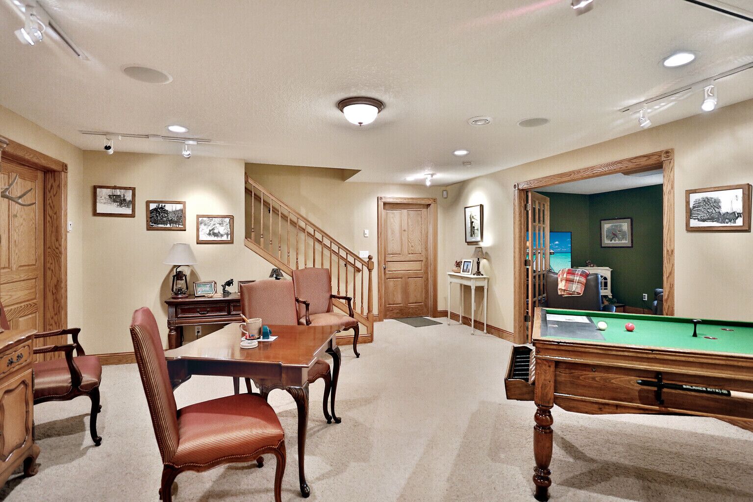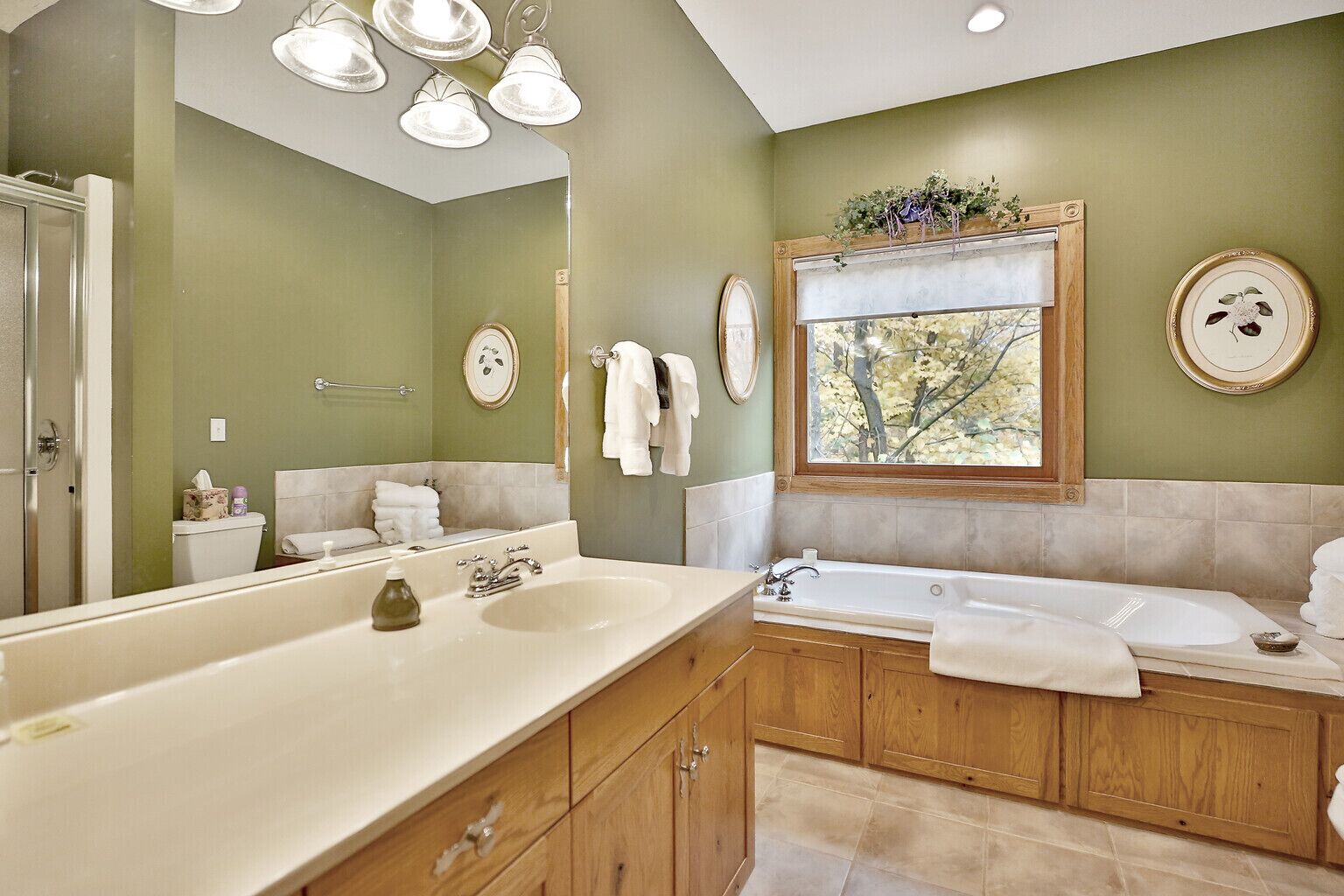 Woodland Trails Lodge on 130 acres with ponds and miles of private trails Woodland Trails' Lodge was built in 2003 to be an upscale B & B and has been meticulously maintained since. It is now available for your exclusive use. The Great Room is a perfet place for your friends and family to gather. The wood-burning fireplace, with wood provided, adds cozieness. The dining room has seating for everyone, and the kitchen is fully equipped.The view out the windows is of wildlife, including deer, and birds at the feeders. Our private pond is a big figure "8" that makes for an enjoyable trip around on one of our paddle boats or canoe. The seven bedrooms are all spacious, have a private bath, comfortable seating area with electric fireplace and a private deck or patio. Six of the baths also have a whirlpool tub. Each bedroom is perfect for quiet time, to take a nap or read a book. The Owners' Suite, with bedroom, bath and living room is on the main floor. It is perfect for anyone who has difficulty with stairs. Four bedrooms are located on the 2nd floor. They are the Winterberry, Royal Fern, Aspen and Red Oak. The St. Croix and Sugar Maple Rooms are located on the lower, walk-out level. Five of the bedrooms have king-size beds. The Red Oak as a queen-size and the Sugar Maple has two twin beds and a private bath with shower but no tub.We have miles of private trails on our wooded land. Outside of snow season, golf carts are provided for touring in comfort. Bring your four-wheelers or snowmobiles. We have plenty of parking. Our trails are reserved for hiking, snowshoeing and our complimentary golf carts but, in Pine County, it is legal to ride ATVs and Four-Wheelers on the roadside to a major trail system 1/2 mile north of the Lodge.While our address is Hinckley, we are located 23 miles east of Hinckley, near the St. Croix River and the Wisconsin border. We are just four miles from Danbury, Wisconsin.We are an easy two-hour drive from the Twin Cities, St. Cloud or Eau Claire and just over an hour from Duluth. Besides enjoying the view, perhaps with a real-wood fire in the fireplace, guests enjoy watching the birds at feeders outside. Your well-behaved one or two dogs are welcome.Two casinos are nearby: St. Croix Casino in Danbury and Grand Casino in Hinckley. Canoeing and tubing on the St. Croix and Namekagan Rivers through Pardun Conoe Rental in Danbury. Four-wheeling? Bring yours or rent from Throttle RX Rentals in Danbury.St. Croix State Park, Minnesota's largest, has activities in every season. Crex Meadows Wildlife Area in Grantsburg has great wildlife watching, particularly during spring and fall migrations. Forts Folle Avoine in Webster, Wisconsin is a reproduction of an 1803 fur trading post.What are your interests? Let us know and we will be happy to make suggestions.Rates: The base rate covers six guests. The rate for each additional guest is $45 per person per night, which is shown under "Host Fees" and "Additional Guests".