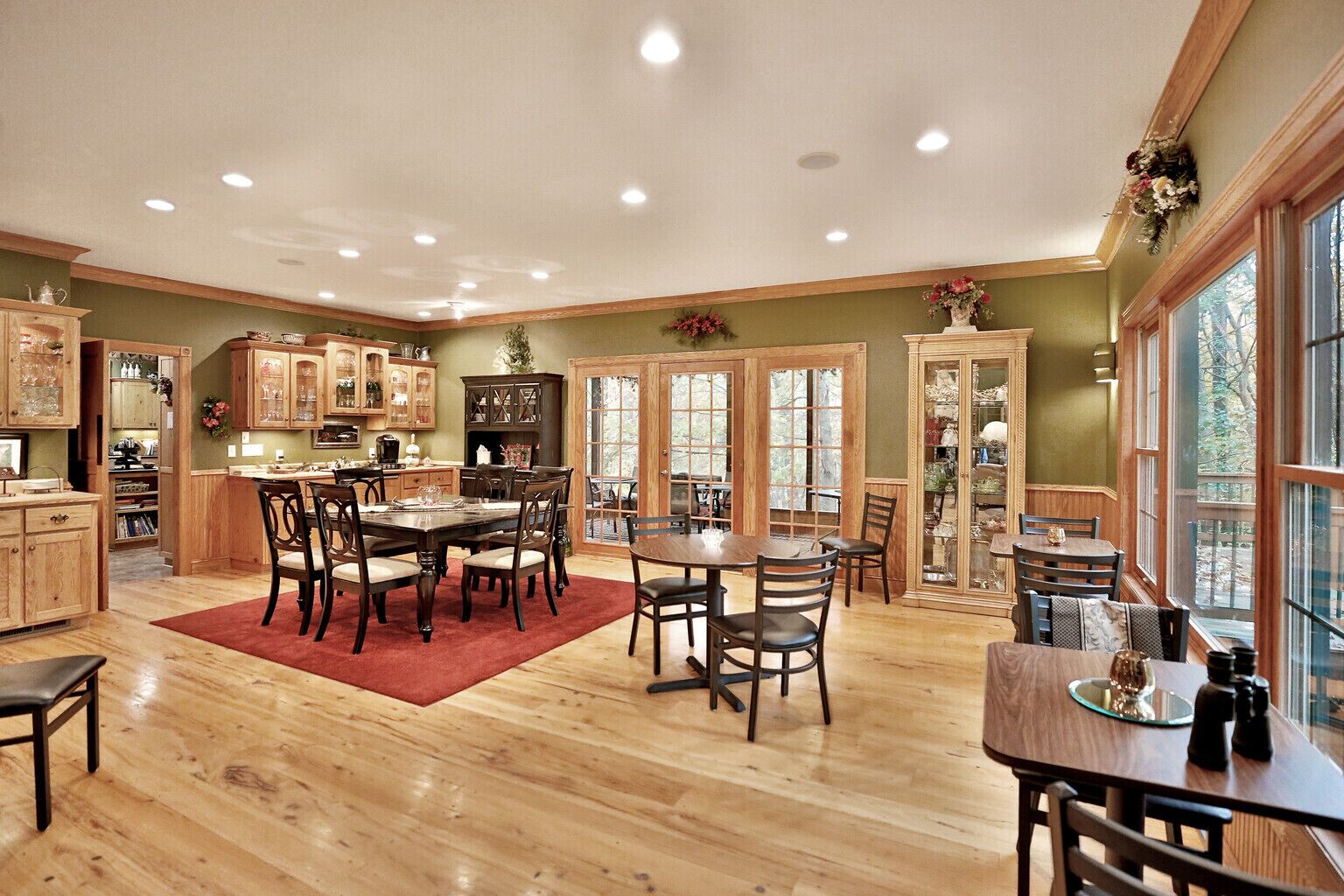 Woodland Trails Lodge on 130 acres with ponds and miles of private trails Woodland Trails' Lodge was built in 2003 to be an upscale B & B and has been meticulously maintained since. It is now available for your exclusive use. The Great Room is a perfet place for your friends and family to gather. The wood-burning fireplace, with wood provided, adds cozieness. The dining room has seating for ever...