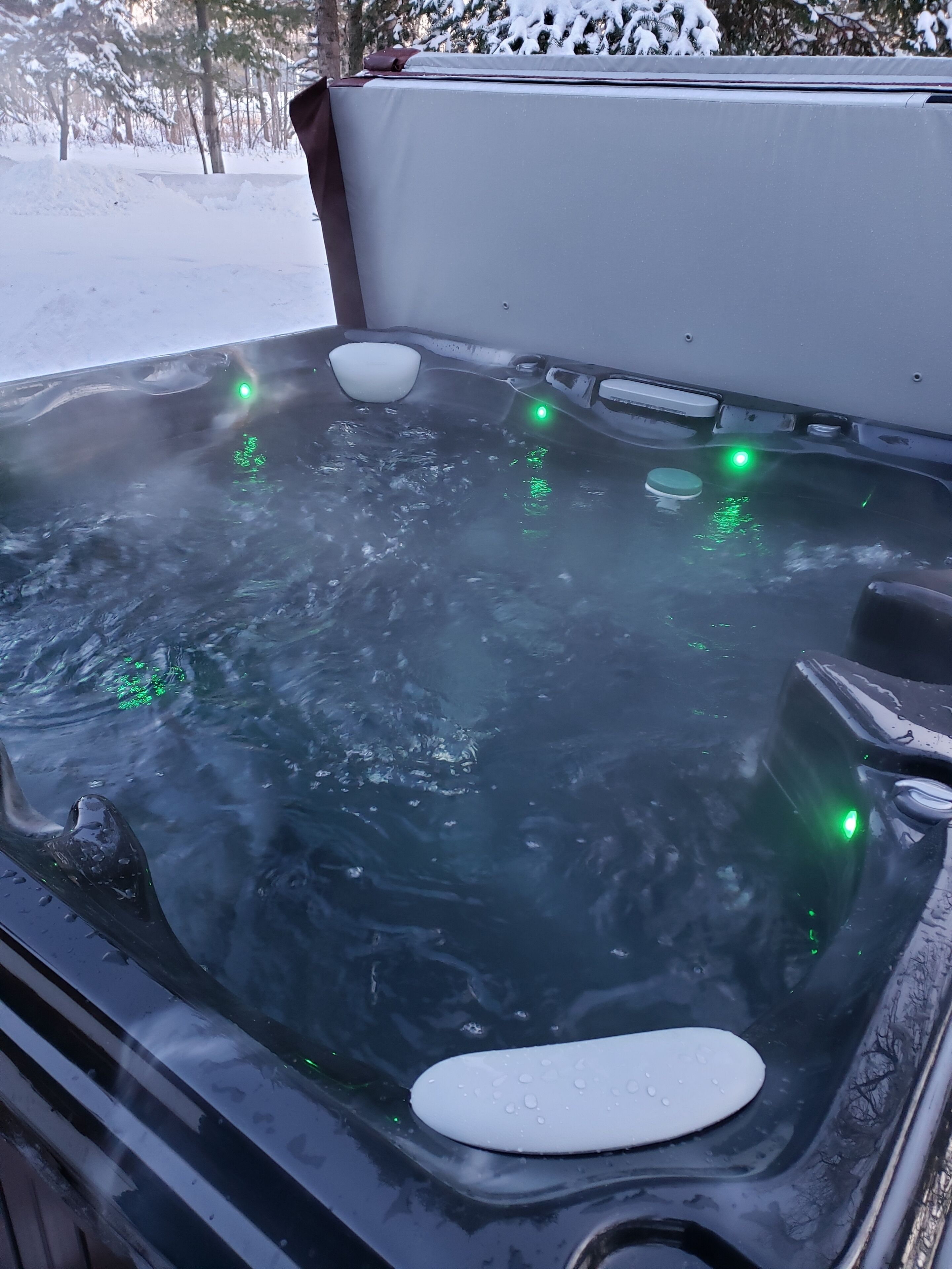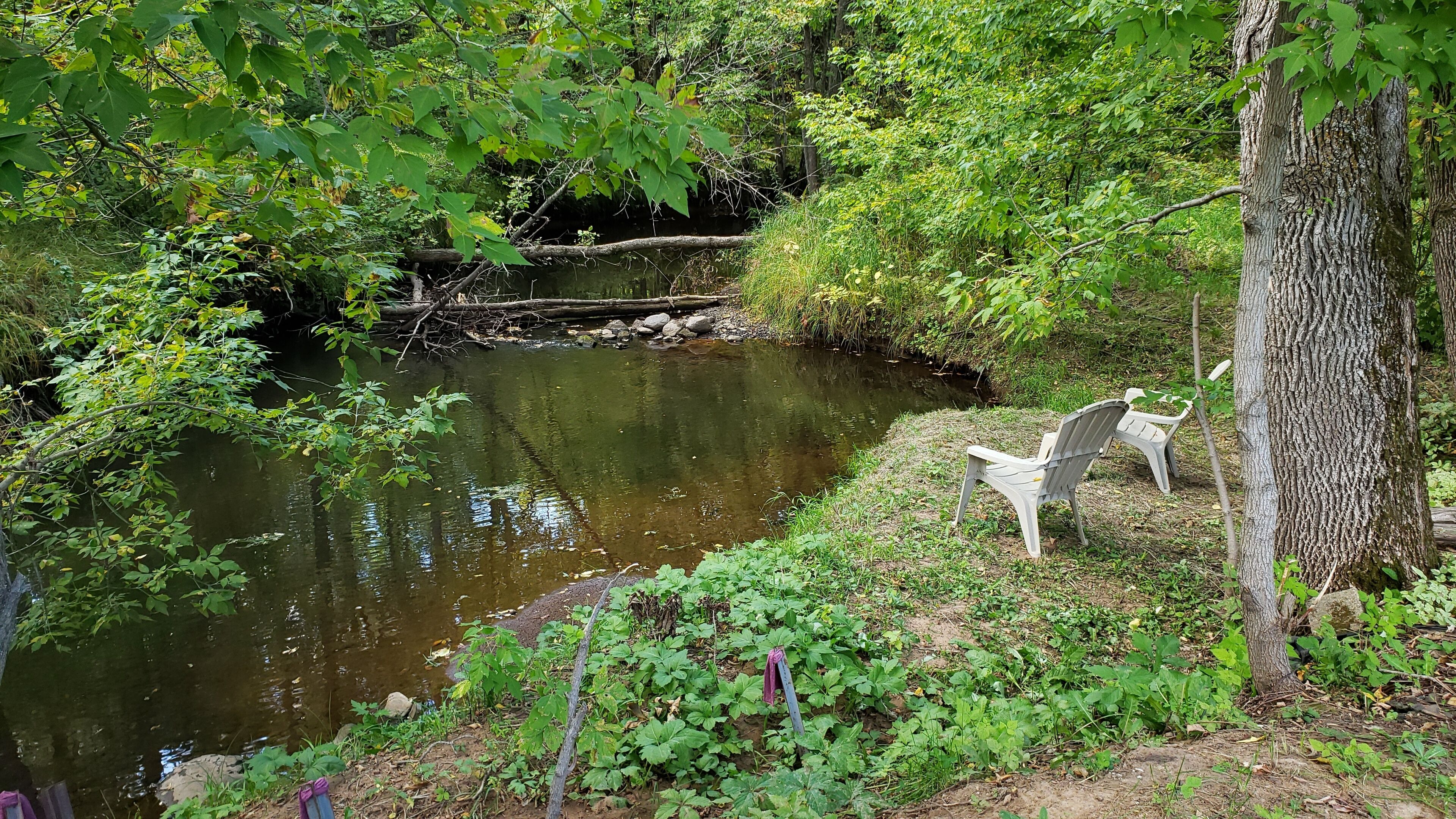 Cozy cabin on the bank of Bear Creek with a hot tub to relax in! A cozy comfortable cabin with country charm on the bank of the Bear Creek in Cloverdale Minnesota! The 588 sq ft cabin has 2 bedrooms, a bathroom, kitchen, living Room, a beautiful stone gas fireplace and pine wood floors. Outside there is a new six person hot tub and a fire pit with wood. The cabin is located midway between the Twin Cities and Duluth on I 35. And just 9 miles East of Hinkley on highway 48 in Cloverdale Minnesota. Come and leave the stress behind as you slow down and unwind on the bank of the Bear Creek!