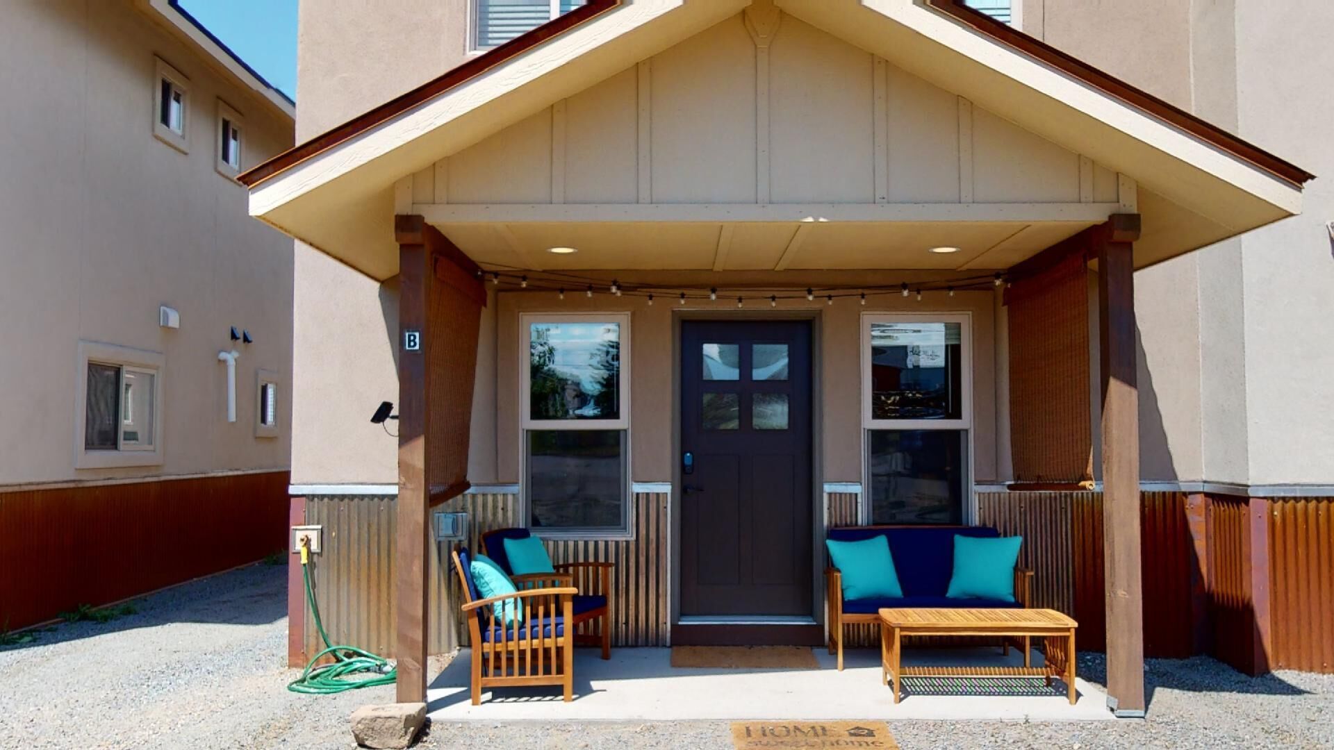 Sea of Sage Townhome Stylish townhouse in a quiet neighborhood in Gunnison, conveniently located just a few blocks from the airport. Openconcept downstairs allows everyone to socialize whether you are relaxing on the couch, cooking food, or working on your bike in the garage. Radiant in-floor heat means you will always be warm and comfortable in the winter and ceiling fans in every room that keep you cool in the summer. The downstairs also has a dedicated desk space to allow you to work remotely and free high-speed wifi throughout the townhouse. Two flat-screen smart TVs have all your favorite streaming apps. Guests must be able to climb a flight of stairs to access the bedrooms upstairs. Keyless front entry. Washer and dryer for guest use. Patio furniture allows space for enjoying conversation or peaceful reading time outside in the breeze or in the garage as you work on your bike. Our heated garage is available only for gear storage, please no cars inside the garage. We have provided a bike repair stand and bike storage stands, as well as ski holders and shelving for boots.Kitchen is fully stocked with a 12 cup drip coffee maker and french press, toaster, slow cooker, small food processor, common spices and condiments (all organic), oils, dishwasher, and microwave. Modern kitchen setup includes stainless steel appliances, granite countertops, and granite top island with bar stools. Other items provided throughout the house include a hairdryer, iron and ironing board, first aid kit, fire extinguisher, coffee and tea, shampoo, conditioner, and body wash, and extra towels, pillows, and blankets.Our space is kid-friendly with child-safe outlets standard, baby gates, high chair, and pack&play with bassinet available onsite. The kitchen is stocked with sippy cups, kid's plates, cups, and utensils. Games for all ages available.