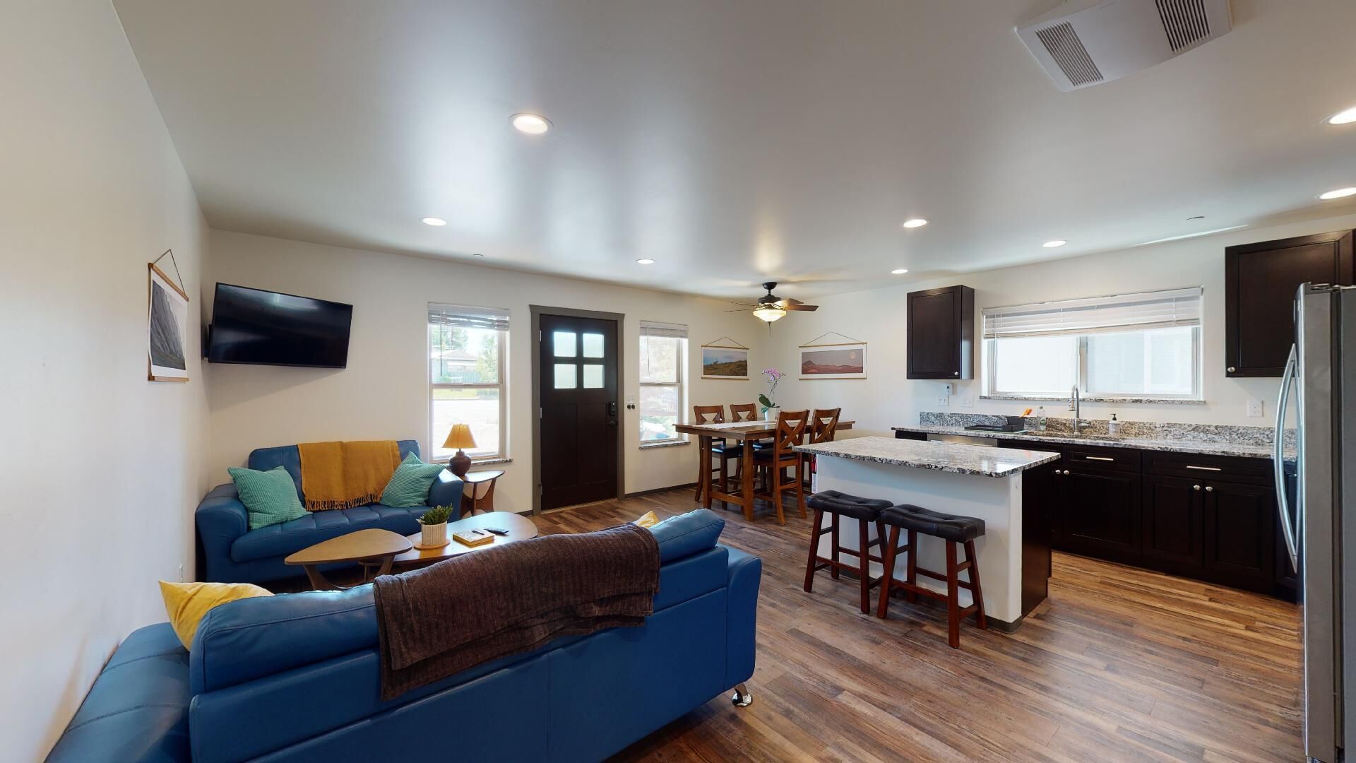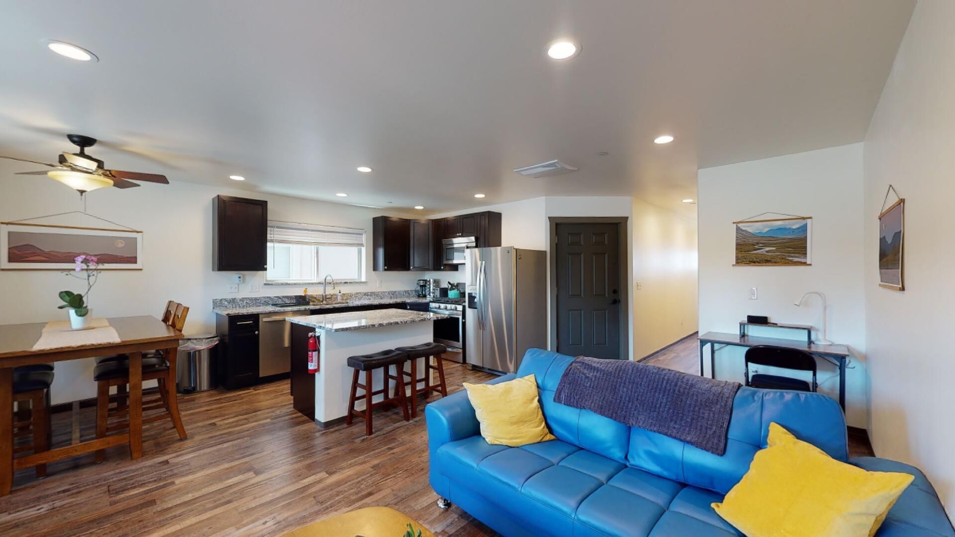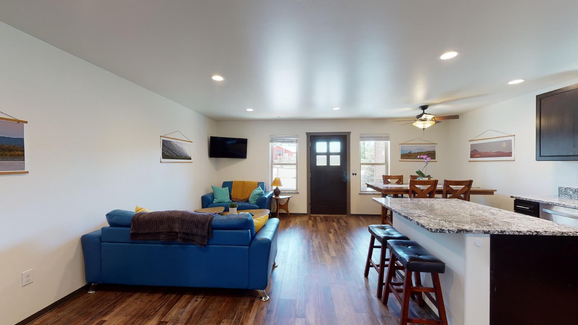 Sea of Sage Townhome Stylish townhouse in a quiet neighborhood in Gunnison, conveniently located just a few blocks from the airport. Openconcept downstairs allows everyone to socialize whether you are relaxing on the couch, cooking food, or working on your bike in the garage. Radiant in-floor heat means you will always be warm and comfortable in the winter and ceiling fans in every room that keep...