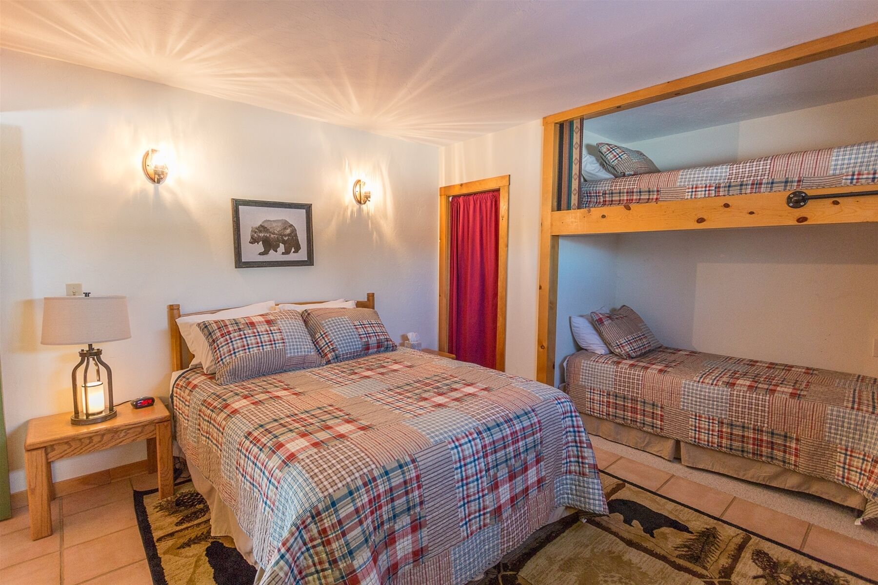 West Elk Wilderness Lodge Hello! Welcome to the West Elk Wilderness Lodge.When we think of home, we think of a place of love, laughter, and good times. These walls hold a lot of special memories for us, unwinding after a day of adventures around Gunnison.For many decades now, many fond memories have been had with our family hunting and exploring in the nearby West Elk Wilderness, so this was a fitting name for the Lodge.Located on the west edge of town near the Gunnison River on a 1.5-acre lot, we often have deer and fox on the property and every once in a while, a black bear. They are a delight to watch and the sunrises and sunsets are gorgeous as well. The Lodge offers the feeling of being out of town while having all of the amenities and comforts of being in town.We are honored to open our doors to have you share in all that joy, and help you make some memories here of your own.So, when you come in, kick off your shoes and enjoy the wonderful heated floors throughout the home. On the main floor is the first bedroom featuring a queen bed, bunk beds and also a desk area, a bathroom with a steam shower, a living and entertaining space with a pool table and piano, a kitchen and dining area, a laundry room and a morning coffee room. Upstairs you will find another family room with futon bed and game area, the master suite with a king bed, walk-in closet and bathroom with shower, and two more bedrooms with queen beds and a family-friendly bathroom with double sinks and a shower/tub combo.This is the perfect home for your family and friends!Sorry no long-term rentals (stays beyond 28 days), as we still like to come and enjoy the lodge ourselves. There is a long-term tenant above the detached garage. There are outside security cameras. NO PETS! This home is allergy-free with carpet throughout! Please do not rent if you need to bring your dog