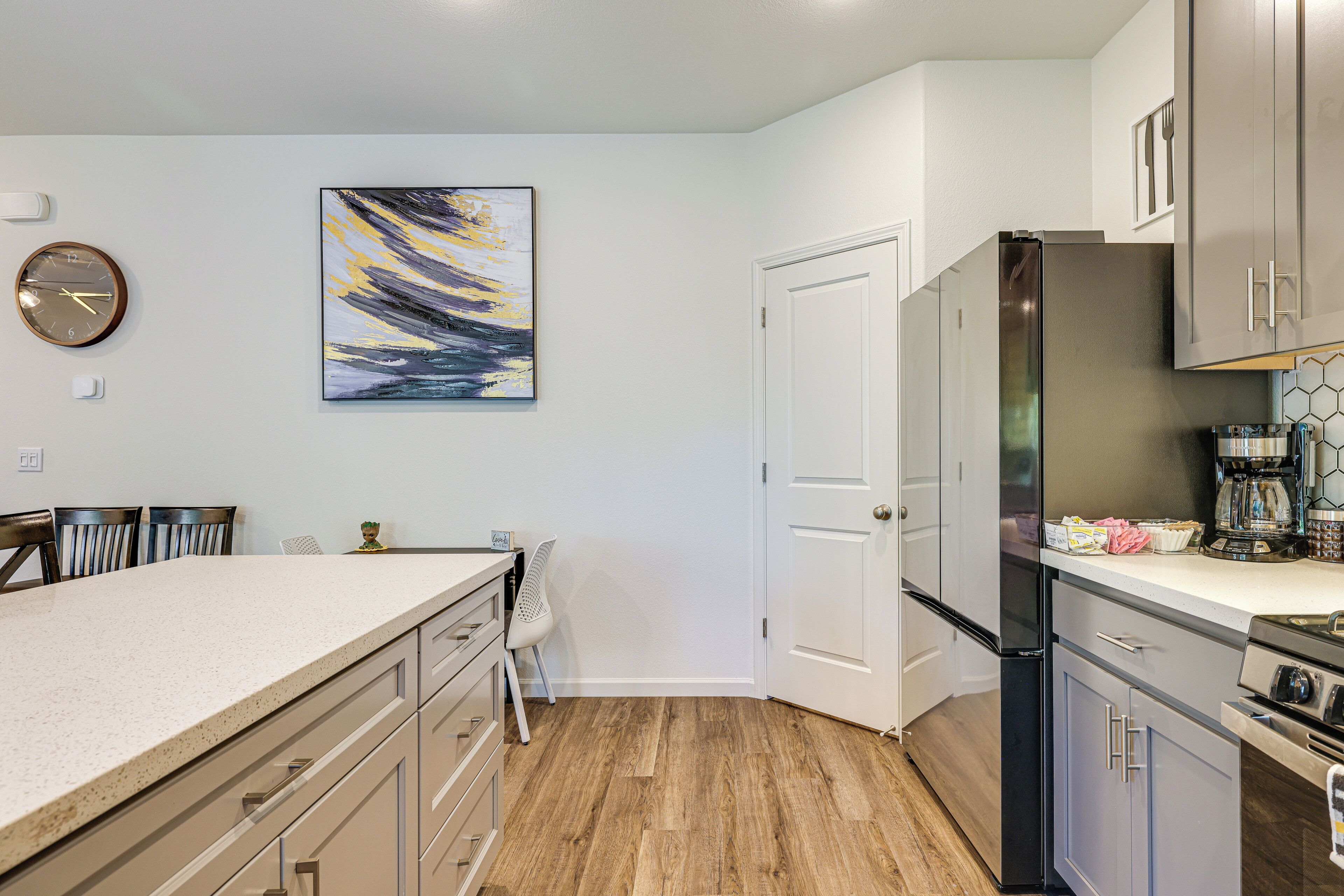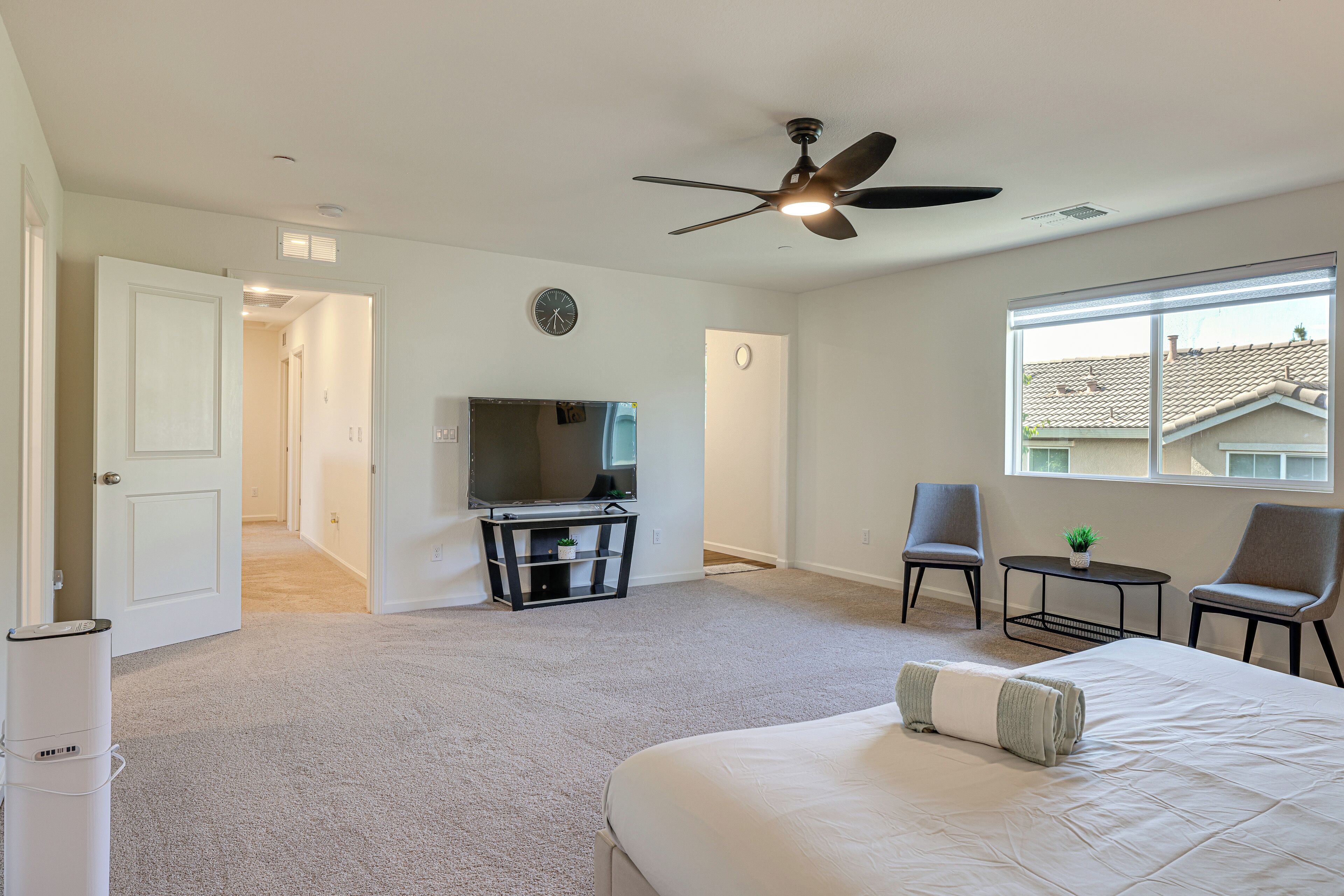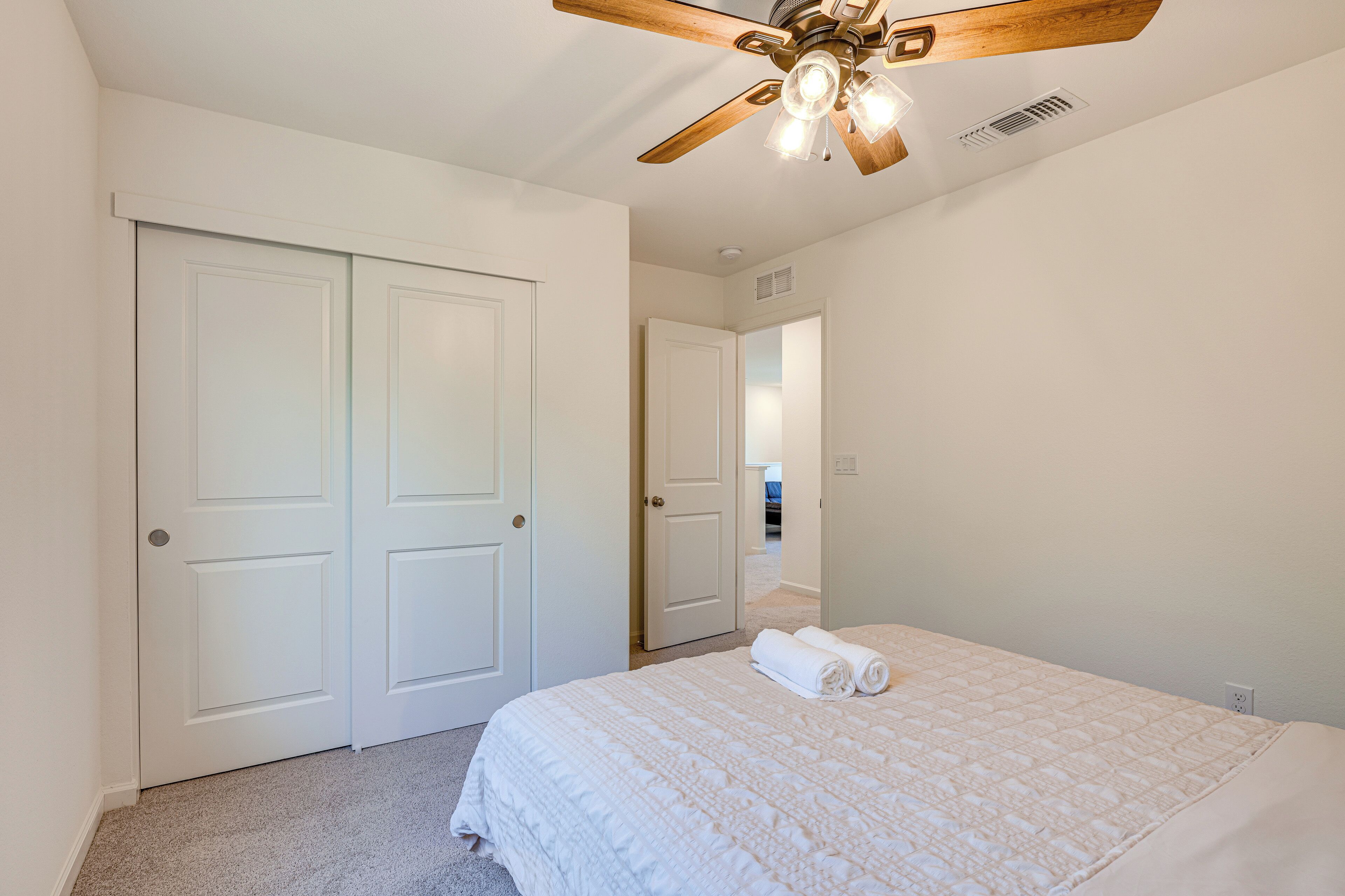 Spacious Family Home in Stockton - Pets Welcome! Gather loved ones and pets and enjoy a pleasant stay at this 4-bedroom, 3-bathroom vacation rental in Stockton, CA. Take a short 3-mile drive to exciting downtown attractions, such as the Adventist Health Arena, or walk to the playground from the property. For more outdoor fun, grill out on the deck and play fetch with a furry friend in the fenced backyard. This home also offers a modern kitchen, 2 flat-screen TVs, a board game selection, and children's toys for entertaining the little ones!-- THE PROPERTY --Fenced Yard | Gas Grill | Board Games/Puzzles | Walk to Moss Garden Community Park & Playground | 3 Mi to DowntownBedroom Suite: King Bed | Bedroom 2: Queen Bed | Bedroom 3: Queen Bed | Bedroom 4: King Bed | Family Room: Twin FutonOUTDOOR LIVING: Deck, 2-person outdoor dining areaINDOOR LIVING: 2 flat-screen TVs, sound system w/ sound bar & subwoofer, 2 workstations, children's toys, yoga mats, exercise weights, walk-in closet, 2,225 sq ftKITCHEN: Stove/oven, refrigerator, microwave, dishwasher, dishware/flatware, cooking basics, reverse osmosis water system, Hamilton Beach drip coffee maker, sugar packets, electric kettle, toaster, breakfast barGENERAL: Free WiFi, central air conditioning/heat, complimentary toiletries, towels/linens, water softener, washer/dryer, laundry detergent, iron/board, hair dryer, pet supplies, trash bags/paper towels, keyless entryFAQ: Pet fee (paid pre-trip), 3 exterior security cameras (facing out)ACCESSIBILITY: 2-story home, exterior stairs to enter, bedroom/bathroom on 1st floorPARKING: Driveway (2 vehicles), street parking (first-come, first-served)-- THE LOCATION --ATTRACTIONS: Children's Museum, Stockton (2 miles), Regal Stockton City Center (3 miles), Adventist Health Arena (3 miles), The Bob Hope Theatre (3 miles)OUTDOOR FUN: Moss Garden Community Park (0.1 miles), Louis Park (4 miles), Honorable Sandra David Smith Park (4 miles), Lodi Lake Beach (20 miles)GOLF: Stockton Golf and Country Club (5 miles), Oakmoore Golf Course (6 miles), Swenson Park Golf Course (8 miles), Manteca Park Golf Course (12 miles), Elkhorn Golf Club (14 miles)AIRPORTS: Stockton Metropolitan Airport (6 miles), Sacramento International Airport (58 miles), San Francisco Bay Oakland International Airport (65 miles), San José Mineta International Airport (72 miles), San Francisco International Airport (83 miles)-- REST EASY WITH US --Evolve makes it easy to find and book properties you’ll never want to leave. You can relax knowing that our properties will always be ready for you and that we’ll answer the phone 24/7. Even better, if anything is off about your stay, we’ll make it right. You can count on our homes and our people to make you feel welcome — because we know what vacation means to you.-- POLICIES --- No smoking- Pet friendly w/ $50 fee (+ fees & taxes, 2 max)- No events, parties, or large gatherings- Must be at least 25 years old to book- Additional fees and taxes may apply- Photo ID may be required upon check-in- NOTE: This 2-story home requires exterior stairs to enter. While a bedroom and bathroom are located on the 1st floor, interior stairs are required to access the rest of the bedrooms on the 2nd floor- NOTE: Your safety matters. This property features 3 exterior security cameras: 1 camera is located above the garage door facing the driveway, 1 camera is located in the doorbell facing the front entrance, and 1 camera is located at the back door facing the backyard. The cameras are outward facing and do not look into interior spaces. The cameras will continuously record video and sound while guests are in residence