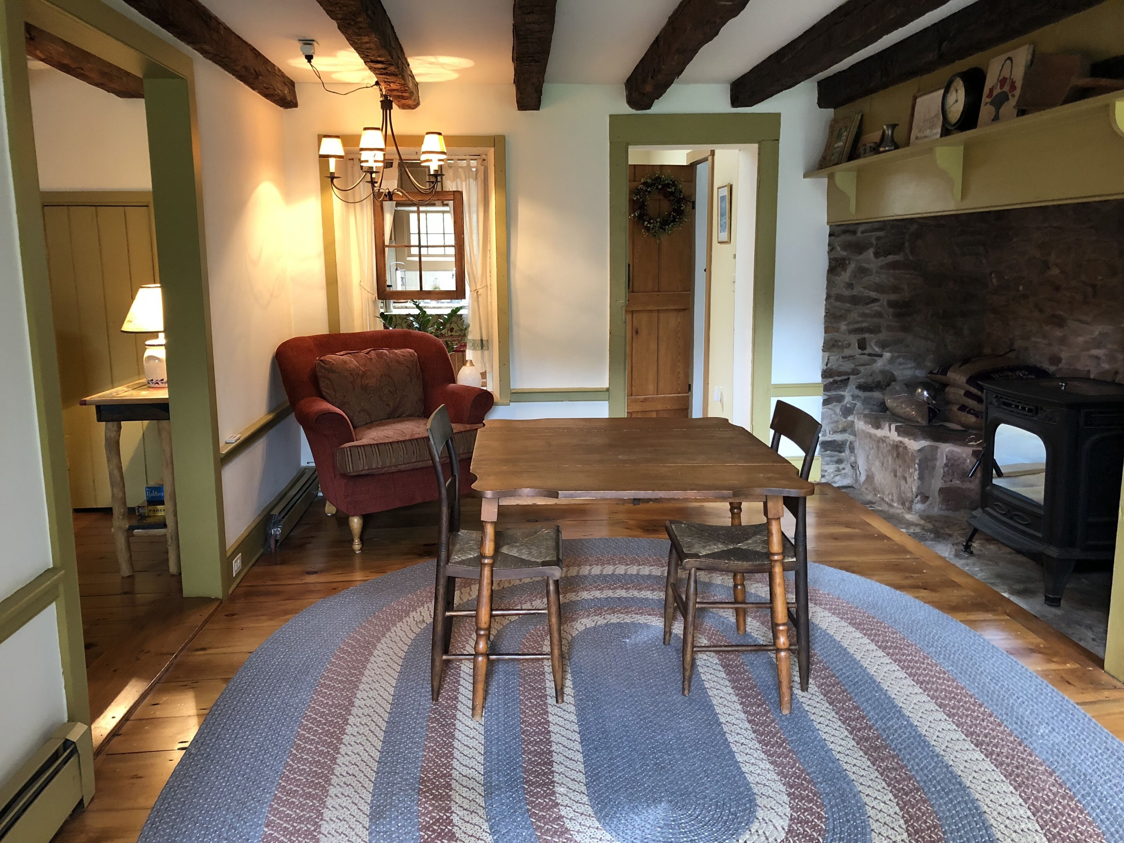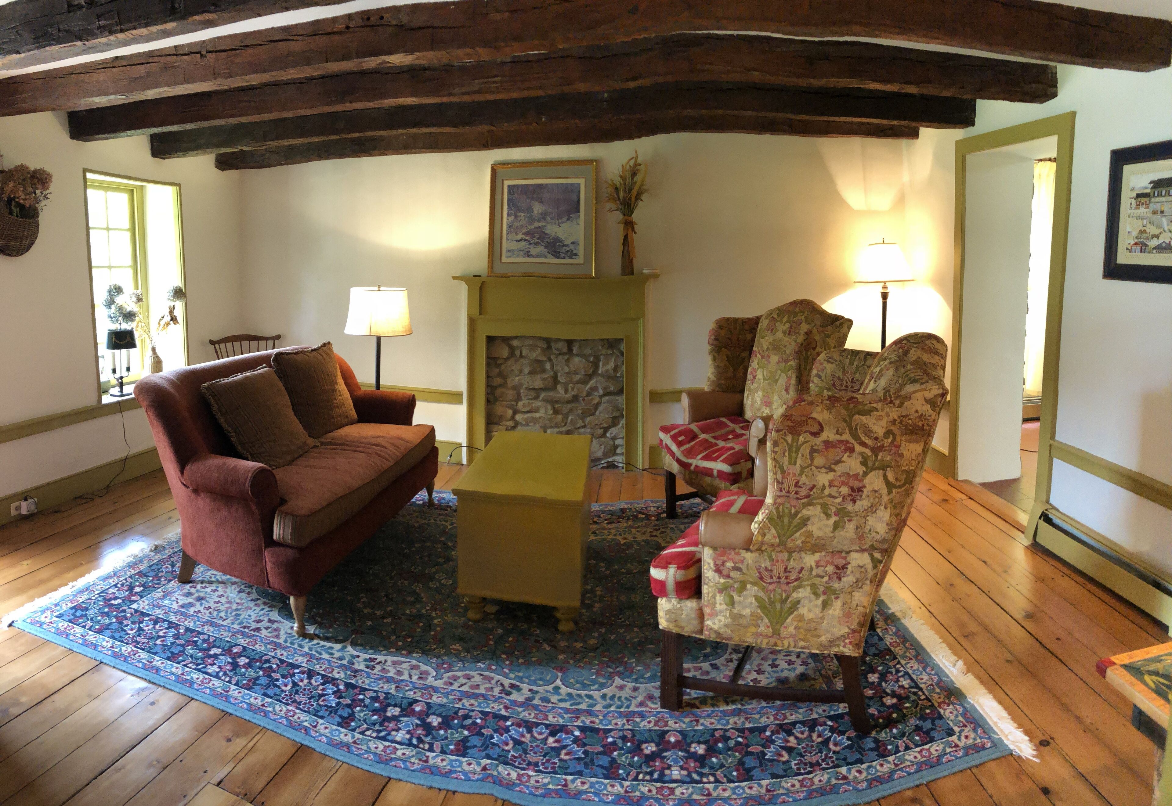 Entire Historic Home close to New Hope/Lambertville Welcome to our lovingly restored historic home. This was our weekend home before we moved out of New York City full time. We are passionate about natural health and wellness and strive to create an environment that is free from harmful toxins. We proudly use therapeutic grade essential oils, diffusers and plant-based products from Young Living throughout the house and are excited to give our guests a relaxing and memorable experience. We are located in the town of Sergeantsville just a few doors down from the Sergeantsville Inn and General Store and a 15-minute drive to New Hope/Lambertville. The lovingly restored farmhouse has wide pine floors and a walk-in fireplace with a pellet stove. A keeping room, parlour room, kitchen and full bath round out the first floor. Because this is a historic home, with original wood floors and pie stairs, we ask that guests remove their shoes upon entering the house. The pie stairs to the second floor (bedrooms) are best navigated in bare feet or indoor slippers (the painted stairs can be slippery in socks). There is no handrail (hasn't been one for 200 years!) and you must be careful to walk on the inside of the stairs against the wall. If you have young children, or have difficulty with balance or climbing stairs, our home is probably not for you. Upstairs are two bedrooms (one with a queen bed and the other with a full bed) and a bathroom. You will have access to all parts of the home except the attic and the basement (no reason you'd need access to those areas) Otherwise the entire property is yours.My wife and I are available at any time by phone, text or email during your stay. We live 15 minutes away from the property.