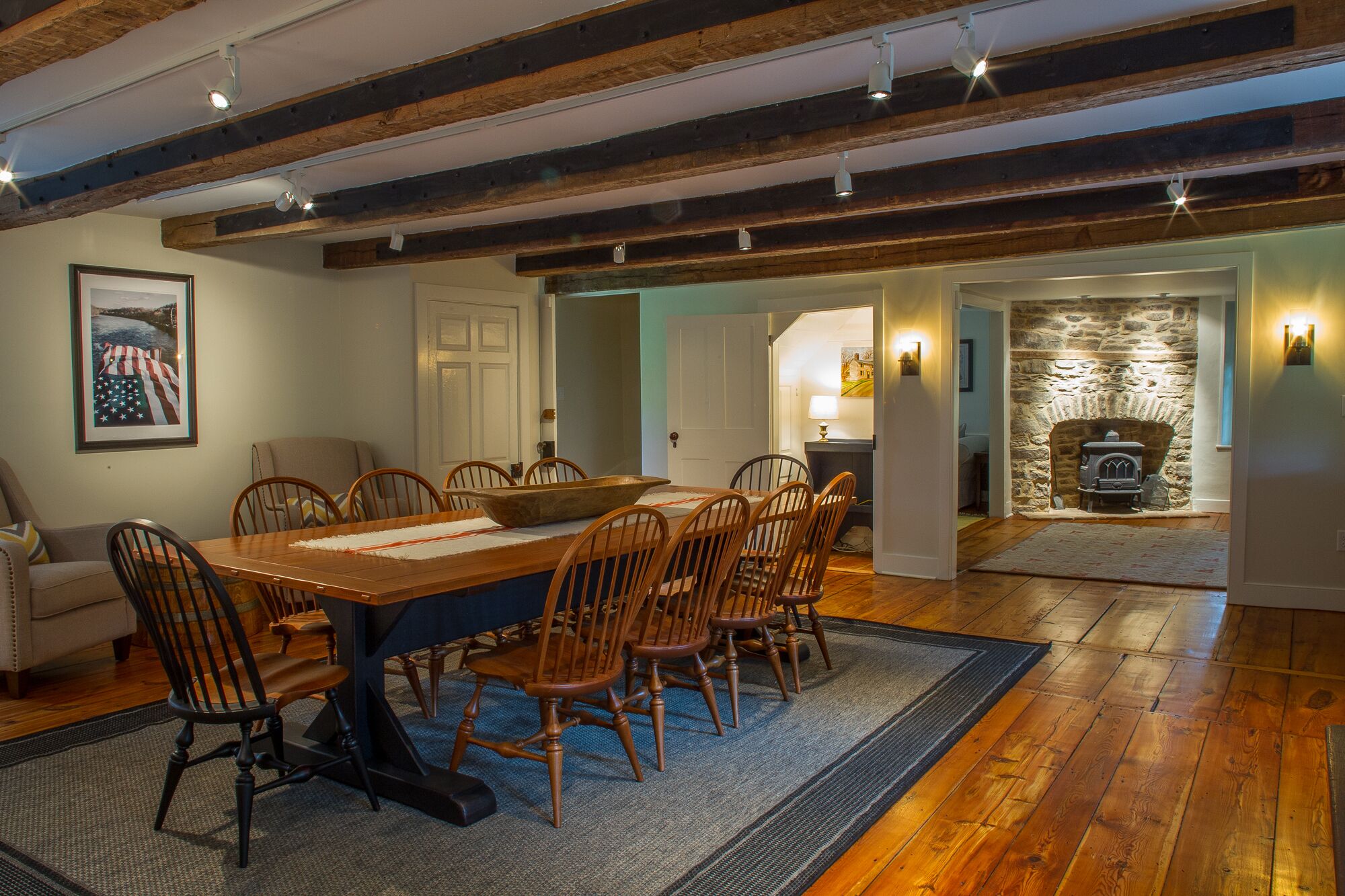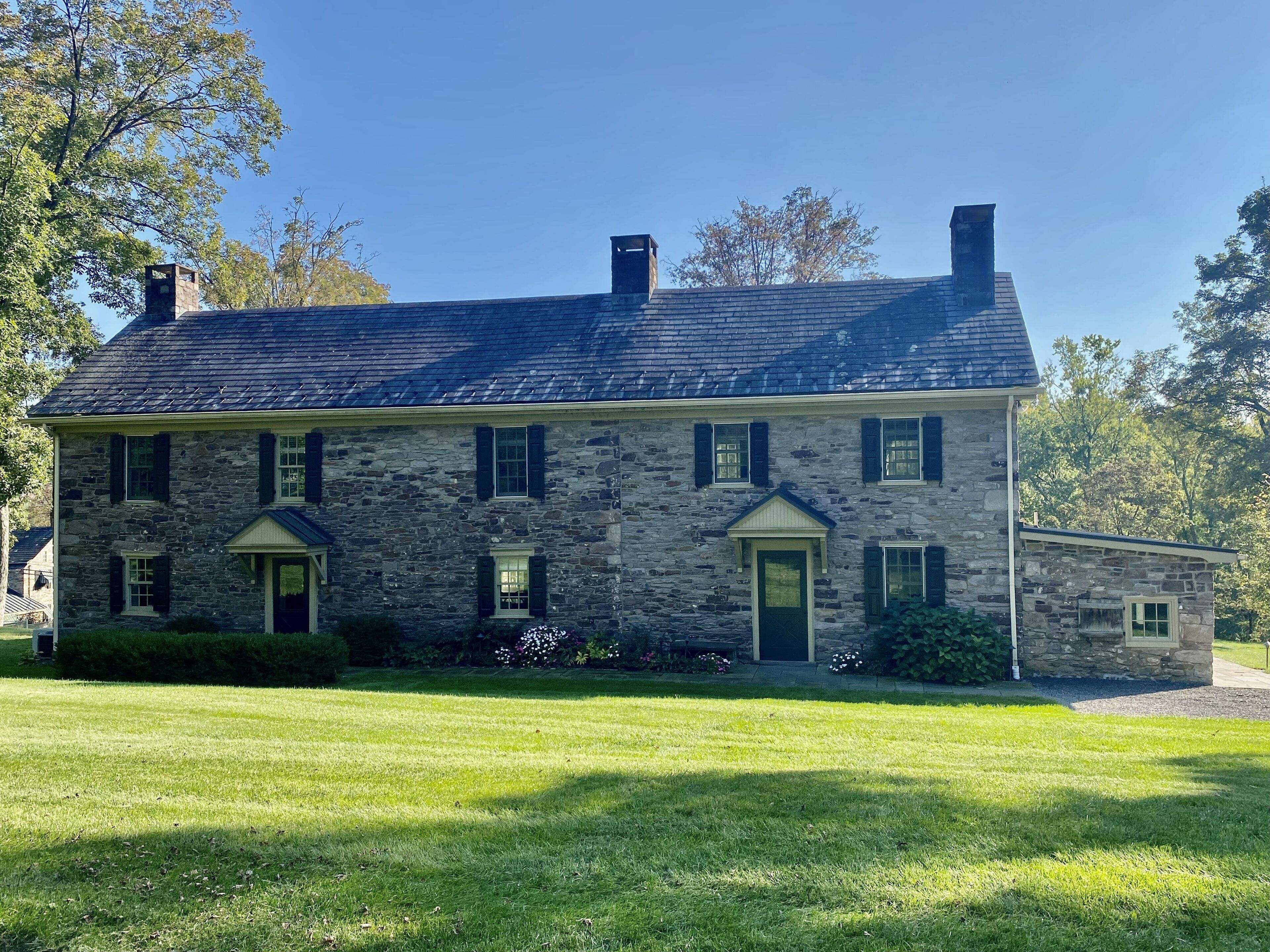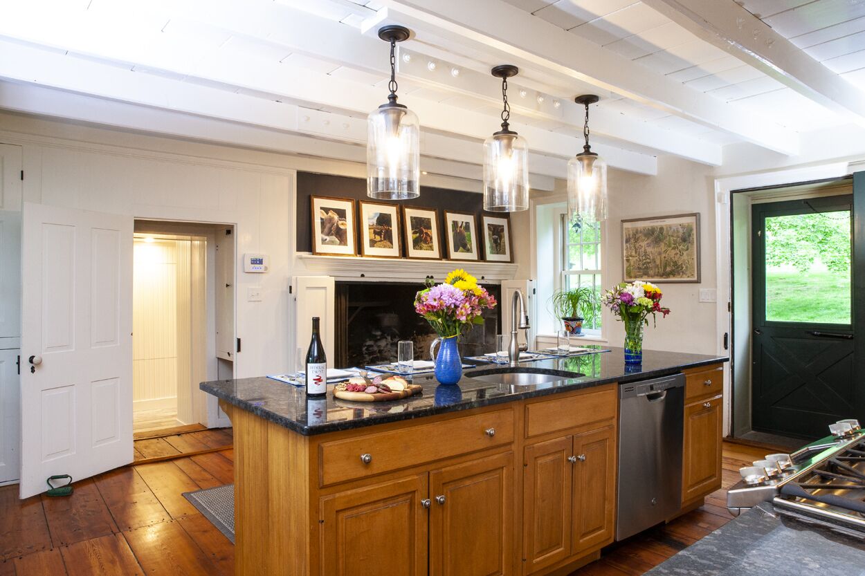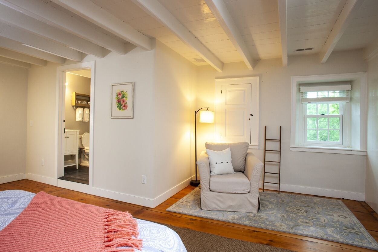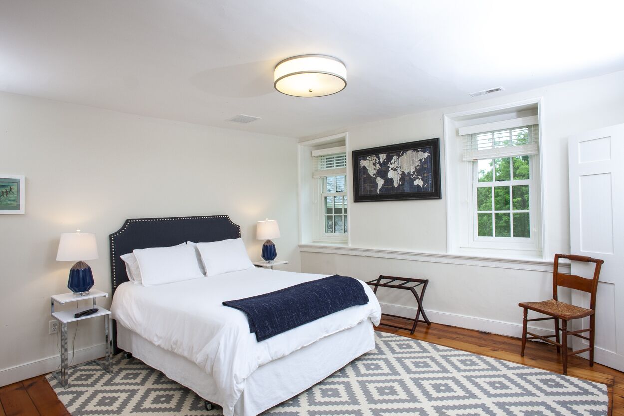 The Federal Twist House Completely restored, 19th century farmhouse situated on 77 acres of private, untouched land just minutes from the Delaware River tow path, shopping, dining, & nightlife. Enjoy the charm of an older home with the convenience of modern, luxurious amenities.This historic 5 bedroom house, built circa 1810, was completely renovated in early 2017, combining a contemporary design with the restored original detail & character of the home.Whether you’re looking for a relaxing retreat or a vacation full of outdoor activities, this home is perfect for families and large groups. Its close proximity to the Delaware River and New Hope, PA allows for bike rides along the canal, fishing & water sports, shopping, outdoor dining, and nightlife.•Enjoy a cocktail by the fire or on the outdoor patio overlooking the expansive lawn and pond•Outdoor grill•Gourmet kitchen with breakfast bar and direct access to the patio – 2nd stove/oven in laundry room•Fireside, custom dining room table fits 12 people •Wet bar•Large family/game room with 55” TV•Laundry room with washer & dryer•2 Primary bedrooms have en suite bathrooms & TV’s•Cozy up in the reading nook for a relaxing afternoon nap•Before booking the house, please be aware that all of the bedrooms and bathrooms, except for the half bath, are located on the second floor. This is an old house, so all 3 staircases are steeper than newer homes. Also, the doorways are not wheelchair accessible.