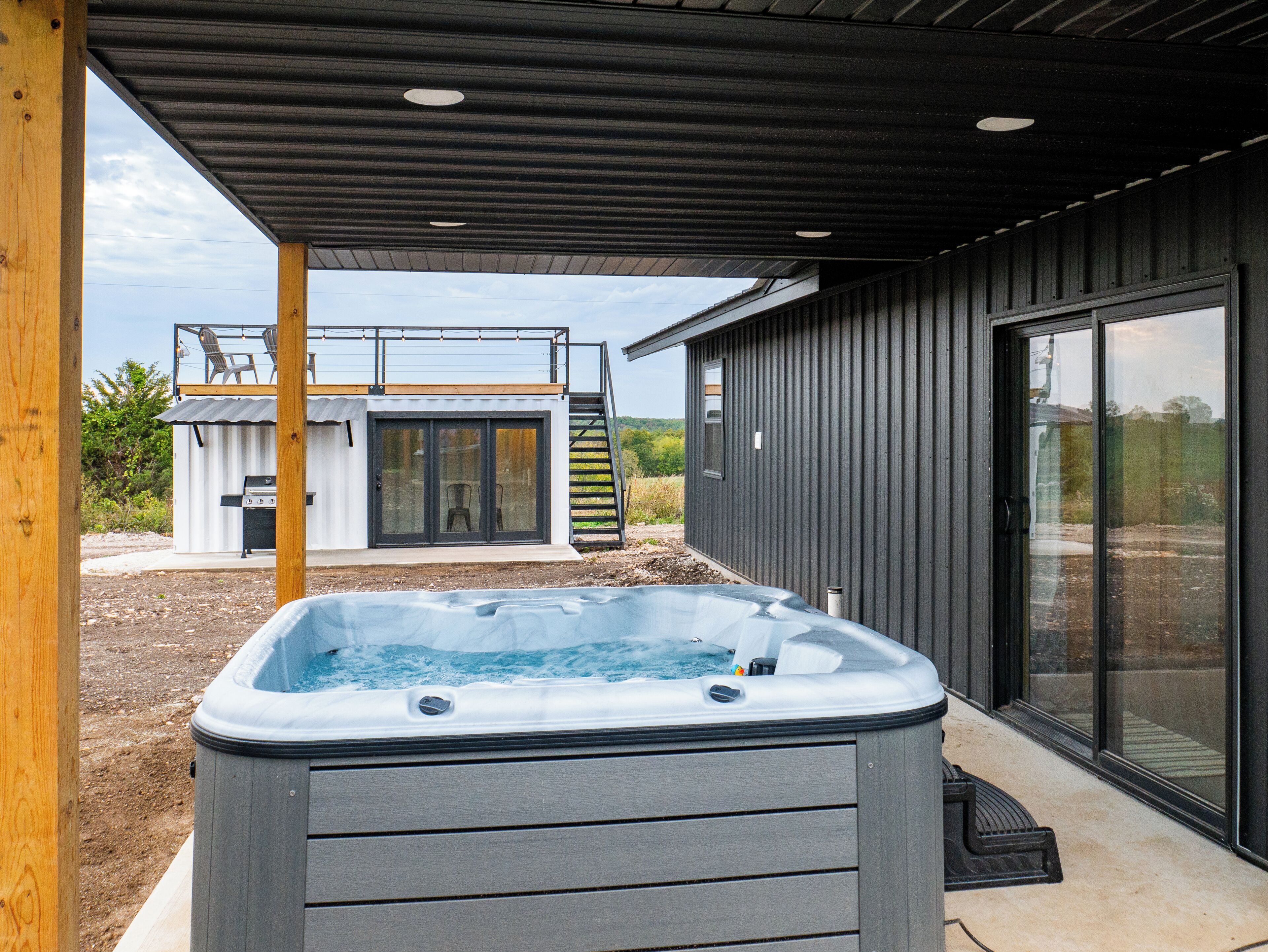 Secluded cabin close to Stockton Lake Enjoy beautiful Stockton Lake in this newly built 2 bedroom 1 bathroom cabin. Included with the rental is a unique outdoor space which includes a grilling area and rooftop deck. The property is located on 5 secluded acres approximately 10 mins from both Stockton State park, and Orleans Trail Marina. The cabin is equipped with all the amenities of home as well as high speed fiber internet for those who need to stay connected and a closet full of board games for those who don’t! Whether you are relaxing in the hot tub, catching a spectacular sunset from the rooftop deck, or just enjoying the comfort of the newly built cabin while watching your favorite movie, this property has it all! Fisherman, we have a circle drive with outdoor power for your boats and a fish cleaning station available for your use.