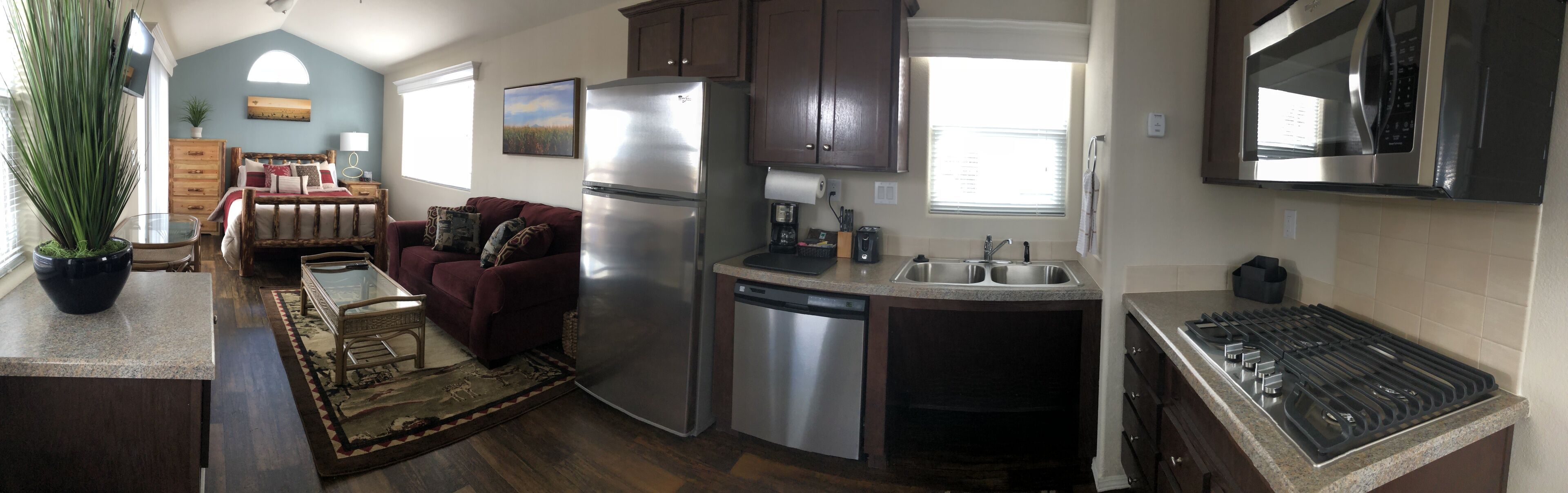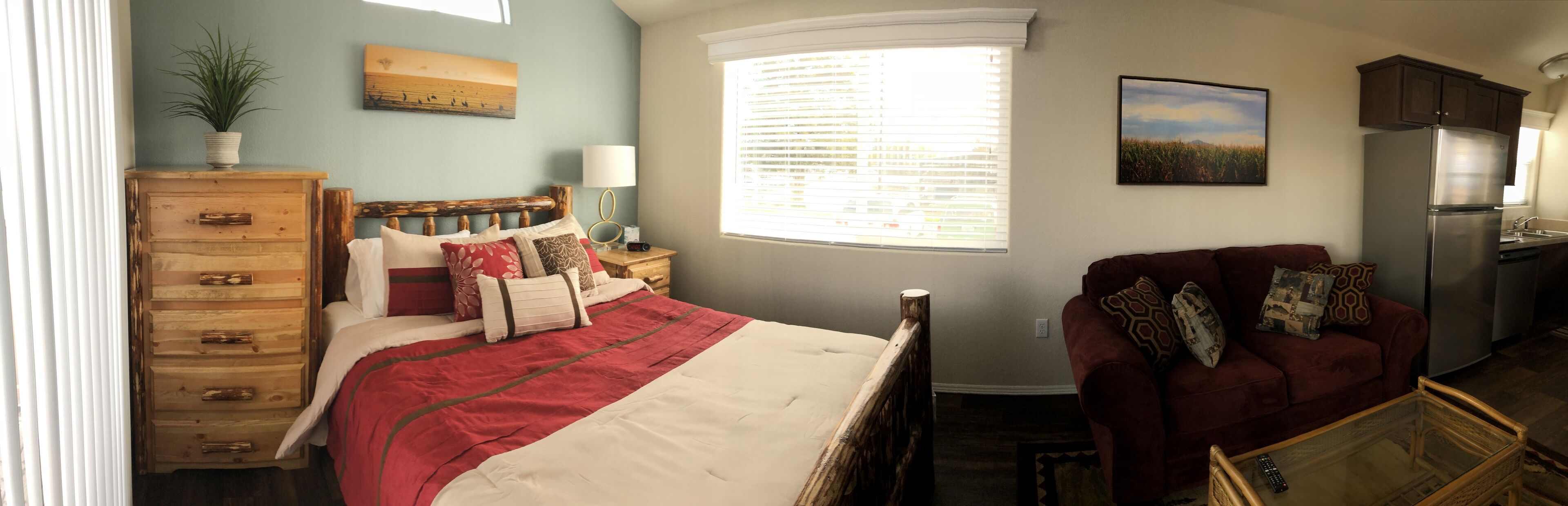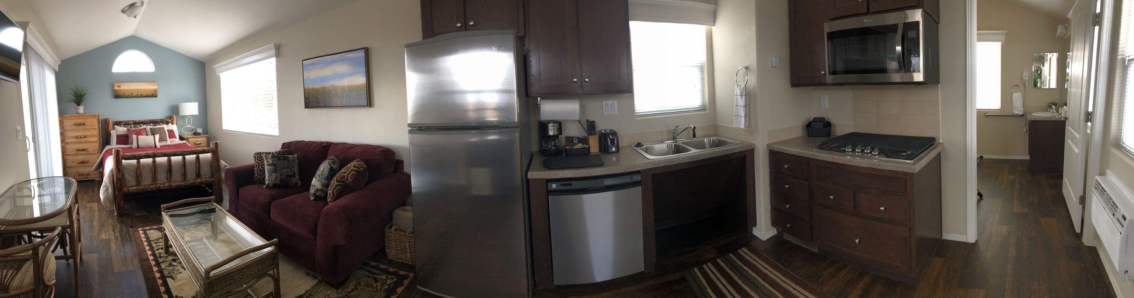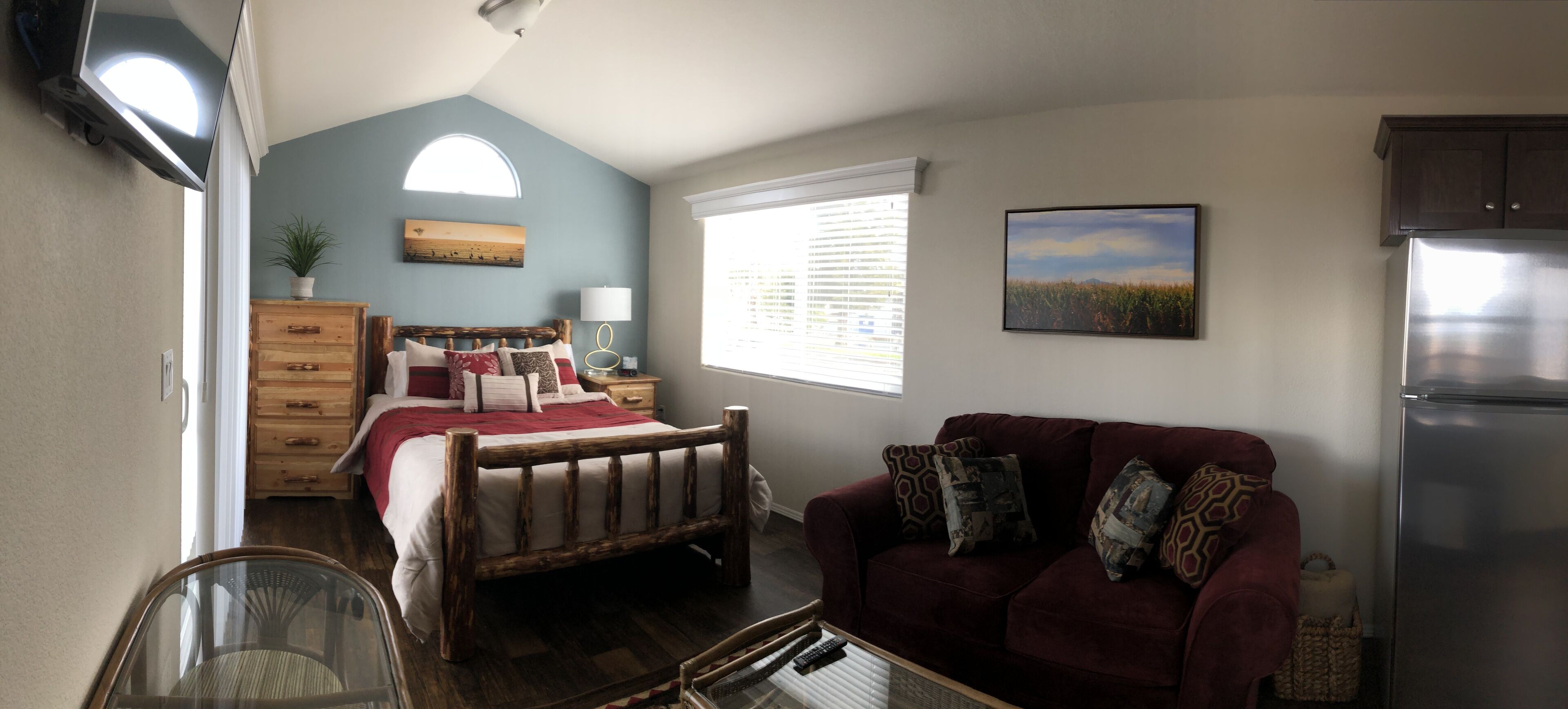 Deluxe "Sunset" Vacation rental in private marina on the California Delta Our one of a kind Bungalows are located on the California Delta, just off the San Joaquin River. Whether you are traveling through Stockton to your next destination, on a business trip for a week, or out to enjoy to wonders the Delta has to offer our "wheelchair-friendly" Bungalow is perfectly equipped to accommodate all of your needs. Enjoy what the Delta has to offer by bringing your ski boat, access to a guest dock is within walking distance. Or, enjoy the beautiful, tranquil, sunset views of Mt. Diablo on the 600+ sq. foot deck which cantilevers over the levee. Our Four Deluxe Bungalows are located at Village West Marina, one of the largest covered marinas west of the Mississippi. We are conveniently located 1 mile from Highway 5 and a market center which incorporates a grocery store, Ace Hardware, and a few other stores you might find useful. There are 2 restaurants located at Village West Marina, Bob’s at the Marina, and Garlic Brothers. Enjoy all the marina has to offer on your early stroll to Bob’s for breakfast or your nightly stroll to Garlic Brothers for dinner or live music Thursday-Saturday. Check with the restaurants for daily and nightly specials.Our "wheelchair-friendly" Sunset Bungalow is equipped with a full kitchen, full refrigerator, queen size bed and large bathroom making it our most accessible Bungalow. This Bungalow now includes a pull out bed for those looking to sleep up to 4. Forgot your towels, no problem! Our Bungalow is equipped with all the linens necessary for your stay. There is a shared private laundry room available near the Bungalow, please be mindful that some call the marina their home and the facility may not always be available. Take full advantage of the stove top, oven, or bbq located on the deck, all kitchen utensils are provided. Don’t forget to bring your fishing pole! Fishing from the marina levees is not permitted, however, fishing from the attached deck of your Bungalow is permitted. Additionally, our new Cast-A-way fishing deck is located right on the water, just steps away from the Bungalows. Bring a couple fishing rods, lures, and bait to fish for catfish, bass, striper and carp. If you run out of bait, you can pick some up at the Village West Marina “Stop and Shop” conveniently located at the Village West Marina Fuel Dock and open 7 days a week from 8:30 a.m. - 4:30 p.m. Please do not walk down the levee bank as it is rocky and unsafe and is not permitted. The area west of your Bungalow is not a 5 mile an hour area, so please be careful throwing lines, and do not leave lines unattended as it will make for unsafe boating conditions. Also for your safety, there is no swimming allowed anywhere in the marina. There is one accessible designated parking space for your Bungalow. Additional parking is available south of your Bungalow between the L dock and M dock. Unauthorized parking will be ticketed by on-site security. There is plenty of parking, just note that in the summer months the parking fills up a bit more.If you have a watercraft, you can bring it too!We will reserve a slip close to your Bungalow and a temporary trailer space for your trailer. Just click on "parking fee" to add your watercraft reservation. The fee is $25 per night for your boat or boat and trailer. Launching is free. We will need a copy of your current boat insurance and registration before arriving.Most importantly, remember this Bungalow is located on a private facility, so please be respectful to those around you. This Bungalow is packed full of beautiful views and wildlife, so please do not disturb others that are enjoying these same things. Also, so our next guest receive the same experience, please maintain a clean Bungalow as you found it. We look forward to having you as our guest, and to share this hidden gem with you!