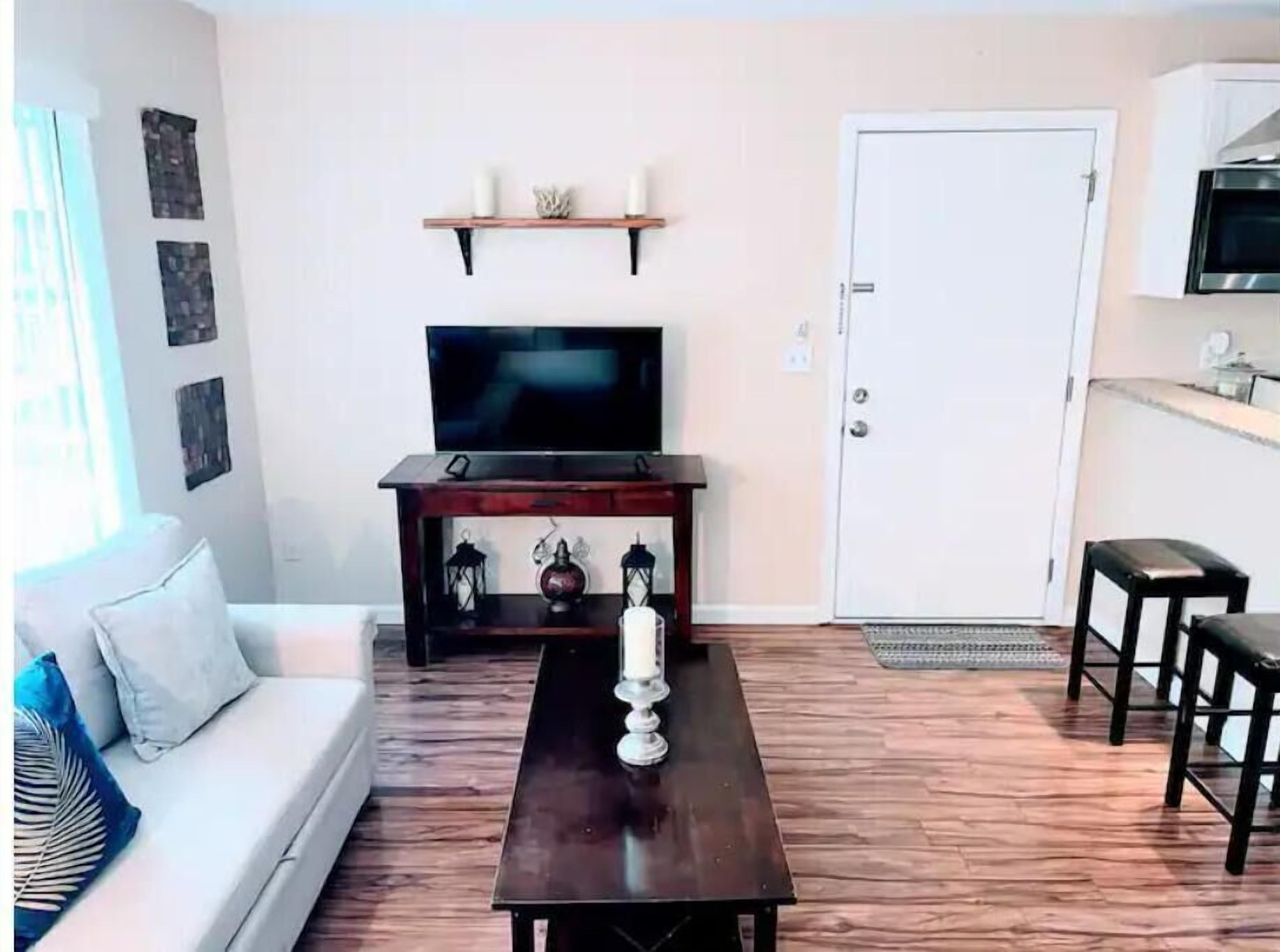 Entire Apartment Gated Community You get the entire apartment that comes fully furnished and stocked in a quiet gated community.Beautifully decorated and private to make you feel cozy and peaceful. You get assigned parking and access to the pool, community greenbelt areas and laundry room which is just downstairs. The Livingroom has a pullout bed for guests and extra seating. The kitchen has all s...