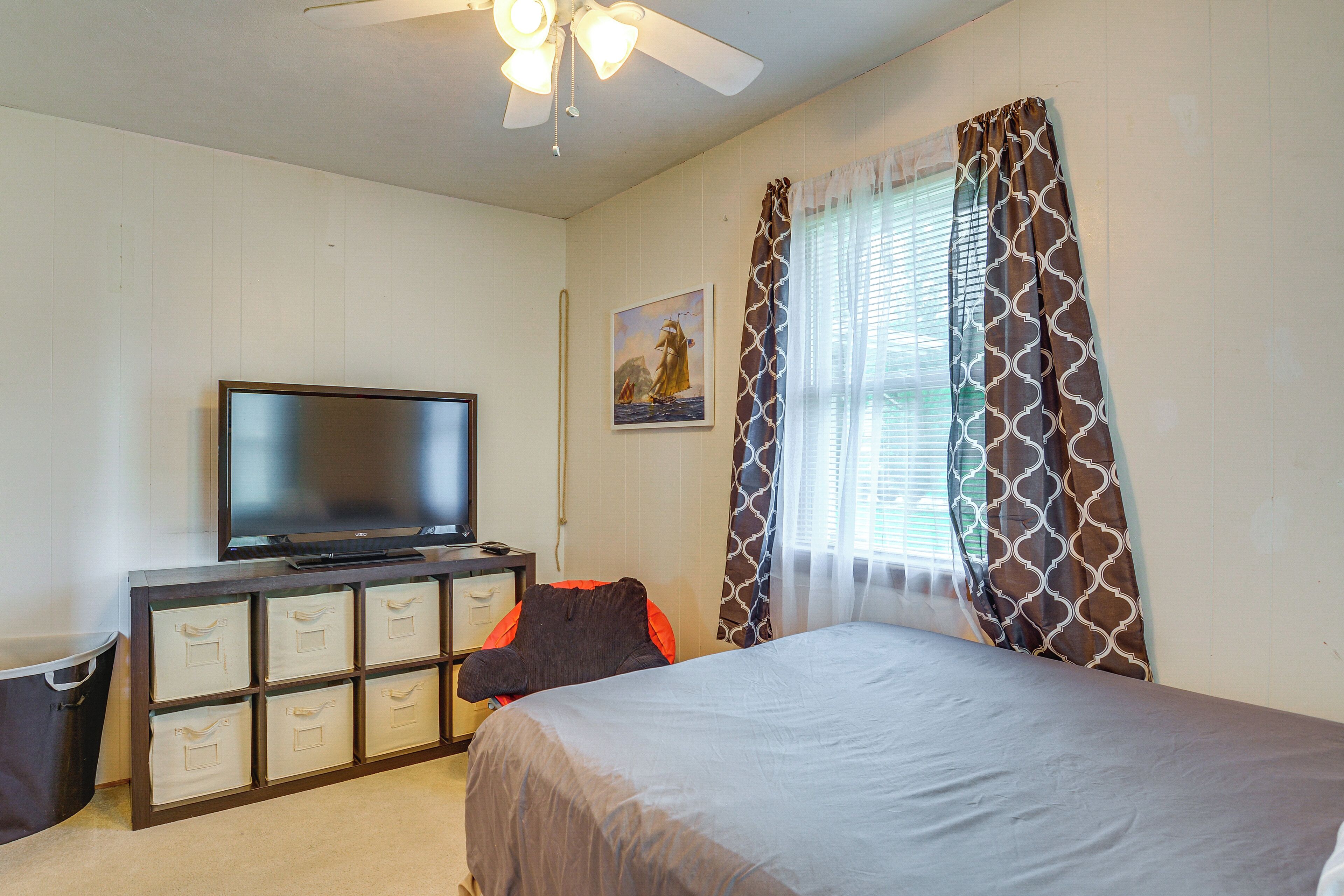 Pet-Friendly Stockton Home Near City Park! Enjoy a memorable stay in the heart of Missouri at this 3-bedroom, 2-bathroom vacation rental. Nestled in the welcoming community of Stockton, this lowkey home promises all the essentials and a great location. The property also features a gas grill for group barbecues and a foosball table to entertain guests of all ages. Just behind the home is a family-friendly park stacked with sports courts and green spaces fit for a picnic. Pack your tote and spend a day at Stockton Lake for more fun!-- THE PROPERTY --Furnished Deck | Walk to Hammons Black Walnut Emporium | ~1 Mi to Stockton Lake Beach & MarinaBedroom 1: Queen Bed | Bedroom 2: Queen Bed | Bedroom 3: Full Bed | Additional Sleeping: Pack 'n PlayMAIN FEATURES: Foosball table, front porch w/ seating, gas grill, unfenced backyard, Smart TV, beach chairs, dining tableKITCHEN: Dishwasher, refrigerator, stove/oven, toaster, microwave, drip coffee maker w/ complimentary coffee, cooking basics, trash bags & paper towels, dishware & flatwareGENERAL: Free WiFi, washer & dryer, iron/board, central A/C & heating, ceiling fans, complimentary toiletries, linens/towels, hair dryer, hangers, keyless entryFAQ: Pet fee (paid pre-trip), quiet hours (after 10:00 PM), homeowner's relative next door (separate unit)ACCESSIBILITY: Single-story home, 5 steps to enterPARKING: Driveway (2 vehicles), trailer parking allowed on-site, no street parking-- THE LOCATION --LOCAL ATTRACTIONS: Hammons Black Walnut Emporium (walking distance), Stockton Lake Beach & Marina (~1 mile), First Beach (2 miles), Stockton State Park (8 miles), Hopewell Bridge Winery (10 miles)TRAILS: Crabtree Cove Trailhead (3 miles), Orleans Trail D Loop (5 miles), Umber Ridge Trailhead (9 miles), Sortor's Bluff Trailhead North Loop (11 miles)GOLF: Bolivar Golf Course (24 miles), Lockwood Municipal Golf Course (28 miles), City Of Nevada Golf Course (35 miles)AIRPORT: Springfield-Branson National Airport (51 miles)-- REST EASY WITH US --Evolve makes it easy to find and book properties you’ll never want to leave. You can relax knowing that our properties will always be ready for you and that we’ll answer the phone 24/7. Even better, if anything is off about your stay, we’ll make it right. You can count on our homes and our people to make you feel welcome — because we know what vacation means to you.-- POLICIES --- No smoking - Pet friendly w/ $50 fee (+ fees & taxes, max 2 pets)- No events, parties, or large gatherings - Must be at least 21 years old to book - Additional fees and taxes may apply - Photo ID may be required upon check-in- NOTE: This single-story home requires 5 steps to enter- NOTE: Please observe quiet hours after 10:00 PM- NOTE: Please note that the homeowner's relative lives next door, in a completely separate unit, and may present during your stay