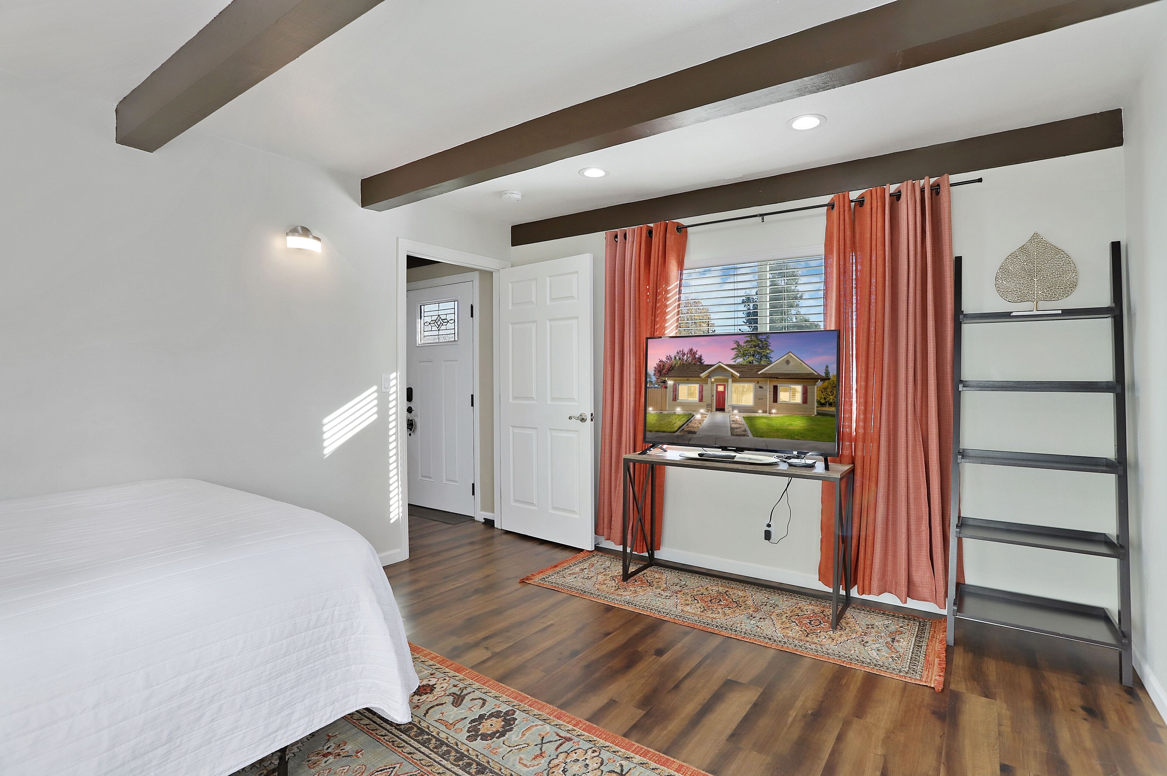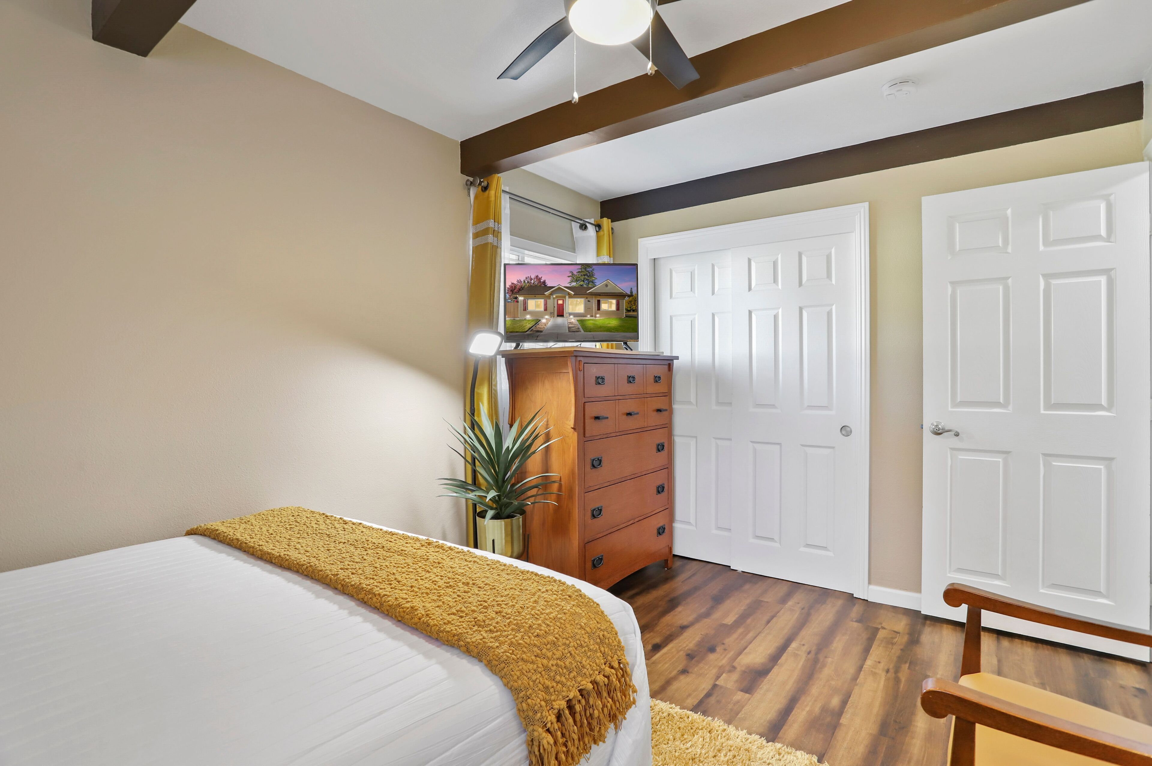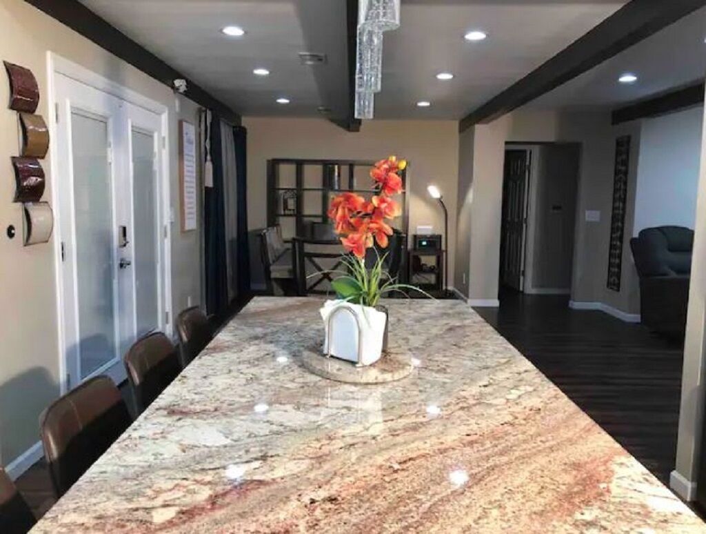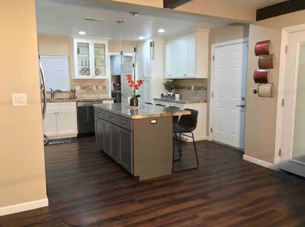 Nana's Perfect Choice, Your 3+2 Home Away From Home - North Stockton This beautifully remodeled, single-story 3+2 spacious home is a short distance from restaurants & shopping centers - Lincoln Center, Weberstown & Sherwood Malls. It's close to Stockton's Delta Waterways, wineries, with easy access to HWY 5 & 99 freeways, and a perfect choice for your short or long-term housing needs. The property features stunning ceilings with exposed wood beams & hardwood floors. It also features a modern open plan with a fully equipped kitchen with a breakfast bar and spacious granite countertops perfect for cooking & meal prepping. It also has a full-sized fridge, stovetop, microwave, dishwasher, and all the stainless steel appliances, cooking essentials, and utensils you might need to prepare delicious home-cooked meals.All bedrooms are fully furnished with comfortable beds, and there is plenty of storage space for all your clothes and belongings. The master bathroom is ADA accessible with heated floors and a bidet, while the other has a spacious stand-up shower. Everything in this home has been planned and accommodated with your comfort and well-being in mind.The private enclosed backyard offers manicured grounds and a patio area that allows for outdoor dining and relaxation.If you love outdoor spaces, you've come to the right place! Here, you will have complete access to a large private, fully furnished patio with a beautiful landscape; it is the perfect place for hanging out with your friends and family or simply relaxing and unwinding your mind after a hard day at work while breathing the fresh air.Do not think twice; book this gem today before it is too late!