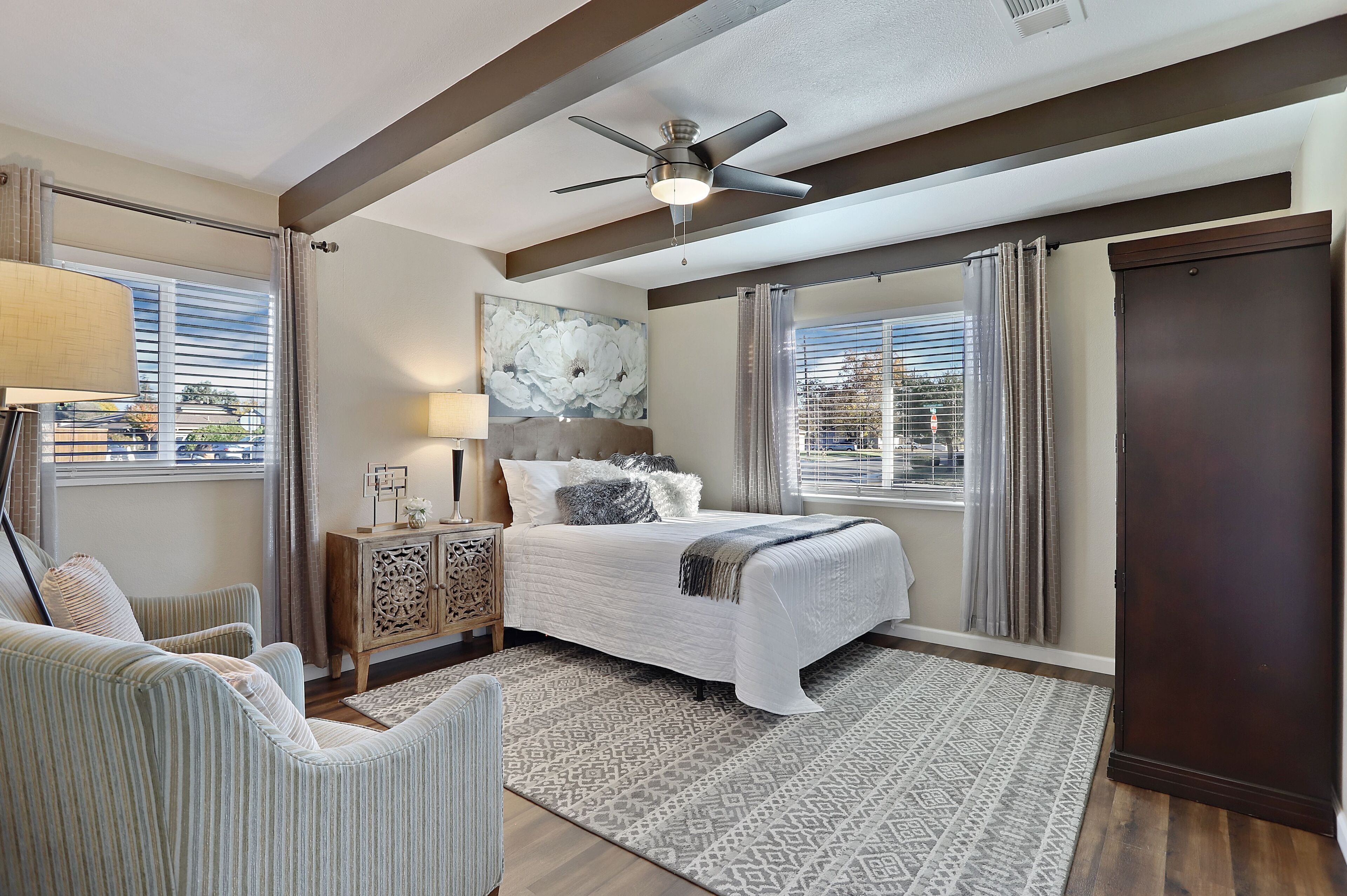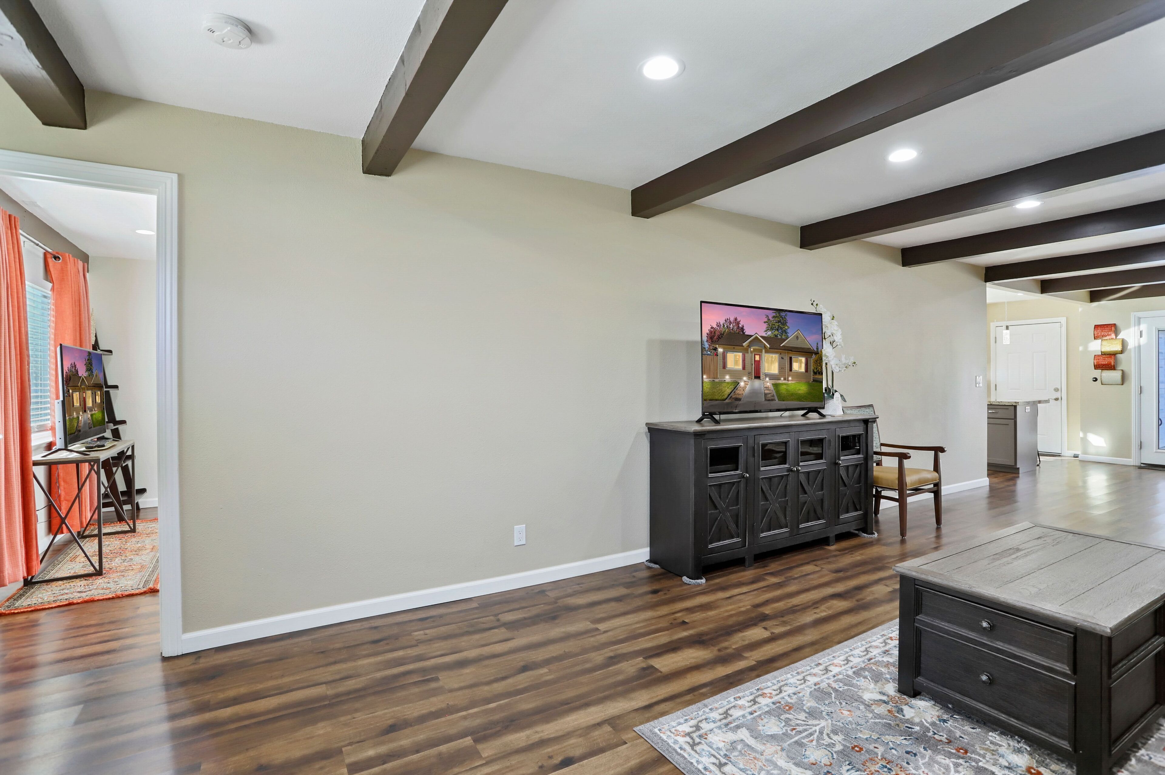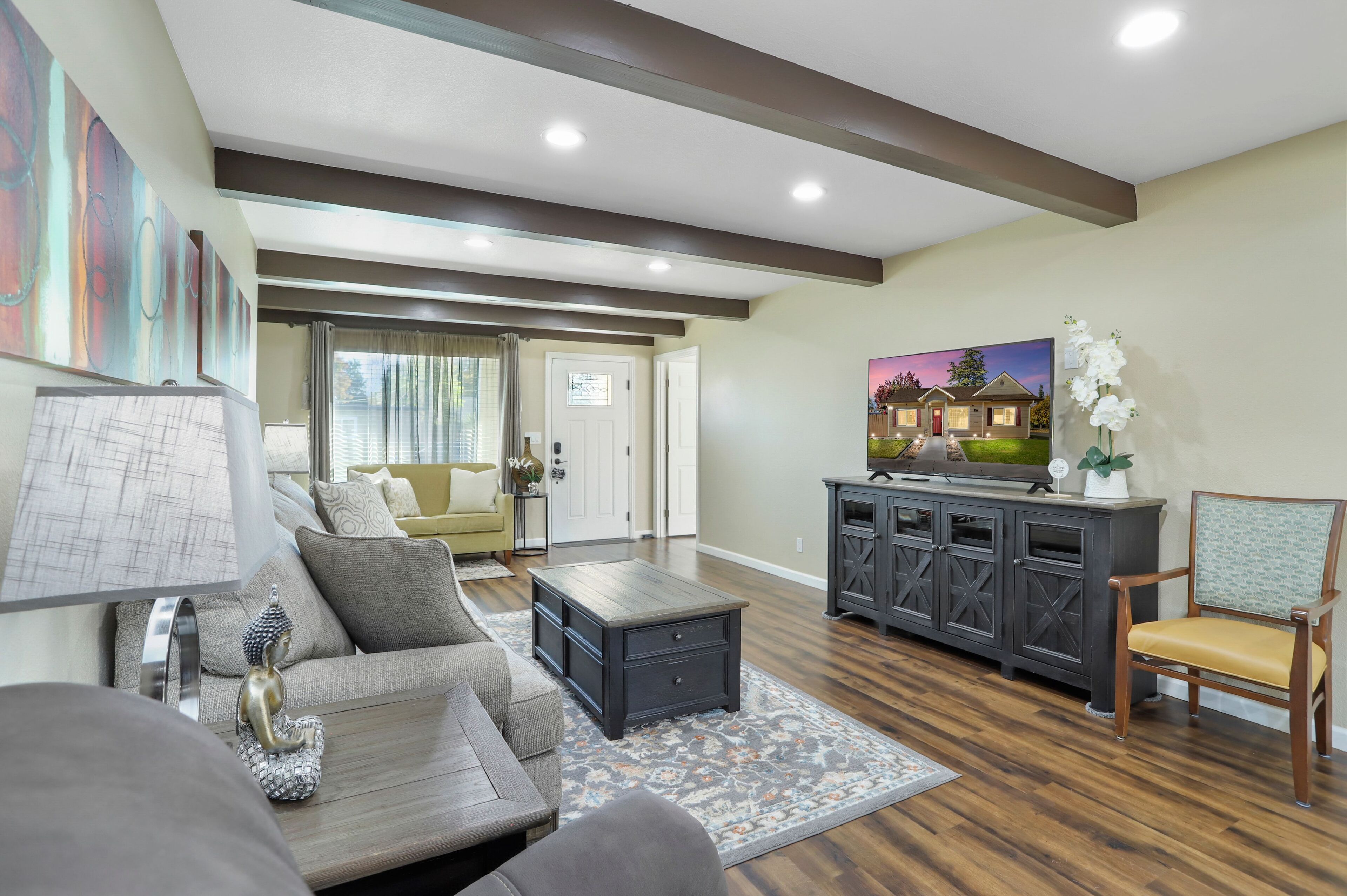 Nana's Perfect Choice, Your 3+2 Home Away From Home - North Stockton This beautifully remodeled, single-story 3+2 spacious home is a short distance from restaurants & shopping centers - Lincoln Center, Weberstown & Sherwood Malls. It's close to Stockton's Delta Waterways, wineries, with easy access to HWY 5 & 99 freeways, and a perfect choice for your short or long-term housing needs. The property features stunning ceilings with exposed wood beams & hardwood floors. It also features a modern open plan with a fully equipped kitchen with a breakfast bar and spacious granite countertops perfect for cooking & meal prepping. It also has a full-sized fridge, stovetop, microwave, dishwasher, and all the stainless steel appliances, cooking essentials, and utensils you might need to prepare delicious home-cooked meals.All bedrooms are fully furnished with comfortable beds, and there is plenty of storage space for all your clothes and belongings. The master bathroom is ADA accessible with heated floors and a bidet, while the other has a spacious stand-up shower. Everything in this home has been planned and accommodated with your comfort and well-being in mind.The private enclosed backyard offers manicured grounds and a patio area that allows for outdoor dining and relaxation.If you love outdoor spaces, you've come to the right place! Here, you will have complete access to a large private, fully furnished patio with a beautiful landscape; it is the perfect place for hanging out with your friends and family or simply relaxing and unwinding your mind after a hard day at work while breathing the fresh air.Do not think twice; book this gem today before it is too late!