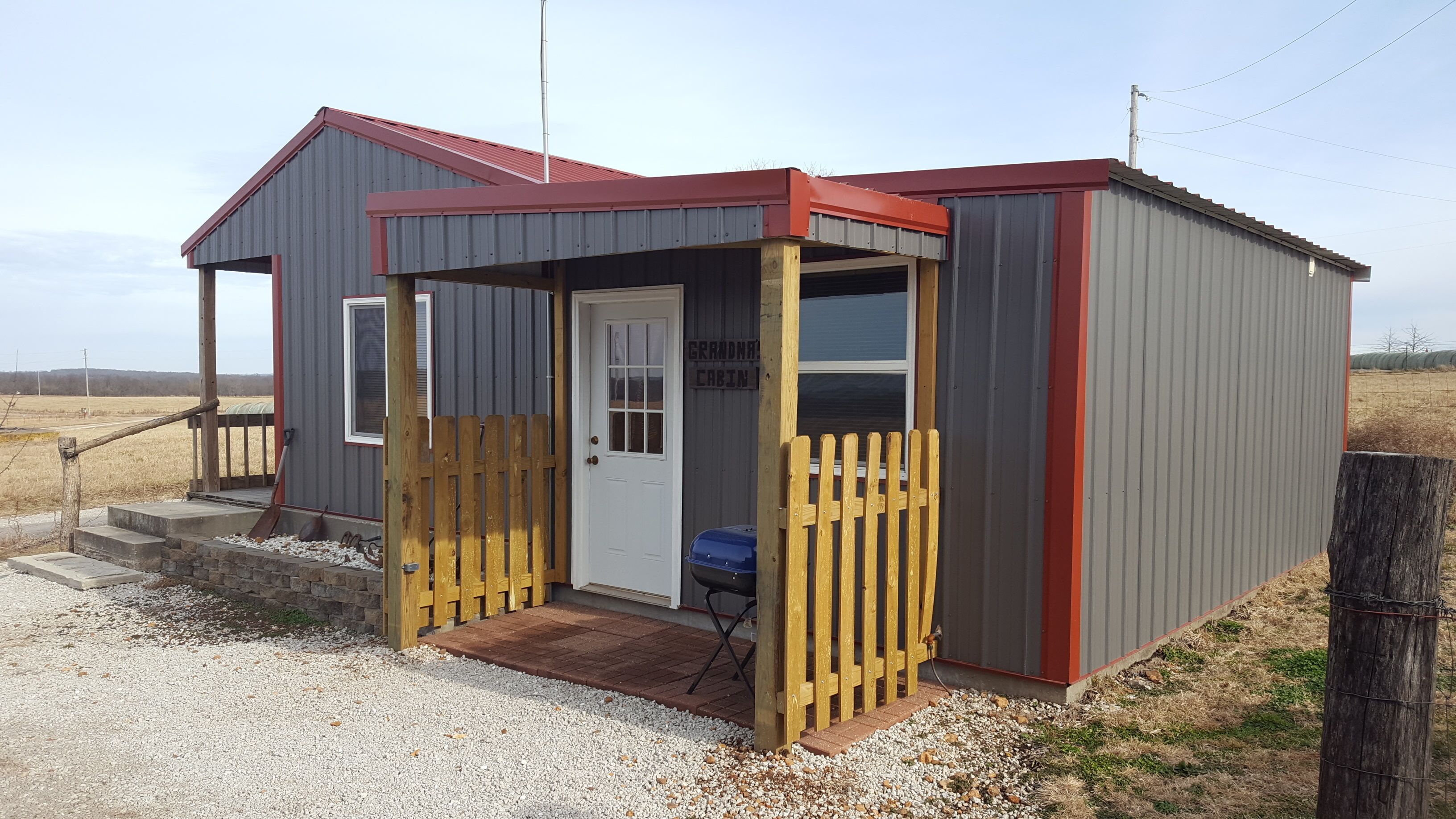 Grandma's Cabin at Stockton Lake, Stockton Missouri. Quiet, country cabin. Peaceful and a beautiful view of the landscape. Cozy. Queen bed and a single bed in the bedroom with a full size couch. Dining table, hide-a-bed with T.V. Full size kitchen and bathroom with walk-in shower. Close to some of the best fishing in the state at Stockton Lake and if you just want to fish in a pond you can enjoy that on our nearby farm. Friendly goats and a donkey called Nutmeg finish the country atmosphere.