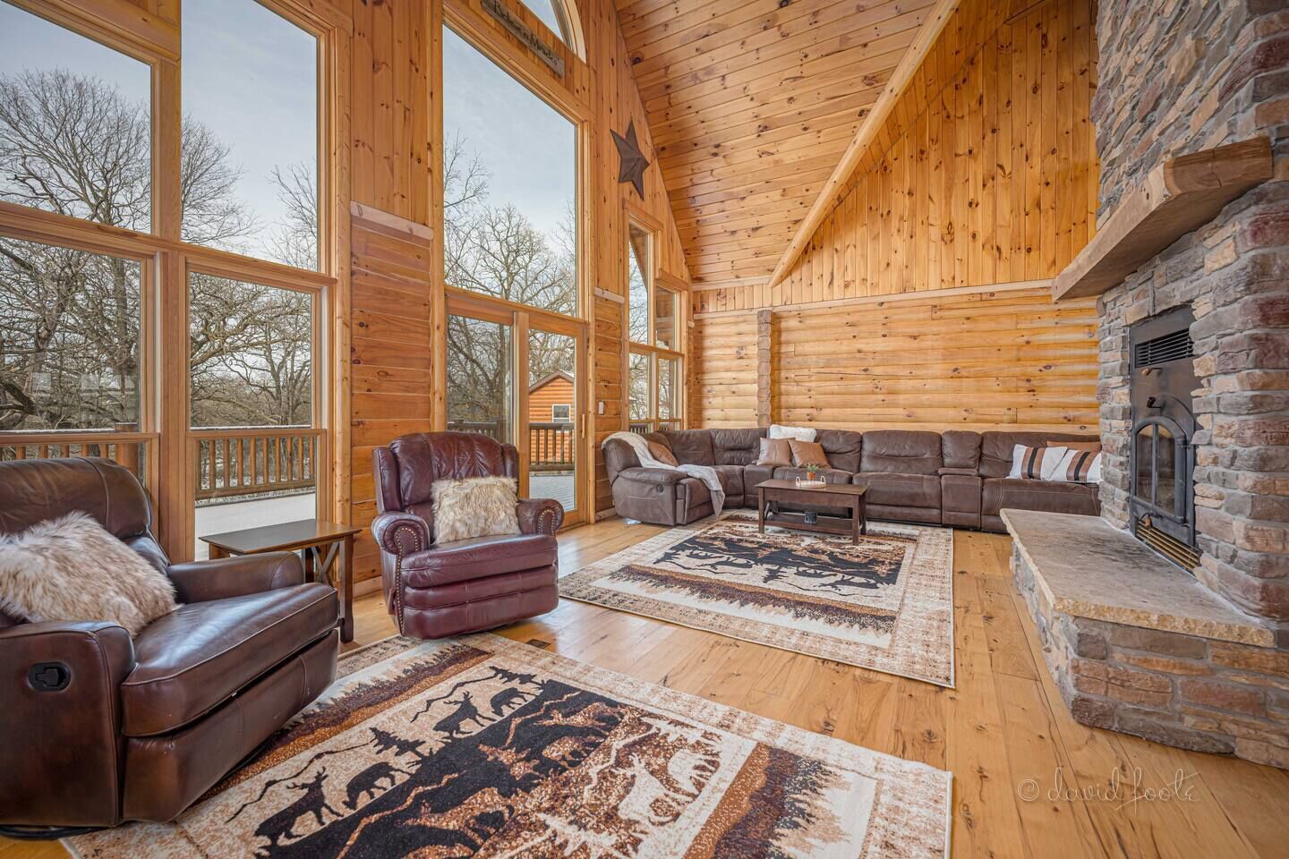 Space for everyone! Hot Tub | King beds | Pool Perfect for the multi-family vacation or retreat!Wonder Bear Lodge has 7 bdrms, 5 baths, HOT TUB, gourmet kitchen, game rooms, and a majestic living room with a 2 story fireplace. At 6,000+ sq ft, there is abundant room for all!Private pool open Memorial Day through Sept. Access to the heated pool at nearby Apple Canyon Lake (10 min) is included, available determined by Apple Canyon Lake.Nearby: historic Galena, Chestnut Mtn skiing, Apple Canyon St Park, wineries/brewery, grocery, and dining.Welcome to Wonder Bear Lodge!KEY FEATURES:☀ 6 King beds☀ 7 bedrooms☀ 5 bathrooms ☀ HOT TUB☀ Fast wifi☀ Jet tub in master bath☀ Fully equipped kitchen + dining room for 16 people☀ Massive living room w/ wood-burning fireplace☀ 3 Flat-screen TVs w/ Roku entertainment systems ☀ 2 Game rooms (upstairs and downstairs) with pool table, foosball, and air hockey☀ Lots of parking!☀ Outdoor fire pit☀ Access to Apple Canyon Lake's beach, pool, and amenities☀ Private 42x21 ft pool - it's big. Really big. * The Living Room *This room is gorgeous, and the central hub of the house. Sit around the enormous wood burning fireplace, ample seating, and direct access to the kitchen and the back deck.* The Kitchen * This kitchen is for hosting! There are enough plates, glasses, silverware, and cooking utensils for your party of 16. -Coffee bar-Keurig Duo-Instapot & crockpot-Teas & teapot -Second fridge-Settings (and seats) for 16-Spices and basics -Baking sheets-Pots & pans-Plastic options for outside and kids* Sleeping Areas *This lodge has 7 spacious bedrooms! King mattresses in six rooms and blackout curtains make every room a great place to sleep.The primary suite is a stunning private room on the main floor with a walk-in closet, sitting area with fireplace, walkout to the porch, and a two-person jet tub. It’s warm and cozy and romantic, with beautiful views into the backyard.The second level has four bedrooms, each with a comfy king size bed. Two have additional loft beds. The Castle Room also contains trundle beds and is decorated for the kids. Two of the bedrooms on the second floor share a full bathroom (and laundry space), a great layout if you’re sharing this lodge with multiple family units.Both bedrooms in the walkout basement have sitting areas if you need some alone space, and one of the bedrooms includes a desk area for study or work.All bedrooms are outfitted with comfortable mattresses and linens to ensure you have an enjoyable stay. * Game rooms: time for fun! *This home has two separate game rooms. The large den downstairs has a pool table, large screen Roku TV, and foosball table. Upstairs, there is an air hockey table and a smaller Roku TV area. This room also has a study nook, and well-equipped workout area.Guests can self-check in with an electronic keypad. Guests must be able to comfortably navigate stairs, as there are four front steps up to the front door (plus stairs to the upper and lower levels).* Apple Canyon Lake Amenities Are Included - Woohoo! * While staying with us you will have access to Apple Canyon Lake’s marina, beach, and pool. 16 guest passes and a parking pass are provided.* Other buildings on the property *Onsite is an 1850s schoolhouse and a large storage unit with long term storage rentals. Sorry, no access to either of these buildings for your safety. Please stay off the schoolhouse porch, and don’t try to enter - this building needs some work! Currently, no access to the garage or the treehouse; the treehouse also needs a few modifications before it becomes kid safe. Welcome to the country where the city is far and fun is near! The neighborhood is farm and ranches with a mile or more between neighbors. There's no light pollution and access to town is just 5 miles away!