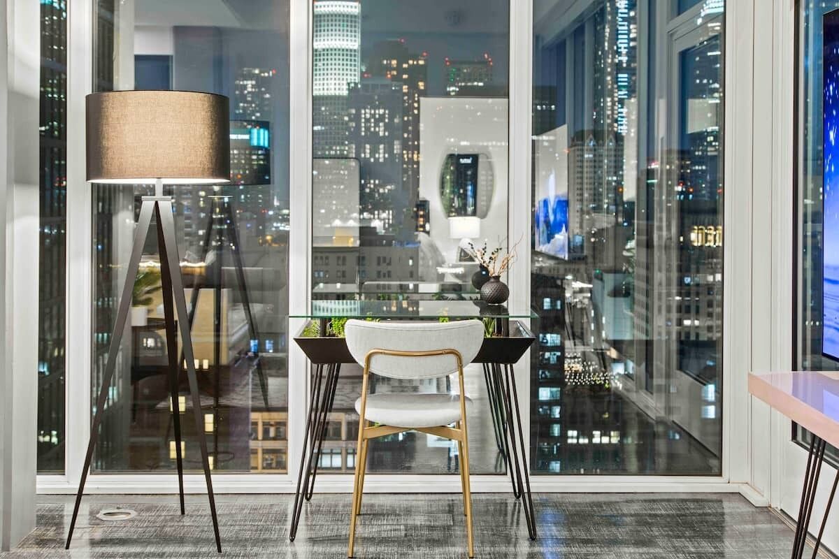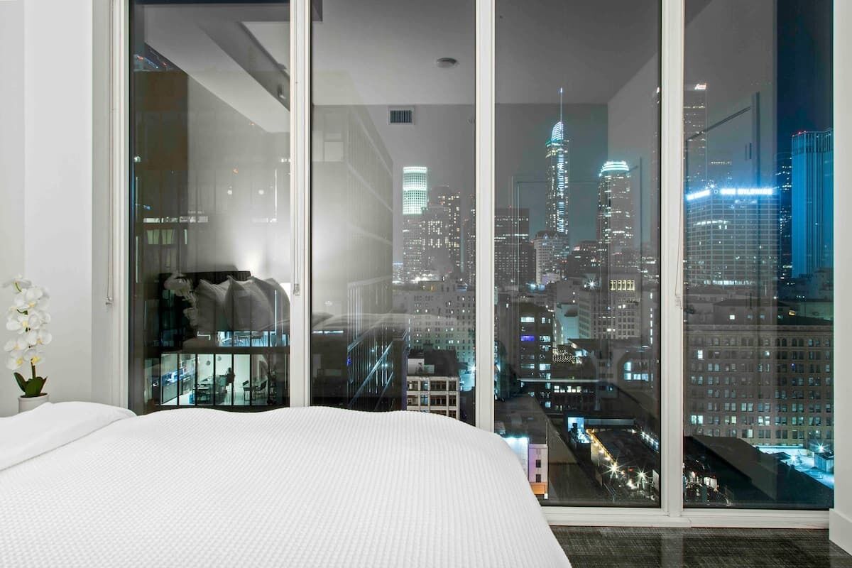 Downtown LA - City View High-Rise Enjoy a stylish experience at this centrally-located place.Be My Guest Homestays is your one-stop shop for luxury high-rise apartments, and penthouses in Los Angeles and other parts of Southern California. We have a wide selection of homes, so whether you are visiting for a weekend, a month, 3 months or 12 months, we can help you! This spacious luxury apartment is located in Downtown Los Angeles where modern meets historic. This charming neighborhood is rich with history, diverse culture and hidden treasures making settling in easier than ever. All of our luxury suites feature fully-equipped gourmet kitchens, private balconies and luxurious BeautyRest Black® mattresses. While we have you, get in a great workout at our state of the art fitness center, swim a few laps around the pools, or shoot some cool content on one of our amazing rooftops; don’t let these high-end amenities go to waste. In addition to the features mentioned above, Level suites offer:Fully-equipped gourmet kitchenPrivate balconyIn-suite laundry Air conditioning High-speed WiFi 4K TVDeep soaking tubs Easy Guest accessAll of our guests have access to the following on-site amenities:Outdoor heated pool & hot tub Poolside luxury loungers Secured self-parking State-of-the-art fitness center Lounges with game rooms Outdoor dog run24/7 securityExact address and unit will be shared the day before arrival
