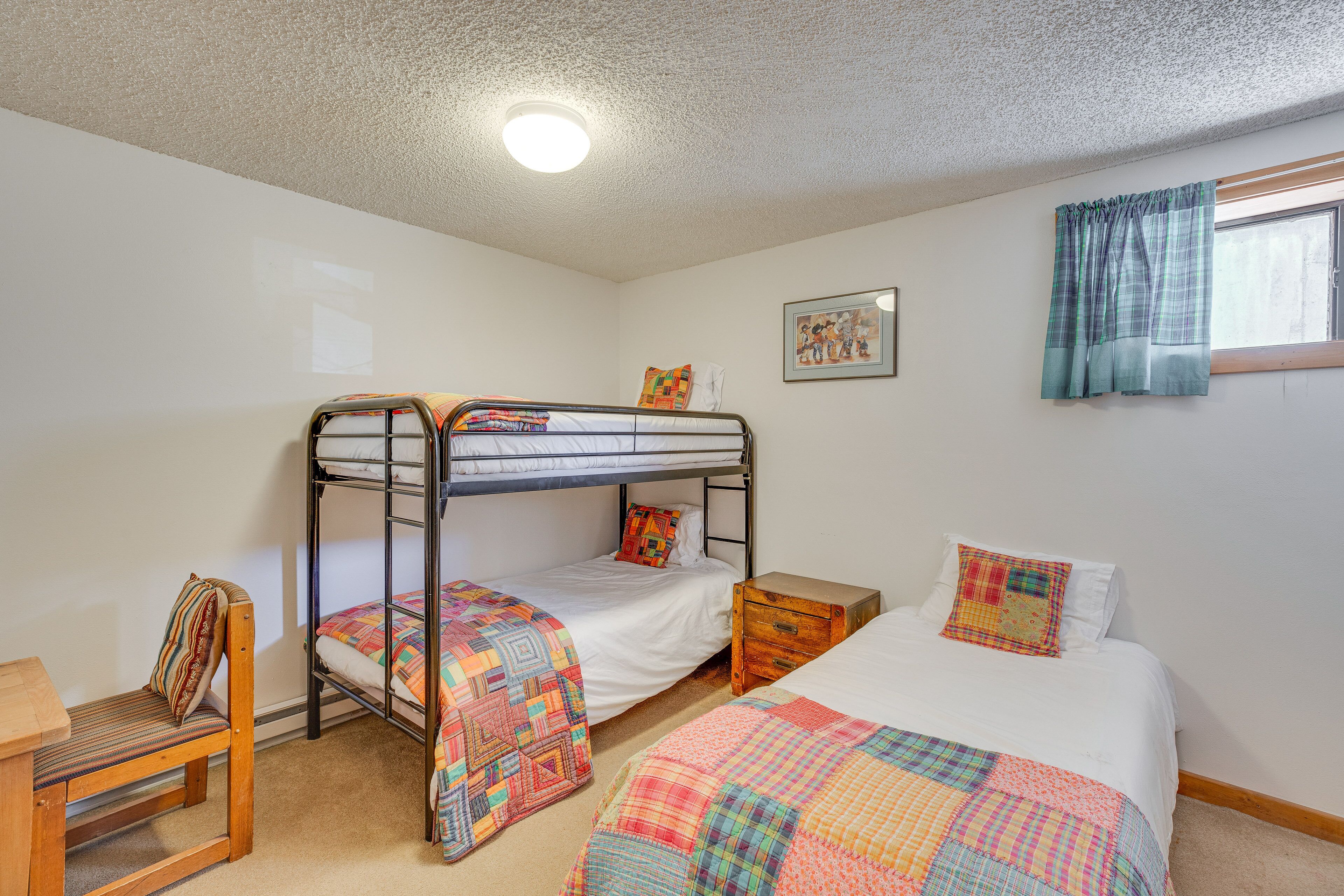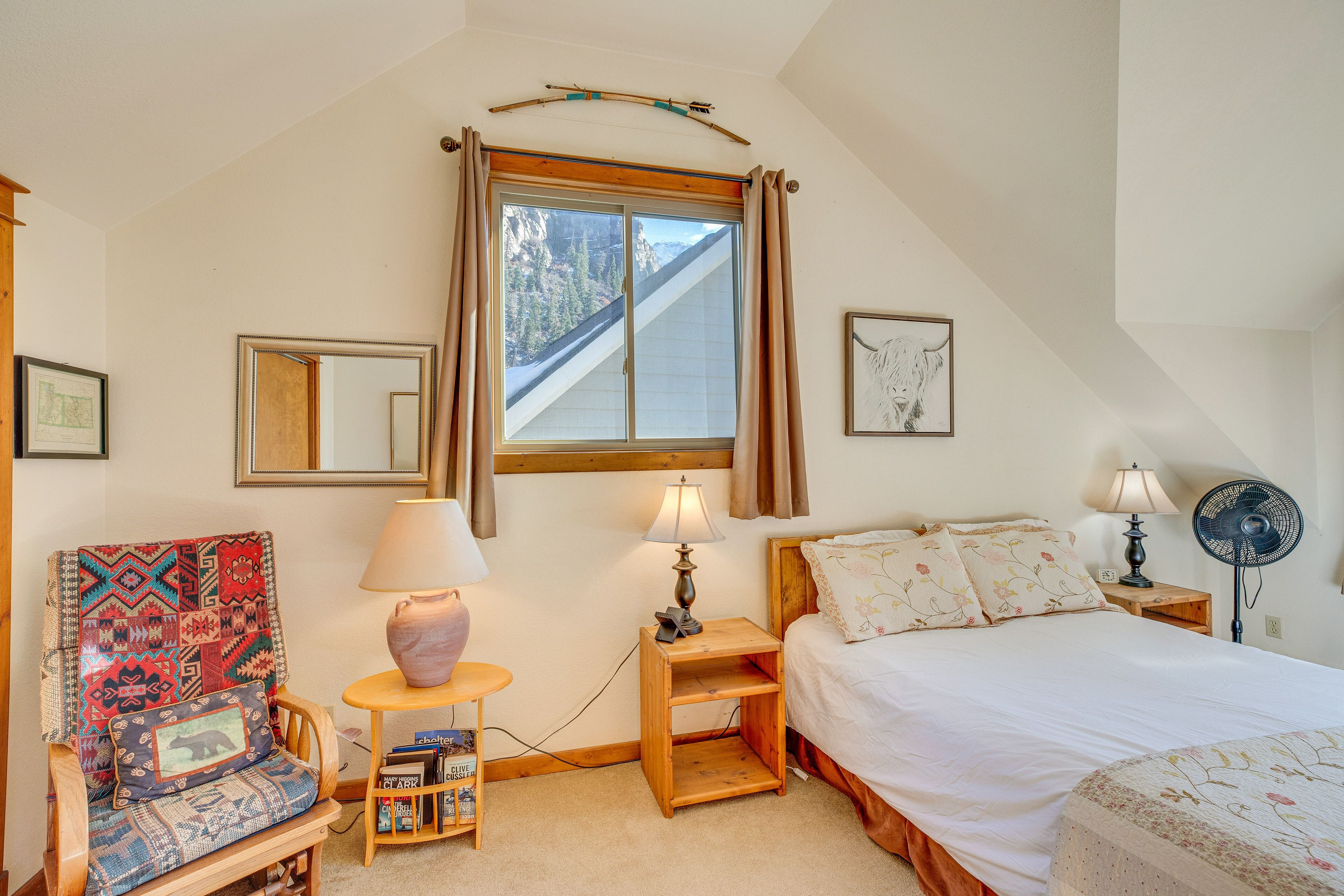 Spacious Ouray Townhome - Walk to Hot Springs! Discover Ouray's charm in this inviting 4-bedroom, 2.5-bath vacation rental! Situated within walking distance from Main Street and the rejuvenating hot springs, this townhome offers the ideal mix of tranquility and adventure. After exploring the area, unwind by the cozy fireplace, enjoy mountain views from the balcony, or grill up a feast on the BBQ. It's your perfect base for an unforgettable Ouray adventure, offering all the comforts of home and then some!-- THE PROPERTY --Ouray STR License No. STR 2022-1059 | Walk to Ouray Hot Springs | Mountain ViewsBedroom 1: Queen Bed | Bedroom 2: Queen Bed | Bedroom 3: Twin Bunk Bed, Twin Bed | Bedroom 4: 2 Twin Beds | Living Room: Queen Sleeper SofaHOME HIGHLIGHTS: Flat-screen TV, fireplace, private balcony, fire pit, gas grill, laptop-friendly workspaceKITCHEN: Fridge, stove, dishwasher, drip coffee maker, microwave, cooking basics, toaster, dishware/flatware, trash bags/paper towelsGENERAL: Free WiFi, keyless entry, baseboard heat, complimentary toiletries, linens/towels, hair dryer, iron/boardFAQ: No A/C, external security camera (facing out), quiet hours (11:00 PM-7:00 AM)ACCESSIBILITY: Multi-level townhome, stairs required to enter, bedroom & bathroom on 1st floorPARKING: Open parking lot (first-come, first-served)), free street parking (first-come, first-served)-- THE LOCATION --OURAY ATTRACTIONS: Ouray Hot Springs Pool (across the street), Ouray Historical District (0.7 miles), Ouray Alchemist Museum & Penthouse (1 mile)MAIN STREET (0.5 miles): Local shops & boutiques, restaurants, art galleries, breweries, coffee shopsTHE GREAT OUTDOORS: Perimeter Trailed (0.3 miles), Cascade Falls Park (0.8 miles), Ouray Ice Park (2 miles), Box Canyon Park (2 miles), Baby Bathtubs Trail (2 miles), San Juan Mountains (29 miles)AIRPORT: Montrose Regional Airport (38 miles), Telluride Regional Airport (49 miles)-- REST EASY WITH US --Evolve makes it easy to find and book properties you’ll never want to leave. You can relax knowing that our properties will always be ready for you and that we’ll answer the phone 24/7. Even better, if anything is off about your stay, we’ll make it right. You can count on our homes and our people to make you feel welcome--because we know what vacation means to you.-- POLICIES --- No smoking- No pets allowed- No events, parties, or large gatherings- Must be at least 21 years old to book- Additional fees and taxes may apply- Photo ID may be required upon check-in- NOTE: This multi-level townhome requires stairs to enter, and interior stairs are required to access the 2nd-floor bedrooms- NOTE: Your safety matters. This property features an external Ring camera located on the front entry facing the front porch. The camera is outward facing and does not look into interior spaces. The camera records video and sound when activated by motion- NOTE: The property does not have air conditioning- NOTE: Please observe the quiet hours from 11:00 PM to 7:00 AM