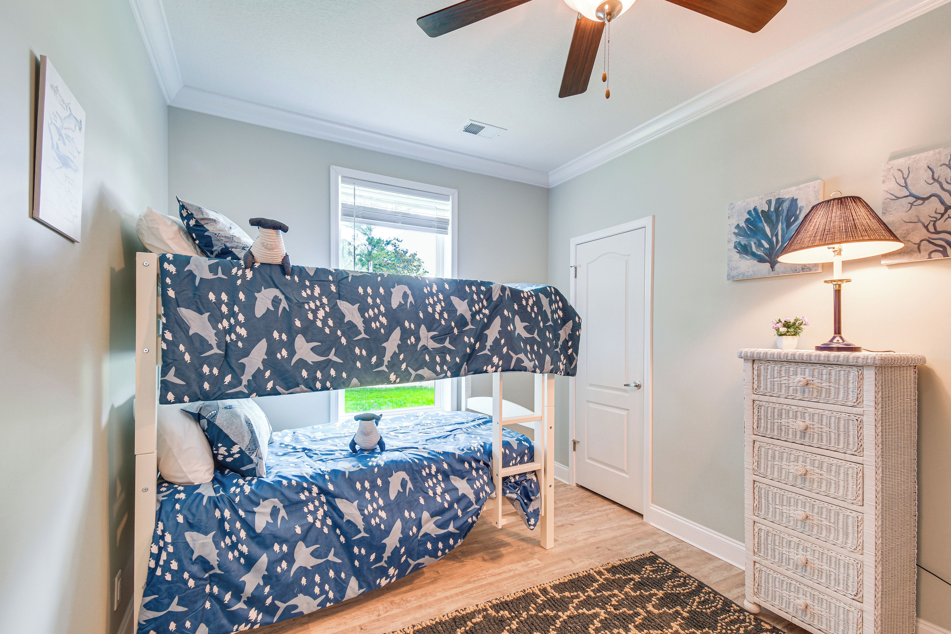 Waterfront Wolf Bay Home w/ Private Boathouse! Enjoy the quiet side of Alabama's Gulf Coast at this waterfront home in Elberta! This 3-bedroom, 3-bath vacation rental offers access to the scenic waters of Wolf Bay without the crowds — launch the kayaks from the dock or sit on the back deck while you spot wildlife in the distance. If you're up for a family outing, check out the quaint shops in downtown OWA or the sandy beaches at Gulf State Park! This home's cozy coastal style and brand-new furnishings promise relaxation when you return.-- THE PROPERTY --1-Acre Property | Paddleboards & Kayaks Provided | Family FriendlyBedroom 1: King Bed | Bedroom 2: Queen Bed | Bedroom : 2 Twin Bunk Beds | Additional Sleeping: Pack 'n PlayINDOOR LIVING: Flat-screen TVs, dining table, washer & dryer, ceiling fansOUTDOOR LIVING: Deck, outdoor seating, backyard, private dock & boathouseKITCHEN: Dishwasher, refrigerator, stove/oven, microwave, drip coffee maker, cooking basics, dishware & flatware, trash bags & paper towels, high chairGENERAL: Free WiFi, complimentary toiletries, hair dryer, towels & linens, iron & board, central heating & A/C, keyless entryFAQ: 2 external security cameras (facing out)ACCESSIBILITY: Single-story home, stairs to accessPARKING: Driveway (4 vehicles), boat/trailer parking on-site-- THE LOCATION --ON THE WATER: Orange Beach Waterfront Park (13 miles), Gulf State Park (13 miles), Gulf Shores Public Beach (14 miles)THINGS TO DO: Downtown OWA (4 miles), Tropic Falls at OWA (4 miles), Bamahenge (8 miles), Alabama Gulf Coast Zoo (10 miles), The Wharf (10 miles)MORE OUTDOORS: Wolf Creek Park (2 miles), Glenlakes Golf Club (3 miles), Graham Creek Nature Preserve (5 miles), The Backcountry Trail (14 miles)AIRPORT: Pensacola International Airport (31 miles)-- REST EASY WITH US --Evolve makes it easy to find and book properties you’ll never want to leave. You can relax knowing that our properties will always be ready for you and that we’ll answer the phone 24/7. Even better, if anything is off about your stay, we’ll make it right. You can count on our homes and our people to make you feel welcome — because we know what vacation means to you.-- POLICIES --- No smoking- No pets allowed- No events, parties, or large gatherings- Must be at least 25 years old to book- Additional fees and taxes may apply- Photo ID may be required upon check-in- NOTE: This single-story home requires stairs to access- NOTE: Your safety matters. This property features 2 exterior security cameras. Camera 1 is at the front of the property facing the driveway leading to the house. Camera 2 is on the front of the house facing the front outdoor entry. The cameras do not look into any interior spaces. The cameras are not active when guests are in residence