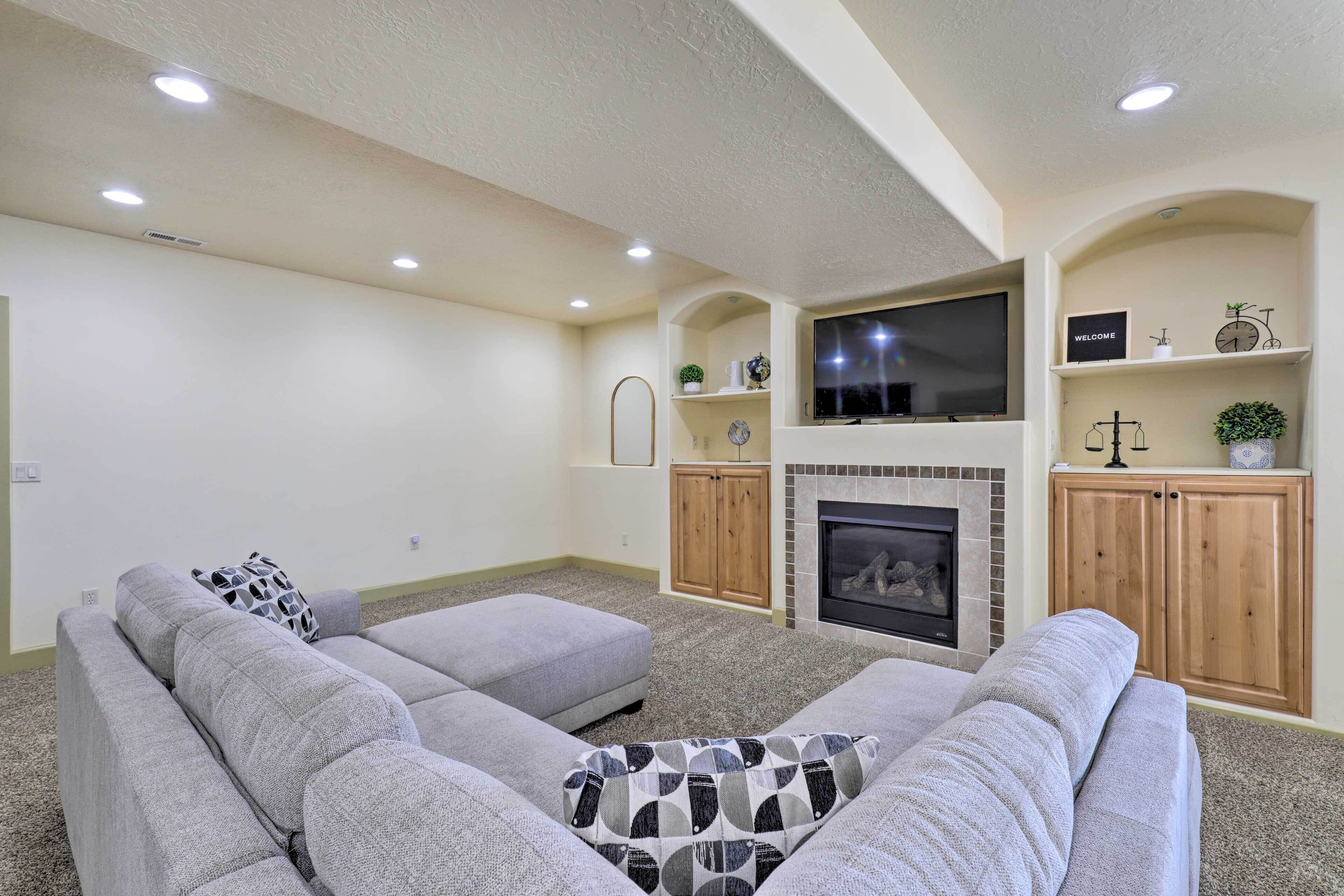 Saratoga Springs Getaway: Walk to Utah Lake! Experience the best of Utah’s natural surroundings when you arrive at this Saratoga Springs vacation rental! This 3-bedroom, 1-bath unit is the perfect home base for families and friends to unwind after exploring the great outdoors. Launch a kayak on Utah Lake, practice your swing at TalonsCove Golf Club, or enjoy a private soak at the Saratoga Hot Springs. After the day’s adventures, fire up the gas grill for nighttime barbecues or gather in the theatre room for family movie nights.-- THE PROPERTY --2,000 Sq Ft | Fishing & Boating Nearby | < 5 Mi to Saratoga Hot Springs Bedroom 1: Full Bed | Bedroom 2: Full Bed | Bedroom 3: Queen Bed | Additional Sleeping: Pack ‘n PlaySHARED AMENITIES: Large fenced backyard, gas grill, fire pitMAIN FEATURES: Smart TV w/ streaming services, theatre room, fireplace, board games, books, high chair, ceiling fansKITCHEN: Cooking basics, refrigerator, microwave, stove/oven, dishwasher, dishware & flatware, blender, coffee maker, Crockpot, toaster, toaster oven, spices, water filterGENERAL: Free WiFi, central A/C & heating, towels/linens, in-unit washer/dryer, iron/board, hangers, hair dryers, trash bags/paper towels, complimentary toiletriesFAQ: Step-free access, homeowner on-site, 2 exterior security cameras (facing out)PARKING: Driveway (1 vehicle), additional street parking (first-come, first-serve)-- THE LOCATION --UTAH LAKE (~1.0 miles): Boating, swimming, fishing, water skiing, paddleboarding, kayakingOPT OUTSIDE: TalonsCove Golf Club (0.8 miles), Timpanogos Cave National Monument (19.3 miles), Sundance Resort (30.8 miles), Uinta-Wasatch-Cache National Forest (31.7 miles), Mount Olympus Wilderness (36.5 miles), Arches National Park (218 miles), Bryce Canyon National Park (235 miles)THINGS TO DO: Saratoga Hot Springs (4.2 miles), Thanksgiving Point (10.3 miles), Butterfly Biosphere (11.0 miles), Museum of Natural Curiosity at Thanksgiving Point (11.1 miles), Evermore Park (14.1 miles)SALT LAKE CITY (~35.6 miles): Hogle Zoo, Liberty Park, Red Butte Garden, Natural History Museum of Utah, Temple Square, Salt Lake TempleAIRPORT: Salt Lake City International Airport (39.3 miles)-- REST EASY WITH US --Evolve makes it easy to find and book properties you’ll never want to leave. You can relax knowing that our properties will always be ready for you and that we’ll answer the phone 24/7. Even better, if anything is off about your stay, we’ll make it right. You can count on our homes and our people to make you feel welcome--because we know what vacation means to you.-- POLICIES --- No smoking or vaping of any kind- No pets allowed- No events, parties, or large gatherings- Must be at least 22 years old to book- Additional fees and taxes may apply- Photo ID may be required upon check-in- NOTE: The homeowner lives in the main home on-site, in a separate unit with a separate entrance, and may be present during your stay- NOTE: Your safety matters. This property features 2 exterior security cameras: 1 camera is located on the front door facing out, and 1 camera is located on the back door facing out. The cameras do not look into any interior spaces. The cameras record video and sound when activated by motion. They will record when they first sense motion and 30 seconds after the last motion is detected