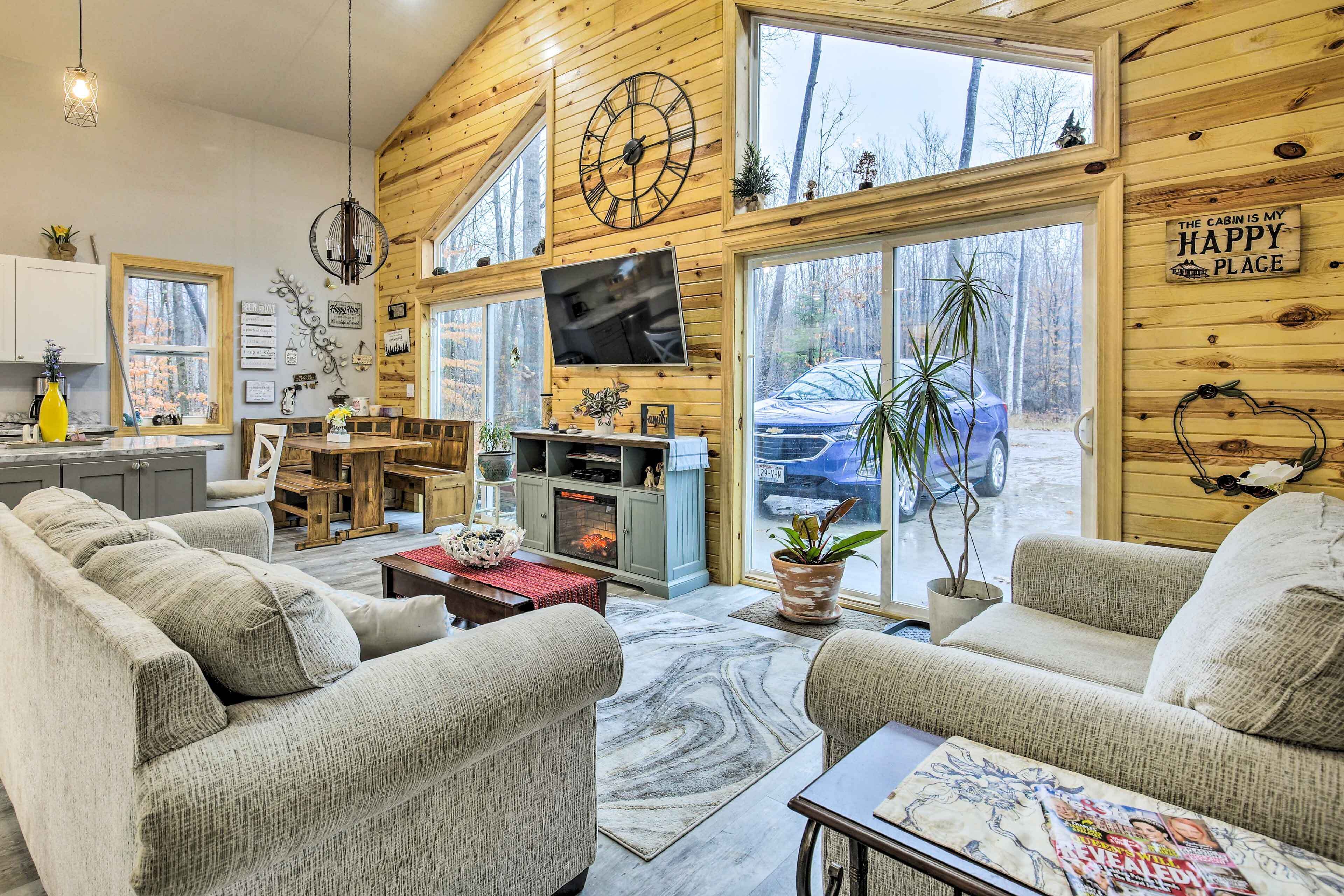 Welcoming Townsend Cabin: Hike, Fish & Relax! Calling all anglers, lake explorers, outdoor lovers, and those in need of a rustic escape from city life — this 1-bedroom, 1-bathroom vacation rental is ready to accommodate you on your next trip to Townsend, Wisconsin! Surrounded by towering trees, this homey cabin boasts a fully equipped kitchen, an office area, electric fireplaces, a hot tub and a f...