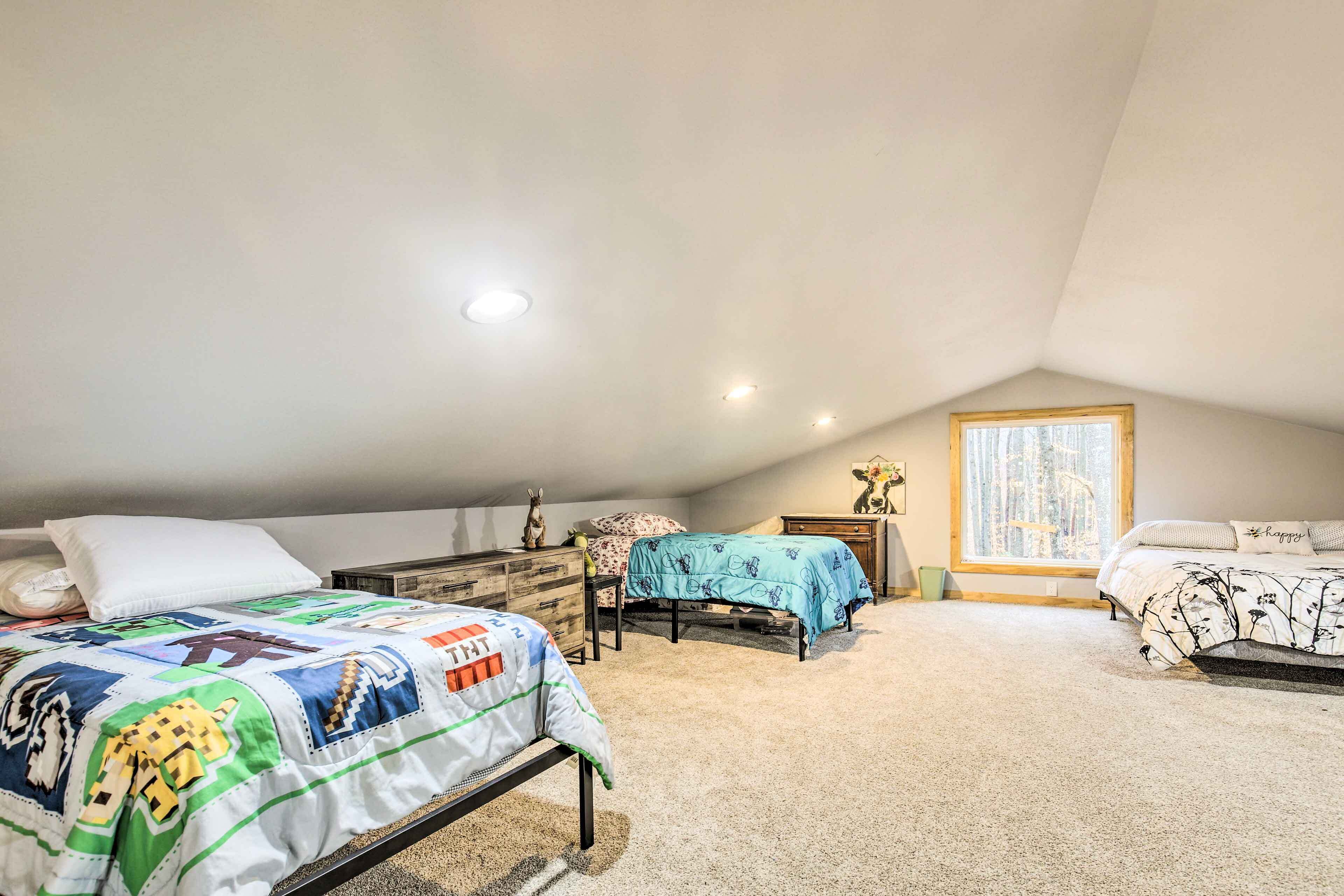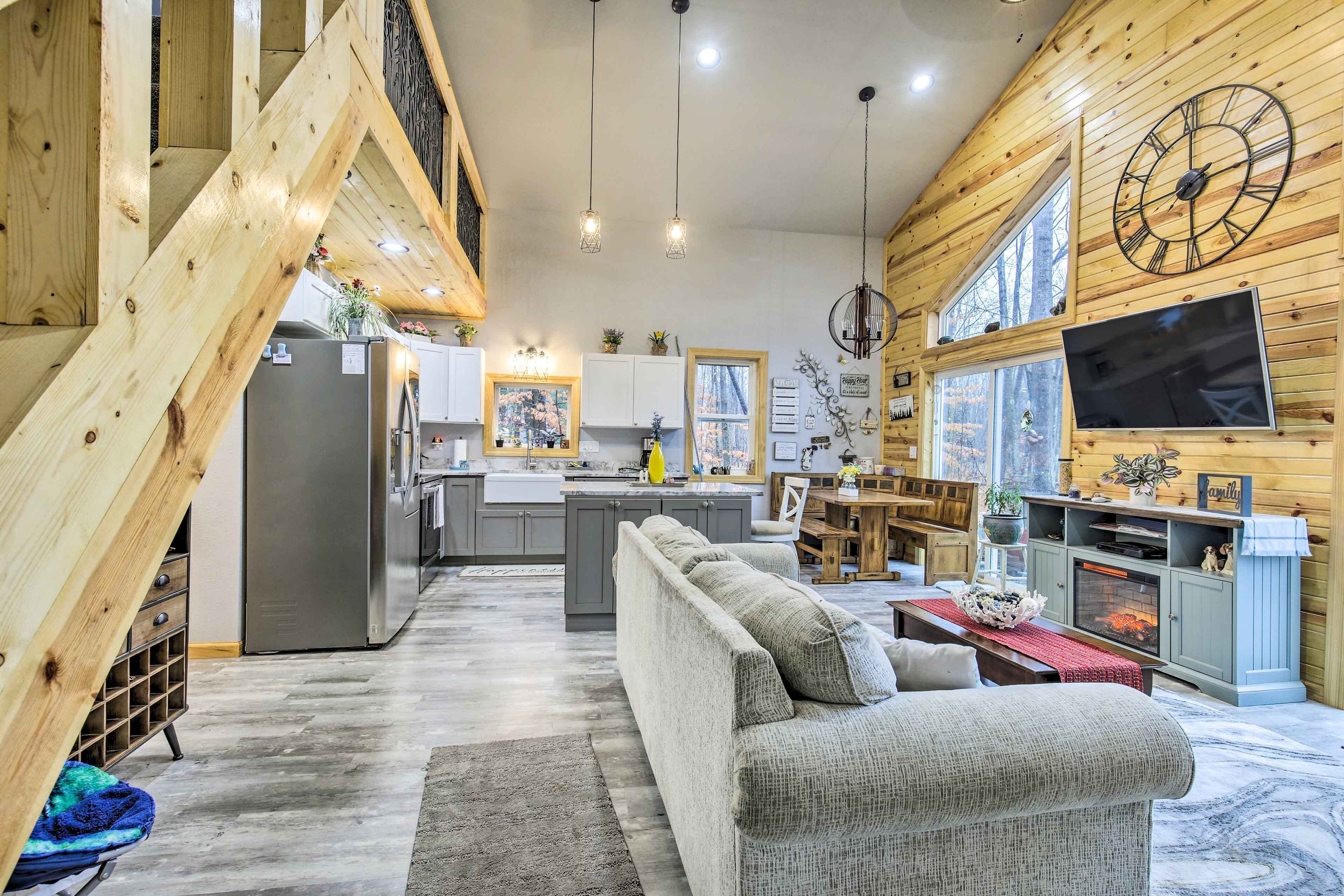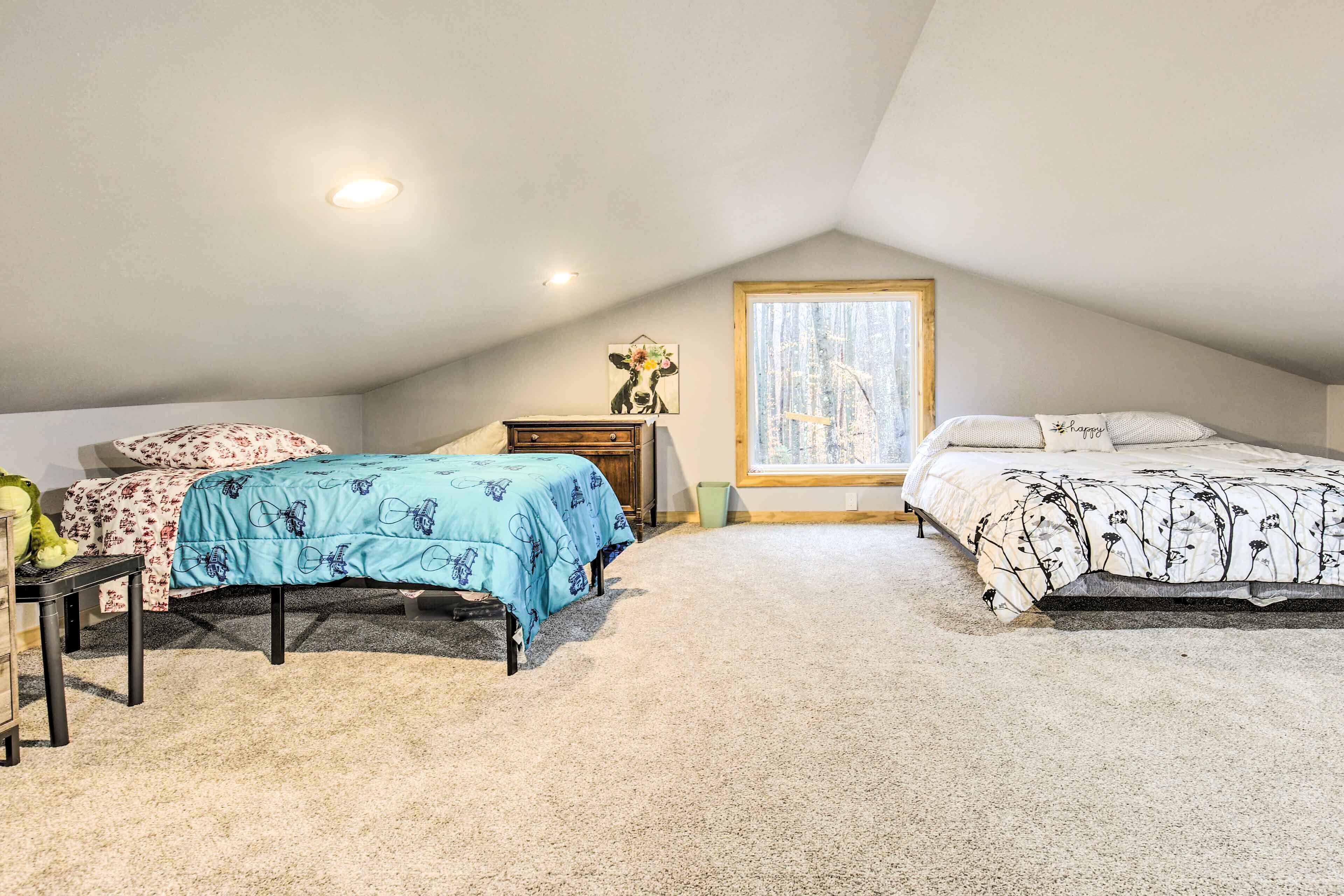 Welcoming Townsend Cabin: Hike, Fish & Relax! Calling all anglers, lake explorers, outdoor lovers, and those in need of a rustic escape from city life — this 1-bedroom, 1-bathroom vacation rental is ready to accommodate you on your next trip to Townsend, Wisconsin! Surrounded by towering trees, this homey cabin boasts a fully equipped kitchen, an office area, electric fireplaces, a hot tub and a fire pit. Spend your days hiking with loved ones in multiple state parks and natural areas, then cozy up by the TV. Book now!-- THE PROPERTY --Private Hot Tub | 1,630 Sq Ft | Cozy Interior | Fire Pit | Nearby Hiking & Lakes | Free WiFiBedroom: Queen Bed | Loft: King Bed, 2 Twin BedsCABIN FEATURES: Washer & dryer, electric fireplaces, 2 Smart TVs, dining table, office area, patio, hot tub, snowmobile trail, firewood, bar (outside)KITCHEN: Stainless steel appliances, dishwasher, drip coffee maker, toaster, Crockpot, blender, cooking basics & spices, knife set, dishware & flatwareGENERAL: Window A/C unit, electric heating, complimentary toiletries, linens & towels, trash bags & paper towels, hangers, keyless entryFAQ: Step-free access (bedroom & bathroom on 1st floor), pet fee (paid pre-trip), 3 exterior security cameras (facing out)PARKING: Driveway (6 vehicles)-- THE LOCATION --LAKES: Townsend Flowage (1.8 miles), Glocke Lake State Natural Area (4.0 miles), Bass Lake Recreation Area (4.6 miles), Wheeler Lake Swimming Area (8.6 miles)OUTDOOR RECREATION: Cathedral Pines State Natural Area (2.8 miles), Tar Dam Pines State Natural Area (19.0 miles), Governor Thompson State Park (23.4 miles)SEE + DO: Sleepy Hollow Miniature Golf (3.0 miles), Paul Bunyan Ski Hill (6.3 miles), Mountain Lookout Tower (13.7 miles)AIRPORT: Green Bay Austin Straubel International Airport (75.9 miles)-- REST EASY WITH US --Evolve makes it easy to find and book properties you’ll never want to leave. You can relax knowing that our properties will always be ready for you and that we’ll answer the phone 24/7. Even better, if anything is off about your stay, we’ll make it right. You can count on our homes and our people to make you feel welcome--because we know what vacation means to you.-- POLICIES --- No smoking - Pet friendly w/ $50 fee (+ fees & taxes)- No events, parties, or large gatherings- Must be at least 25 years old to book- Additional fees and taxes may apply- Photo ID may be required upon check-in- NOTE: This property serves as a remote escape; therefore, it does not include cable access- NOTE: Your safety matters. This property features 3 exterior security cameras, 1 on each corner of the cabin. The cameras are outward facing and do not look into interior spaces. The cameras record video and will be on during your stay