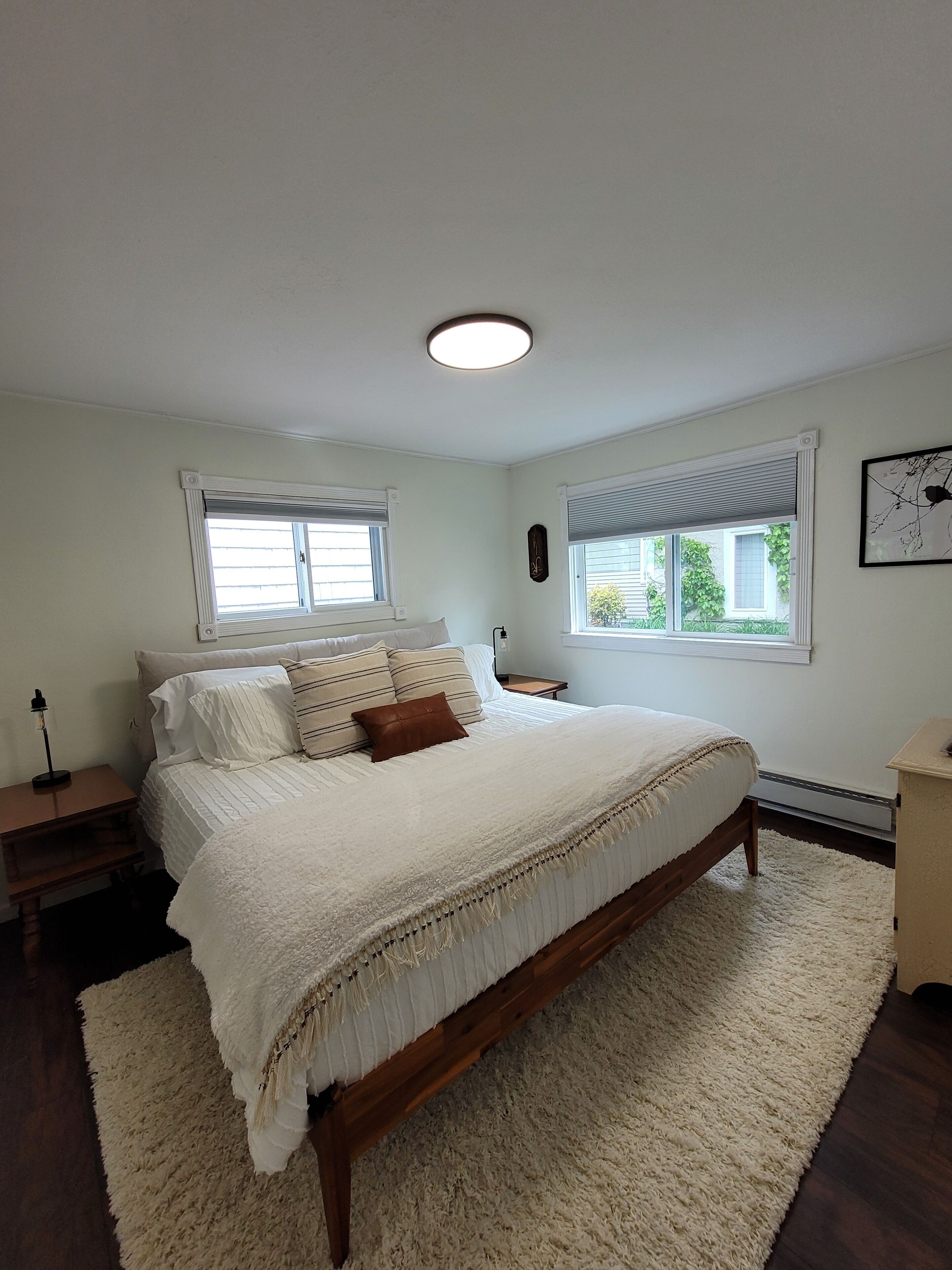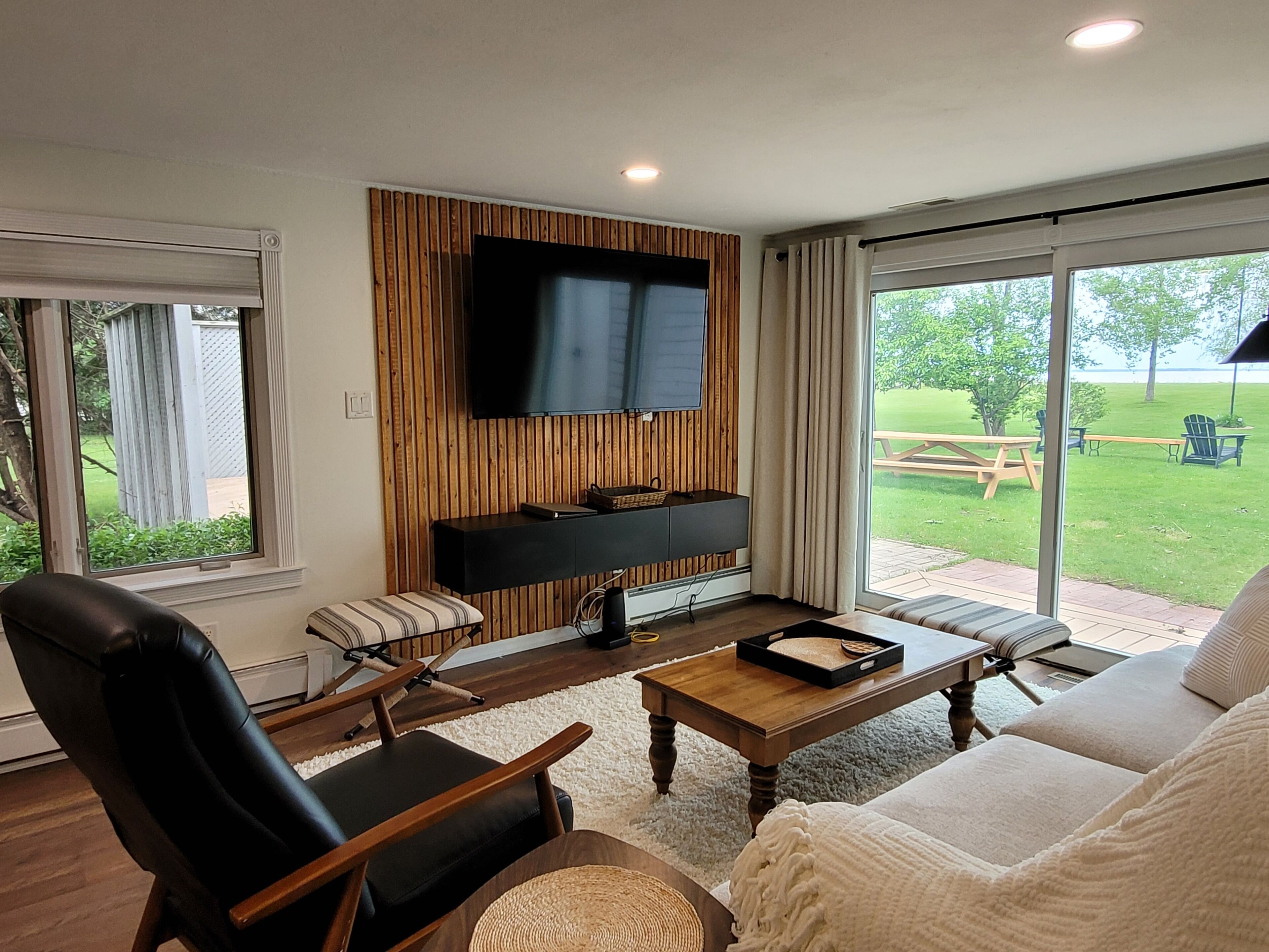 Waterfront Cottage with a sand beach! SLEEPING ARRANGEMENTS: We have 2 total bedrooms. 1 King bed in its own bedroom, 2 Queen beds in total, 1 Queen is in its own bedroom and 1 is a pull-out couch. There is also a large pack-n-play in the closet for babies to sleep in as well. The bedrooms all have room darkening shades too.Private Sand Beach! You have your own private sand beach. Keep in mind, b...