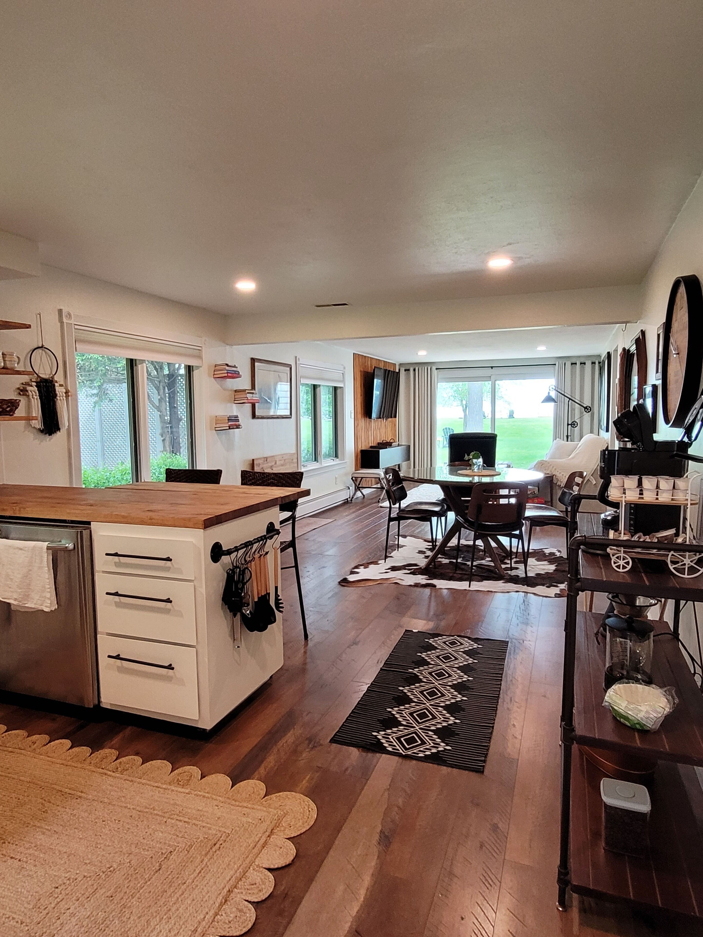 Waterfront Cottage with a sand beach! SLEEPING ARRANGEMENTS: We have 2 total bedrooms. 1 King bed in its own bedroom, 2 Queen beds in total, 1 Queen is in its own bedroom and 1 is a pull-out couch. There is also a large pack-n-play in the closet for babies to sleep in as well. The bedrooms all have room darkening shades too.Private Sand Beach! You have your own private sand beach. Keep in mind, based on tide of the water, sands beach may bay non existent to very large. Typically the beach is large, but cannot guarantee that because of nature. Waterfront area has medium sized rocks to protect the shoreline, use caution when going to the water as needed. Staircase is provided for easier water access."FAMILY FUN SHED" is our attached garage that has bikes (kids and adult), kayaks, helmets, life jackets, football, frisbees, bag toss, beach , and much more. Pack less in the car and use these amenities instead!Deck: The outdoor deck is a great place to hang out, grill out and let the kids play and run around in the back yard. There is also a fire pit as well. One charcoal grill on site. Must bring your own charcoal and lighter fluid. Parking: Access to this cottage is a small, 1 lane road off the main road. There is parking for 3 vehicles or 2 vehicles and a boat/similar. Your average boat will be ok, space wise. Any large boats over 18 feet, may not fit in the parking space provided. Do NOT park on any grass or the city can write a ticket.If you are like us and love coffee, you will love our coffee bar! Start with some fresh beans and grind them up. Then, try a traditional drip coffee maker, pour over or Keurig.If you are indoors, we have a ton of board games to play, kids toys, kids books or enjoy the "classic" console video games!LOCATION: - Private waterfront right in the backyard- Private sand beach 95% of the time depending on the tide.- 2 minutes from Bay Beach, Wildlife Sanctuary and Children's Museum.- 13 minutes to Lambeau Field- 17 minutes to the Door County line- 37 minutes to Sturgeon BayIF YOU COME IN THE WINTER, THERE IS PLENTY TO DO:1. GREAT ice fishing all around the area2. Lambeau Titletown Ice Skating Rink -located by Lambeau Field3. Lots of hiking, snowshoeing, and cross-country skiing in Door County with trails at Potawatomi State Park and "Crossroads at Big Creek" located at 2041 Michigan St, Sturgeon Bay.4. Tubing at Arien's Hill or Baird's Creek HillCLEANING:- The cleaning fee is to prepare the home for your arrival. Including laundering of all beds, sanitation and disinfection of with shower, toilets, and floor mats, and laundering of towels all for every guest. The cleaning fee covers the proper sanitation guidelines of COVID-19 for cleaning and vacuuming floors, kitchens, and bathrooms. The cleaning fee also includes the organization of rooms and storage areas, inventory check, window cleanings, plus buying and stocking essential items for your stay.- Upon check-out, do not leave the property destroyed. You will incur additional charges if there are stains and messes beyond a standard cleaning time, if you break or damage items, or if you fail to return items you use back to the original storage areas. This is our family cottage and we like to keep it as nice as possible!PETS: 1 Dog may be allowed for a fee. Additional dogs may be negotiated.1. Please do not allow them on the furniture2. Accidents happen but please disinfect immediately and clean completely.3. Clean up after your dog on the outside yard and toss in the garbage.4. We ask that if your dog does bark a lot to not bring them. So we can be respectful to our neighbors trying to enjoy their cottages.5. If your pet does damage something please let us know.6. If your dog has a history of peeing inside please do not bring them.7. If your dog has a history of biting they are not allowed on the property whatsoever, and we do not take any liability for issues.8. Please either tie dogs up or crate them if you leave for the day so they don’t have accidents inside.9. We will have a dog water/food dishes, dog leashes and one dog bed.OTHER THINGS TO NOTE:-Bring your own charcoal and lighter fluid-You are on a beautiful lake. Birds love the lake too and from time to time will poop in the yard-Do not park on any grass or in the road, you could get a ticket-Lot lines are marked with posts. Do NOT cross into neighboring yards or use their docks for any reason-PLEASE be respectful of the neighbors for noise and outdoor lights on at night. Noise ordinance is strictly enforced by the town and quiet hours are 9pm to 8am Sunday thru Thursday and 9pm to 8am on Friday and Saturday- No illegal activity including no drugs and no underage drinking.- The WiFi has been good and reliable. However, please don’t write a bad review because of WiFi access issues.-Absolutely no smoking inside the cottage. You can smoke on the patio but please keep the area clean of used cigarettes- No glitter or confetti inside the property and please try and keep sand/water out.-NO Fireworks to be used on the premises.No refunds of any kind will be issued due to things we cannot control. Thank you for your understanding!Permit Number: 215829