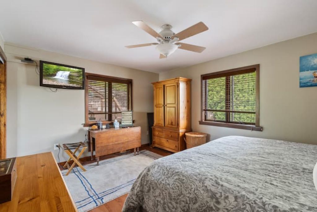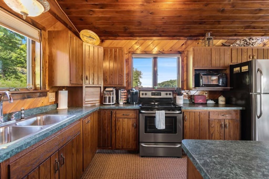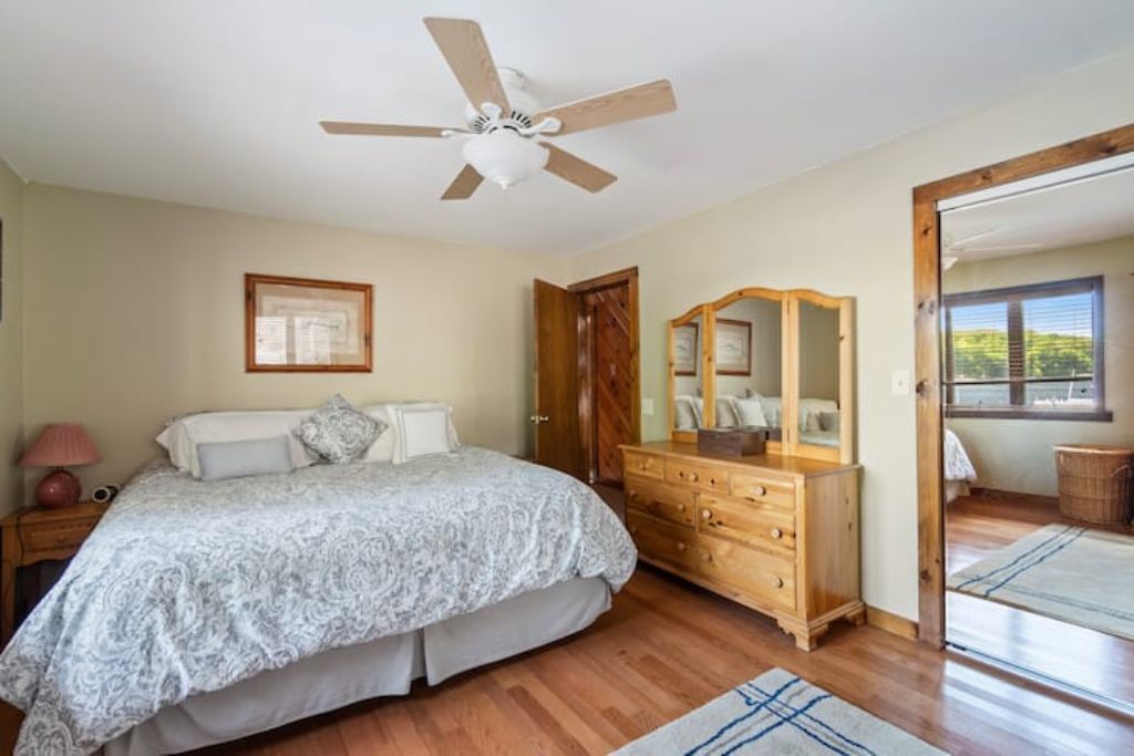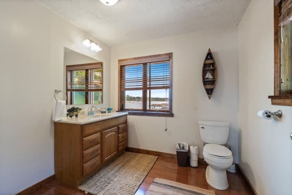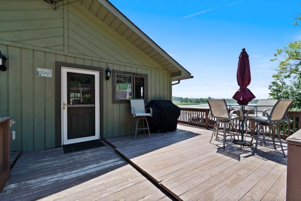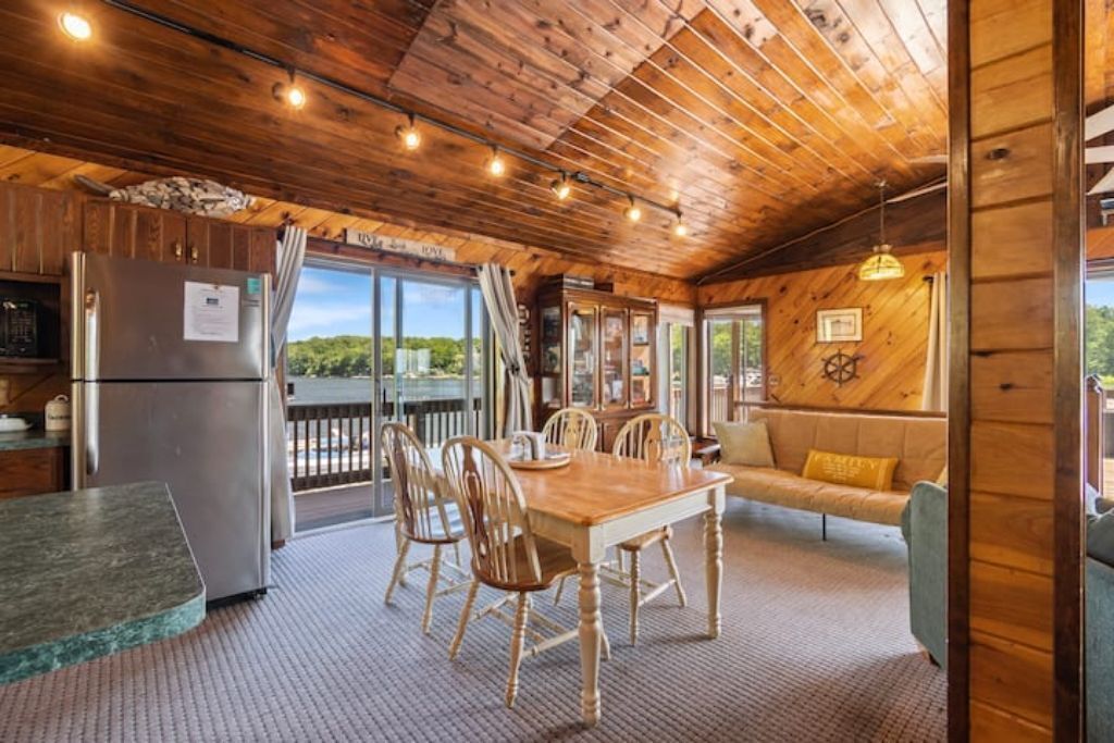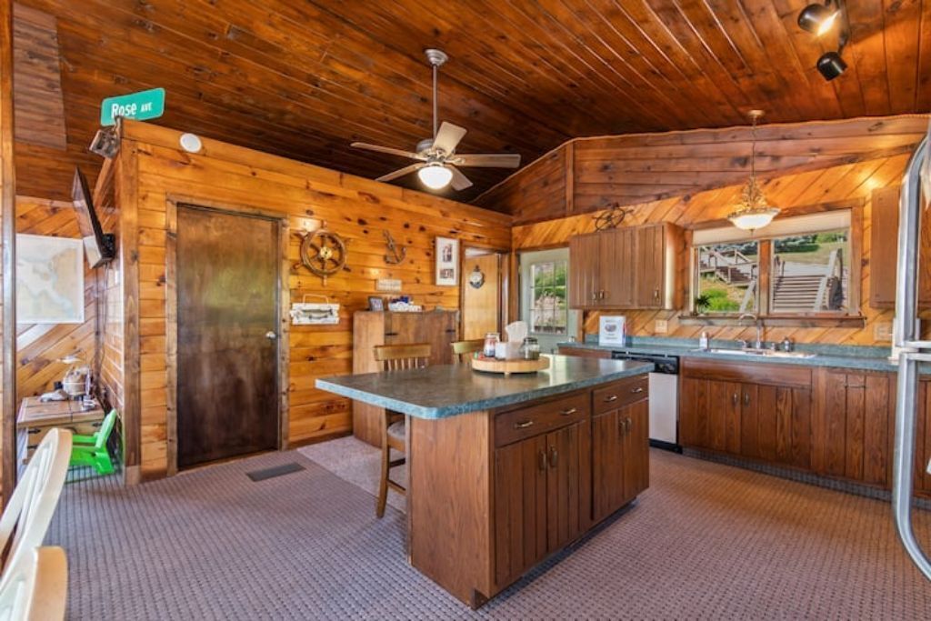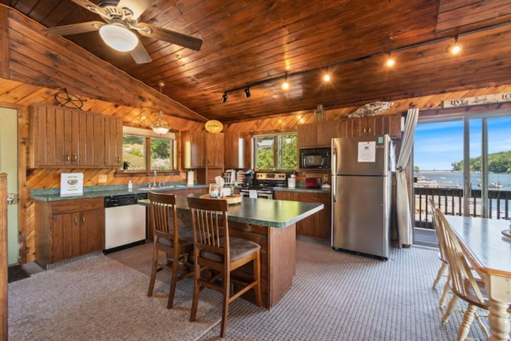Unique lake house built overwater on the Great Lakes, Sodus Bay Lake Ontario Your family’s Leroy Island getaway starts here. Bring your boat & enjoy your vacation at this unique house built right on the water, not the land. It's located on the only island of Sodus Bay that you can drive to. There’s a boathouse with 3 kayaks, 2 paddle boards a pedal boat & a tube to tow behind your boat. Catch fish right in the boathouse & on the docks. Swim on a private gravel beach. Wraparound decks with fantastic views. Dine alfresco using the 3 outdoor patio sets & gas grill or just use them for morning coffee & afternoon cocktails. Enjoy S’mores around the gas fire pit. Limited to 8 people with 3 bedrooms containing six beds, a futon and 2 air mattresses. Fully equipped kitchen. Indoor or outdoor dining. Gas fire pit on deck. Open Living room area. Water views from every room in the house. 4 smart TVs 55 inch in living room and a smaller one in each bedroom. Spectrum internet 300mps and cable. Walk around decks, Docks on both sides of the house and in the boathouse (docks and boathouse have no railings so non swimmers should wear life jackets and kids supervised). There are a lot of stairs. Plenty of parking at the top and room for your boat trailer across the street. Gates and baby gear are stored in closet. New custom shower in full bath as well as an outdoor shower in the covered boathouse. Outside boat lift can be used or just tie up along the docks. Easily enough space for 7 boats. Swim in the private gravel beach. This is the place for your outdoor vacation on the water.Tired of the kids inside? Outdoor adventure awaits. Water sports and world class fishing literally out the back door. Bring your boat or rent one nearby. Charter a fishing trip for salmon, brown trout or lake trout. Bird watchers will see eagles, osprey humming birds and just about every type of duck, geese, swans etc. Turtles nest on the property. I have seen mink, beavers, fox, and deer.There is a hose and a pressure washer in the boathouse, to help clean your boat after a day of fishing, as well as a fish cleaning table. Need more excitement? Del Lago casino is only a 1/2 hour away. The Sterling Renaissance Fair is a short drive. Wineries, brew pubs and fine dining just a short trip. There are no bars or restaurants on the island, however Skippers Landing and Pier 53 are less than a mile away. There are numerous restaurants along the water of Sodus Bay and in driving distance. Winter rentals will have to shovel their way in and out as there is no snow removal. There are shovels present on site, and the ice fishing is worth it. Guests can use the full property. Do not drive down the hill driveway. Park up top and walk down to avoid ending up in the lake or being towed back up the steep hill. You can easily fit 4 to 6 cars in the parking area at the top with additional parking in the gravel across the road. There are some life jackets, kids fishing gear and various floats available in the boathouse. Sea weed is common in the warmer weather. There are bubblers to push out the floating variety and a cutter and forks to scoop it located in the boathouse. Harvesters work the island weekly but it’s still there. There are beach towels available. I will be happy to answer any questions or concerns you may have before booking. The only thing you should need to bring is food, beverages, clothes, fishing gear and a boat. No boat? Numerous places are available to rent them.Bring your dog, but please clean up after them. Dogs love to swim and play at the beach, but must obey the leash laws. No wet dogs in the house. No dogs on the furniture. Smoking and vaping outside only away from the doors and open windows. No marijuana use allowed on the property, or illegal drug usage. The Town of Huron short term rental laws state that the property is limited to 8 overnight guests and 12 people maximum on the property at any given time. Quiet hours start at 10 pm, and day guests must leave. No Fireworks are allowed as well as no bonfires except in the provided propane fire place. There are no campers allowed on the property and no outdoor camping is allowed. Trash bins are provided and must be placed roadside on trash night and brought back after pickup. Absolutely no street parking and a strict 10 mph on Rose Ave. must be followed. Quiet hours start at 10pm. This is a residential neighborhood, and not the party scene of Greig St. in Sodus Point. Please be considerate of the neighbors. Please stay in the bounds of the property which is the floating dock to the north and the end of the retaining wall to the south. Violations will result in a fine from the Town and eviction with no refund. This is our vacation home which is partially rented out. Please treat it with respect. No rentals under 25. I am not including a cleaning fee, so please clean up after yourself. Ensure all dishes are done or at least run the dishwasher before checking out. Place a load of towels in the washer and strip all beds used, putting the sheets by the washer. Take all of your food with you, throw away what you don't want by putting it in the outdoor trash bins.HOUSE RULES• This is my family’s second home. We appreciate the opportunity to share it with you, and hope you enjoy your stay as much as we do. We ask that you treat the home and our neighbors with respect, and that you maintain the condition that you found it in. I understand that things break sometimes through no fault. Please notify me asap of any issues. • Do not flush anything down the toilets except for human waste and toilet paper. Absolutely no wipes, feminine hygiene products, condoms, paper towels etc. Absolutely no cooking grease in the drains as well. You will be billed for any damages caused, and it will be expensive. • We are limited to a total of 8 overnight guests on the short term rental permit, this includes children. Please do not exceed the limit as you will face fines and we may fac