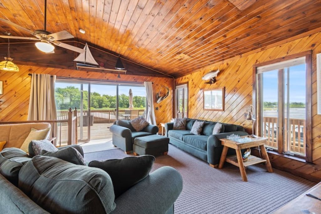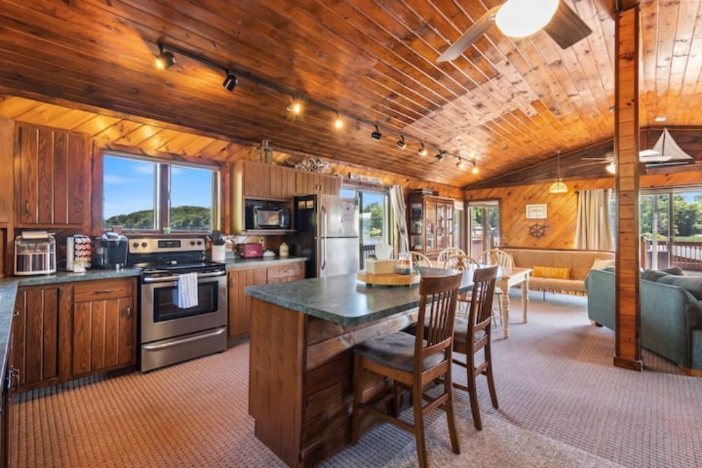 Unique lake house built overwater on the Great Lakes, Sodus Bay Lake Ontario Your family’s Leroy Island getaway starts here. Bring your boat & enjoy your vacation at this unique house built right on the water, not the land. It's located on the only island of Sodus Bay that you can drive to. There’s a boathouse with 3 kayaks, 2 paddle boards a pedal boat & a tube to tow behind your boat. Catch fis...