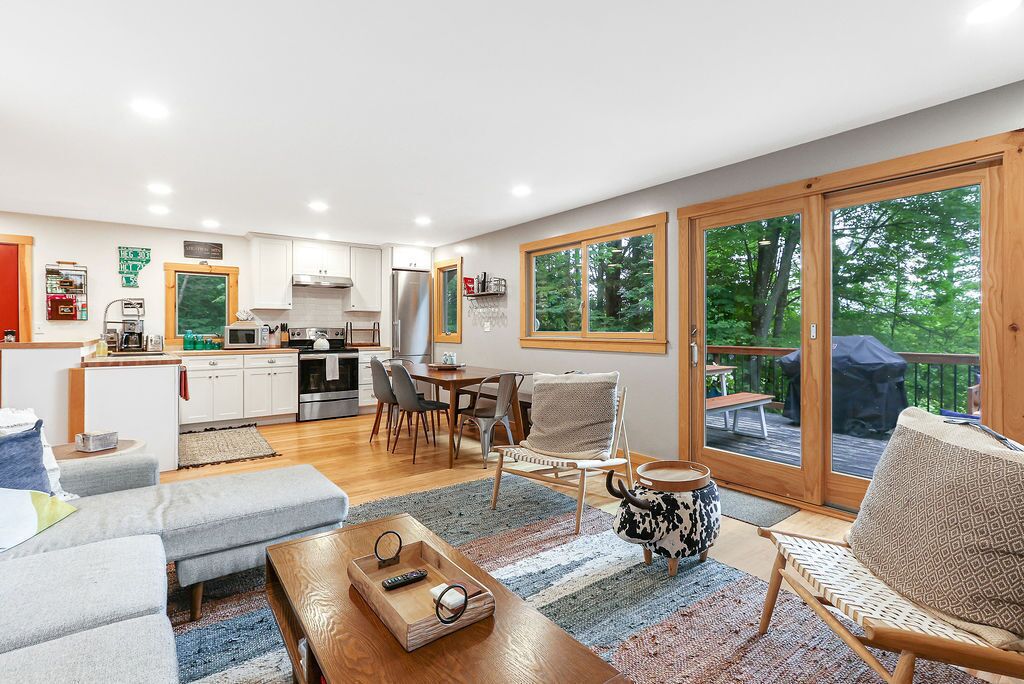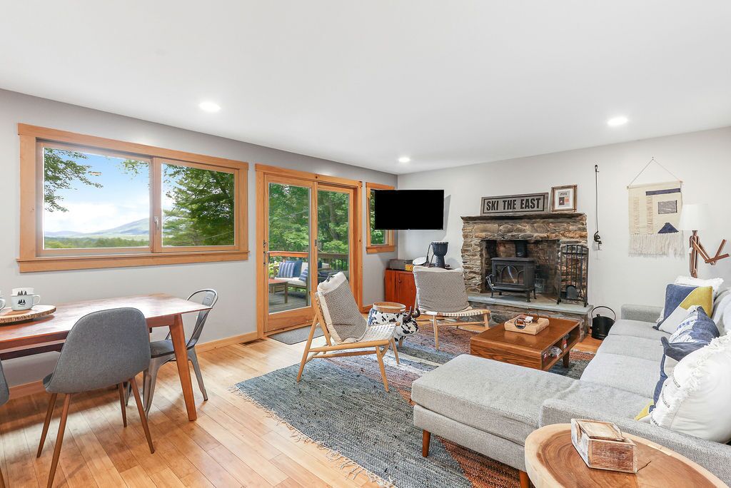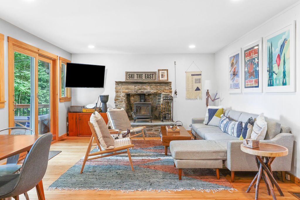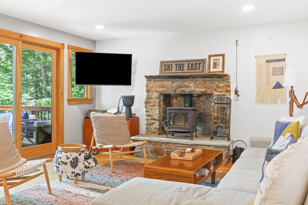 Newly Designed Chalet w/Views, Minutes to Stratton A perfect little getaway. This 3 bedroom, 2 bath chalet is less than 10 minutes from Stratton, and just a little further to Mount Snow, and Magic Mountain. Perfect for 2 families, or 7-8 people. Situated on 2.5 acres, this private setting with mountain views, has everything you need to feel at home. Multiple markets for food, beer, and wine less t...