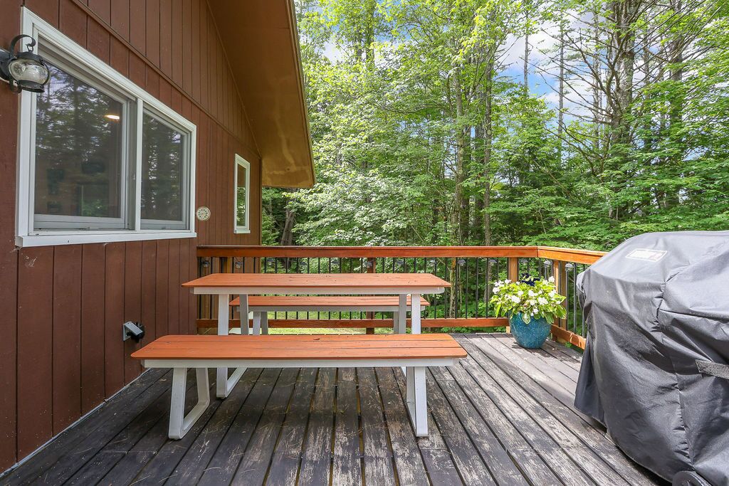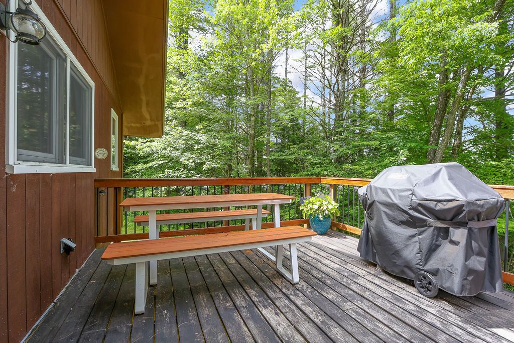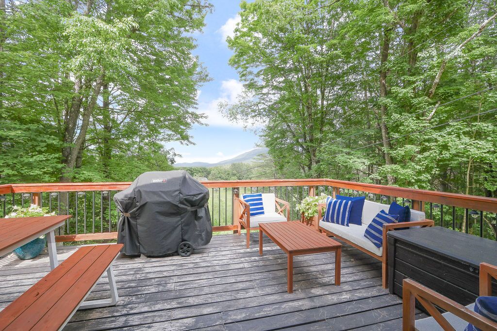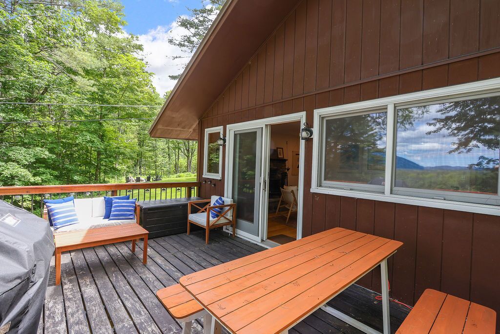 Newly Designed Chalet w/Views, Minutes to Stratton A perfect little getaway. This 3 bedroom, 2 bath chalet is less than 10 minutes from Stratton, and just a little further to Mount Snow, and Magic Mountain. Perfect for 2 families, or 7-8 people. Situated on 2.5 acres, this private setting with mountain views, has everything you need to feel at home. Multiple markets for food, beer, and wine less than a 5 minute drive as well as ski stores for suppliesThe spaceYour home away from home has everything you need to enjoy all that the Jamaica and Southern VT has to offer from relaxing to being active skiing, hiking, fishing, snowmobiling, ATVing, or checking out the local shops and restaurants.The kitchen has all new stainless steel refrigerator, electric stove, microwave, and Bosch dishwasher. The kitchen is open to the living room and dining area.Kitchen is stocked with all the cooking/serving necessities including: cookware, pots, pans, plates, cups, and silverware. Additionally has a crock pot, coffee maker, and lots of other items to make you life here as convenient as possible.The dining table seats a total of 6-8 guests comfortably.The living room has a large and comfortable couch that seats up to 4-5 people, two additional mid-century chairs, (the kitchen bench doubles as additional seating) and a 50 inch UHD smart TV with streaming capabilities and streaming live TV (roku) as well as apps. You are also welcome to login to your Netflix and other streaming devices through the smart tv apps.Hotel quality linens and towels, shampoo and conditioner, and body wash provided for guests.Outdoors: Sit (season permitting as furniture is stored during winter) on the huge deck looking at the mountains. Weber grill is for guest use all year round. The large private side yard has a fire pit and abuts woodlands.Bedroom 1: located on the main floor, has one king bed with closetBedroom 2: located on the lower floor, has one king bed, closet, and rocking chairBedroom 3: located on the lower floor, has one queen bed and one pull out sofa that converts to a full bed.Common area: located on the first floor, has an area for one floor blow up mattress that can be provided.All mattresses are memory foam.