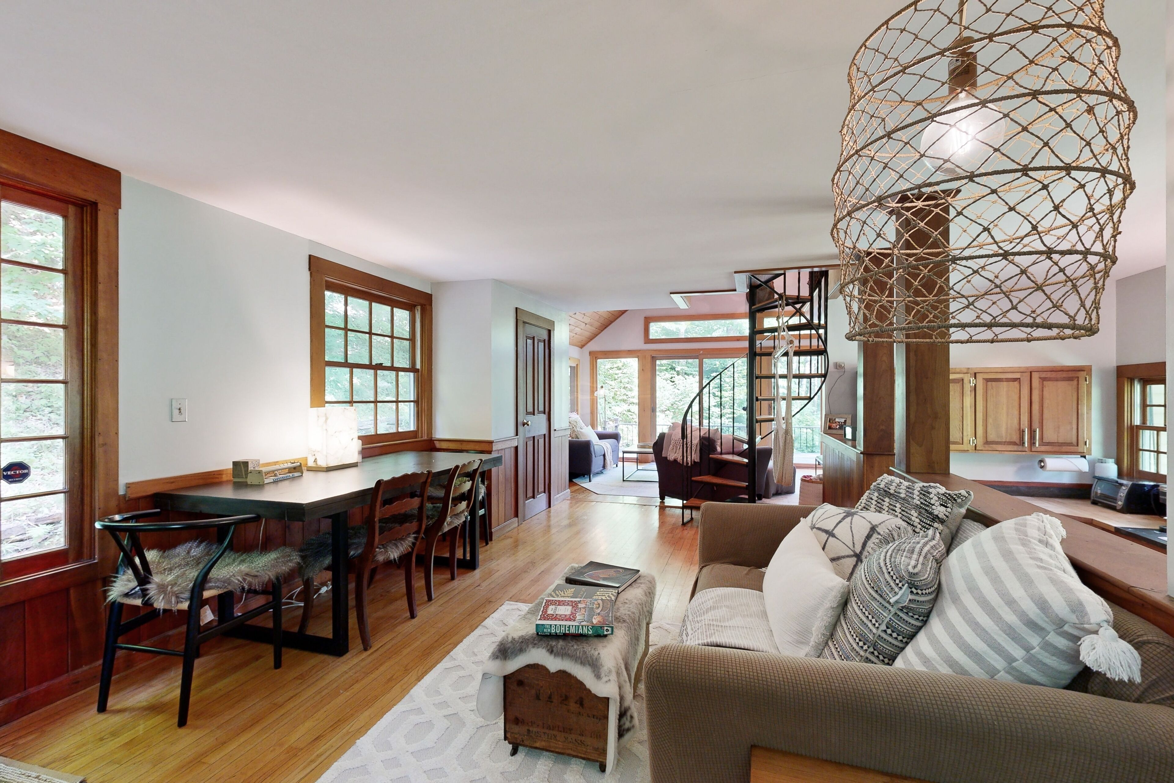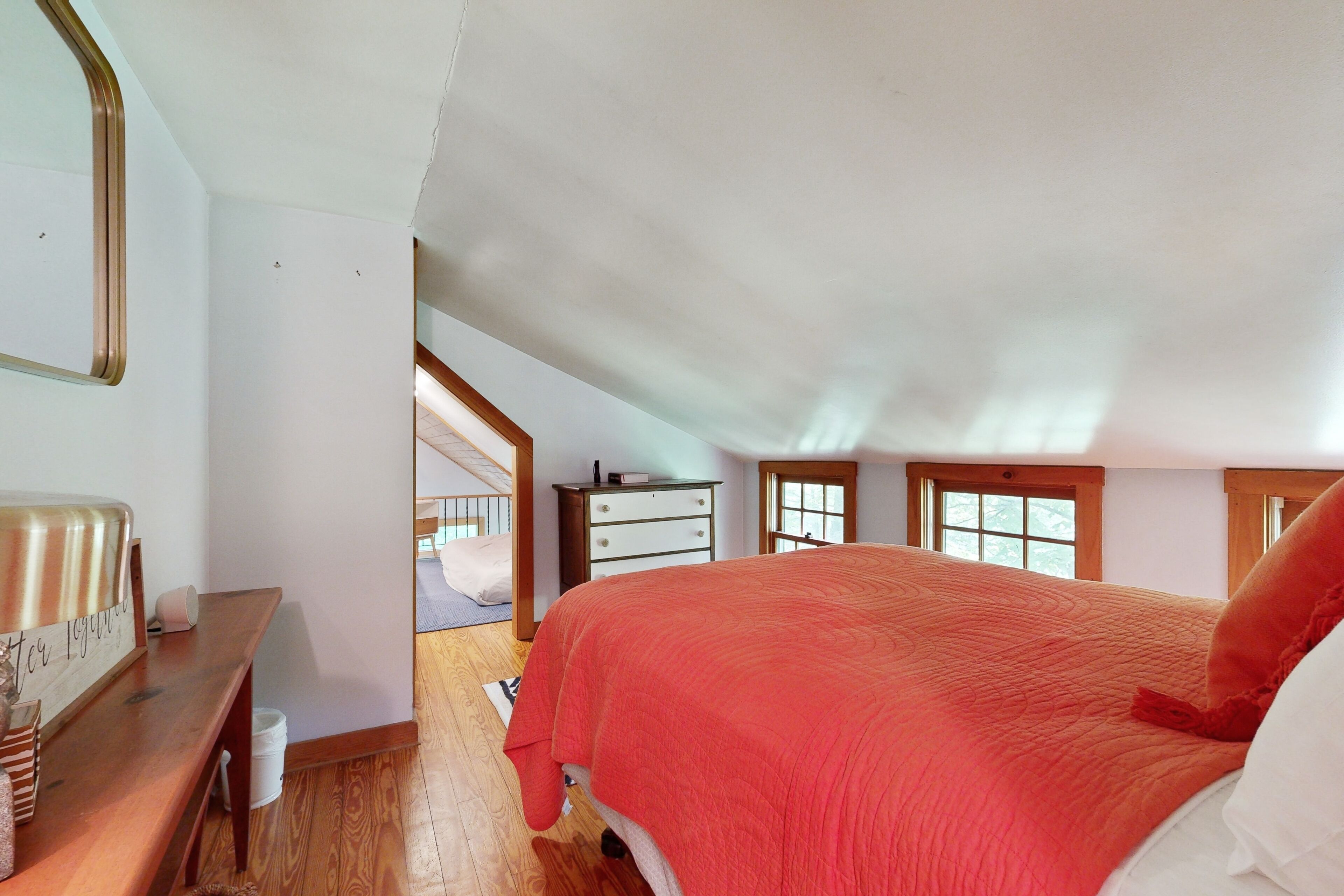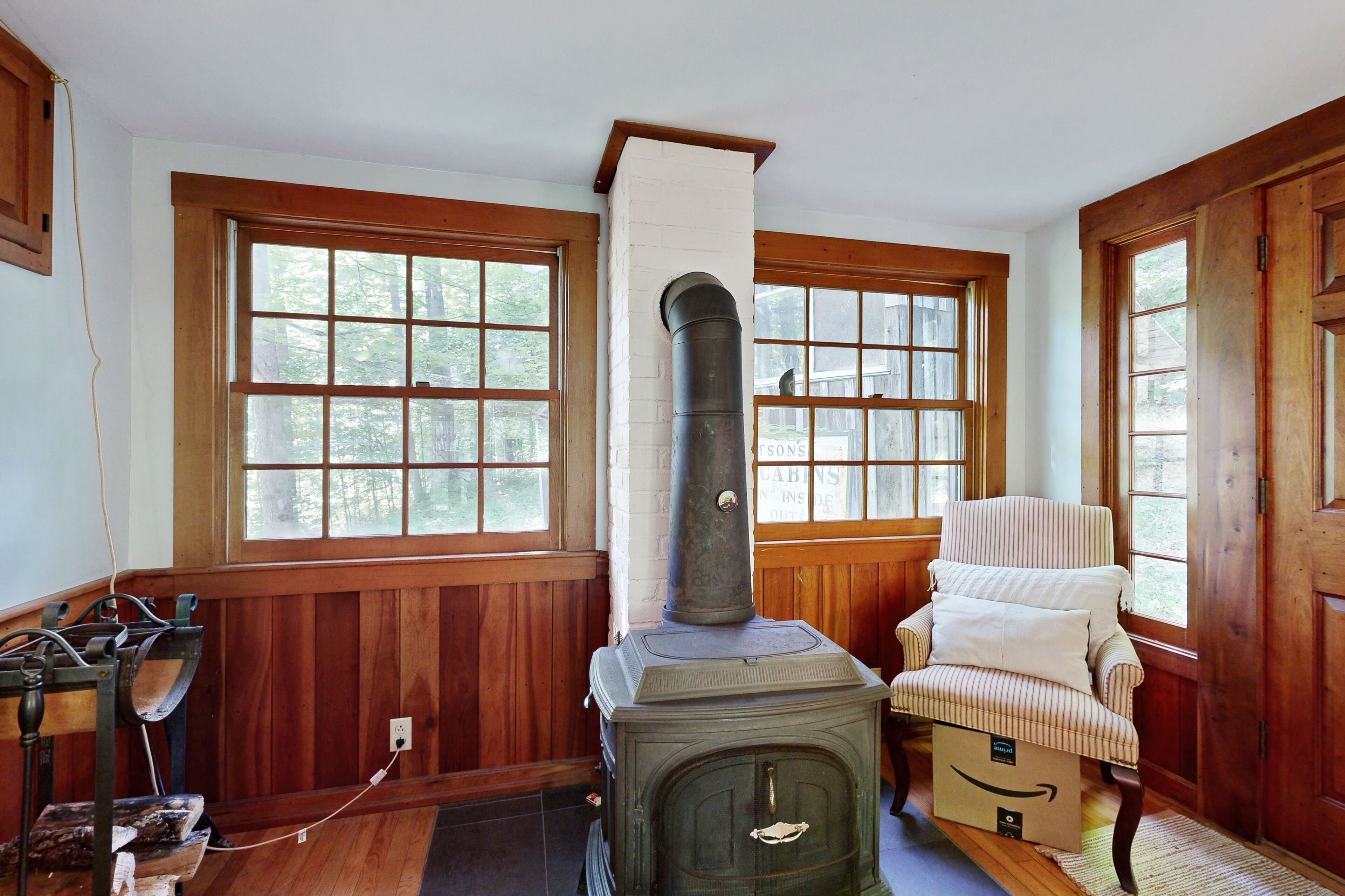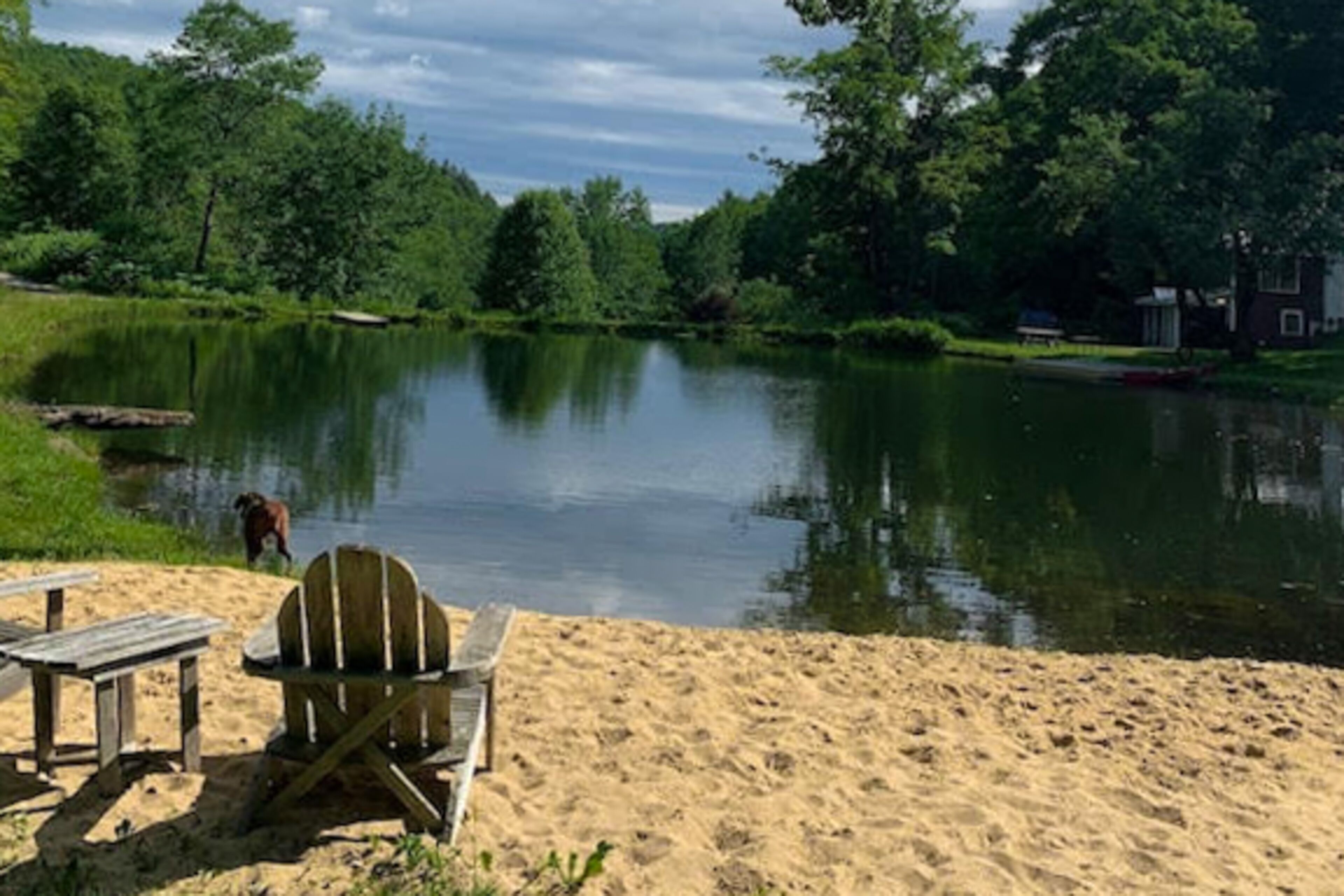 Charming waterfront 2BR house, private beach, waterfall, firepit, wifi, kayak Wild Blue YonderOur calendar is updated in real-time & our nightly rates are accurately displayed. Simply enter your desired dates and click 'Book Now!'Escape to this charming waterfront home nestled on 20 acres in Barnard, VT, offering a serene retreat with private sandy beach access, a cozy fire pit, and a lush lawn for relaxation. The wood-burning stove and gas fireplace provide a warm ambiance, perfect for unwinding after a day of outdoor adventures. This beautiful property boasts a range of amenities, including WiFi, a fully equipped kitchen with modern appliances, and access to 2 kayaks and 1 canoe at the home's nearby Sugar Shack on the pond's edge. Enjoy the stunning mountain views from the balcony or explore the surrounding area with activities like cross-country skiing and snowboarding just a stone's throw away. In the summer, the cabin stays naturally cool under a canopy of trees, creating a tranquil oasis for guests to enjoy. The nearby Lime Pond feeds a picturesque waterfall on the property that changes with the seasons, adding to the charm of this idyllic location. Whether you're seeking a peaceful retreat or an adventure-filled getaway, this home offers the perfect setting for a memorable vacation in Vermont. With its proximity to horseback riding, Nordic skiing, fishing, kayaking, and more, this property is ideal for outdoor enthusiasts looking to immerse themselves in nature. Explore the quaint village of Barnard or take a short drive to enjoy local restaurants, cinemas, and museums. Whether you're seeking relaxation or outdoor excitement, this waterfront home provides the perfect base for your Vermont escape. Book your stay today and experience the beauty of Barnard firsthand!Things to KnowCheck-in time: 4:00 p.m.Check-out time: 10:00 a.m.All guests shall abide by Vacasa’s good neighbor policy and shall not engage in illegal activity. Quiet hours are from 10:00 p.m. to 8:00 a.m.No smoking is permitted anywhere on the premises.Parking notes: There is free parking available for 3 vehicles.Due to local laws or HOA requirements, guests must be at least 21 years of age to book. Guests under 21 must be accompanied by a parent or legal guardian for the duration of the reservation.