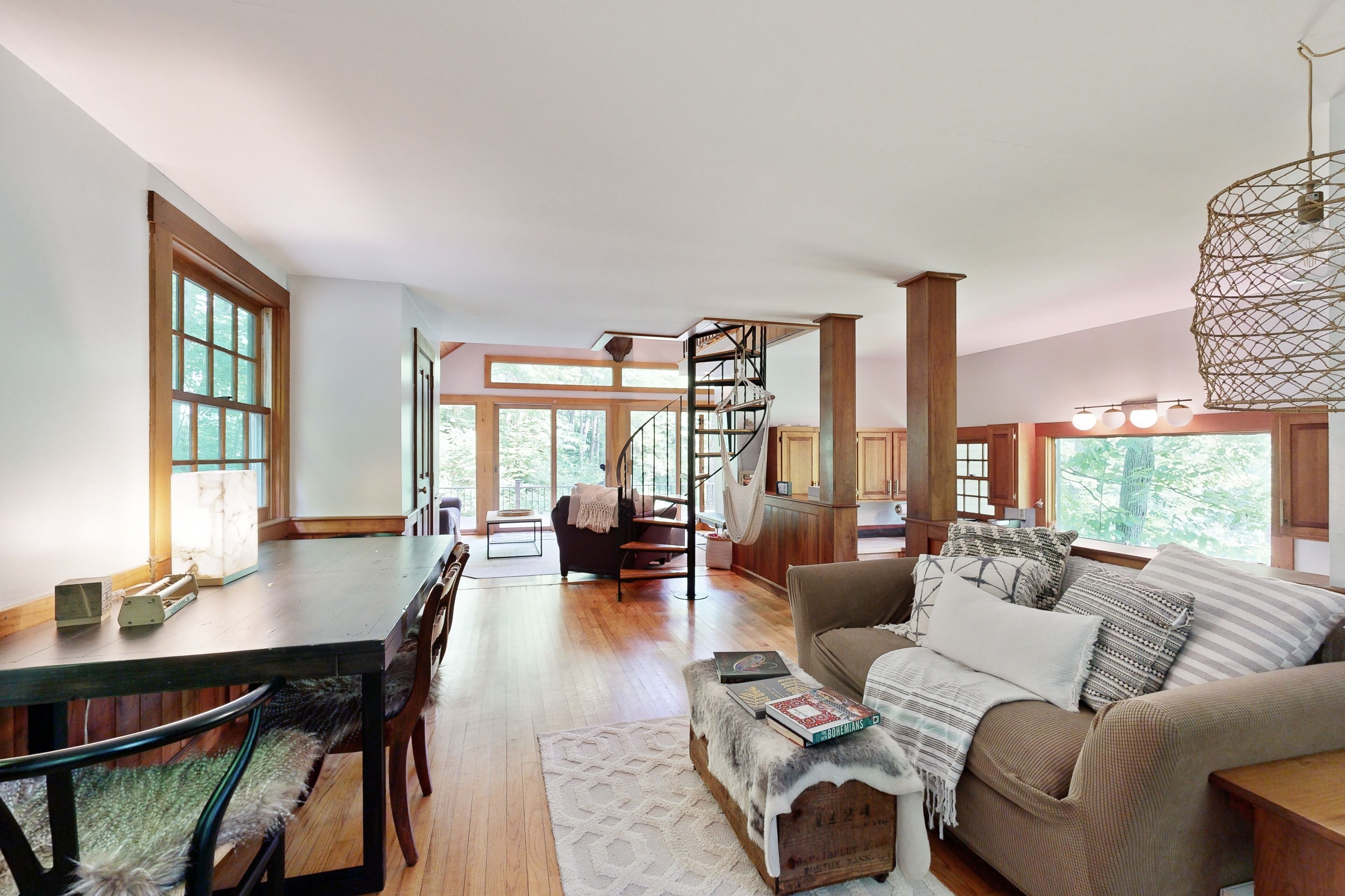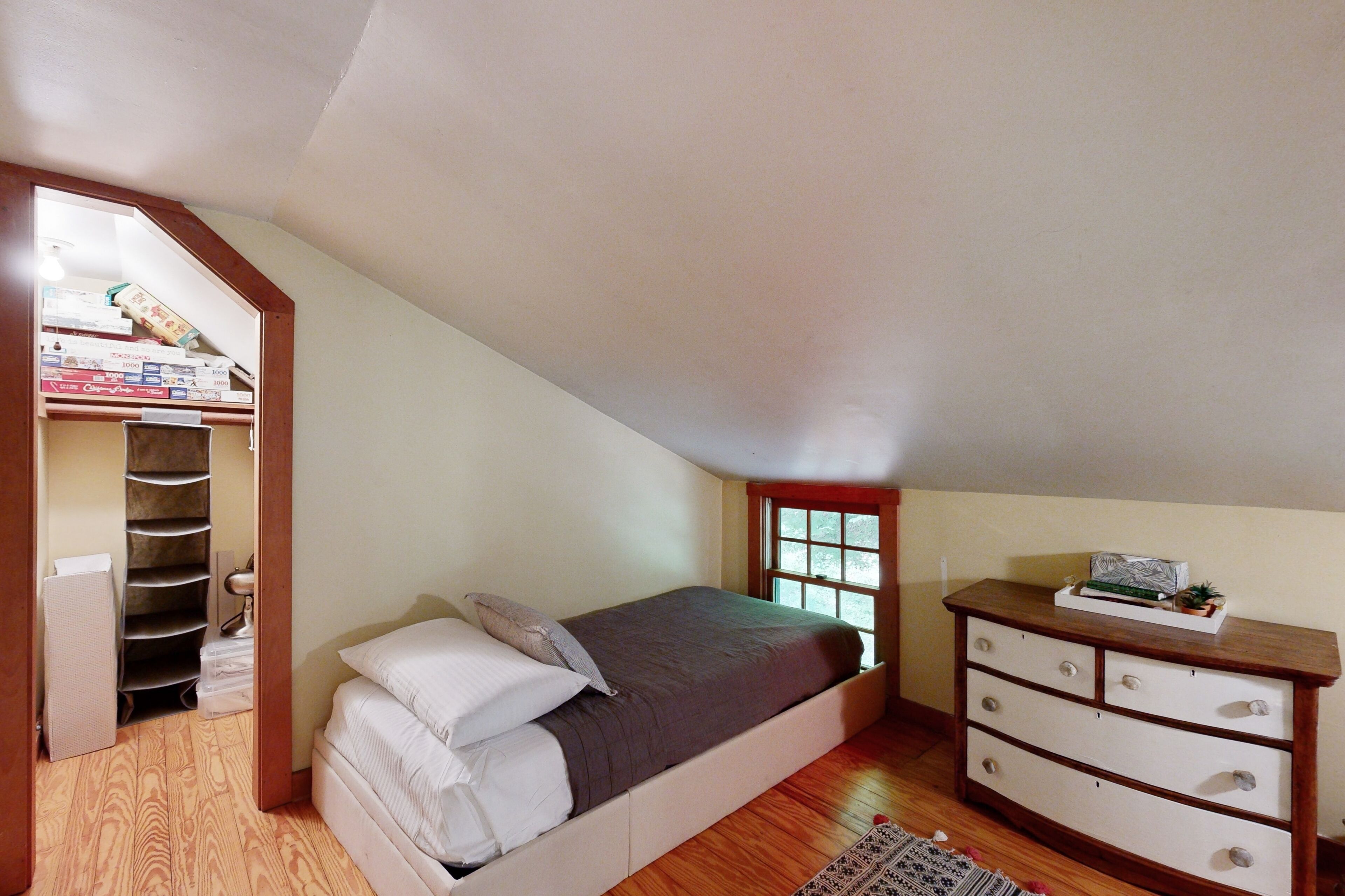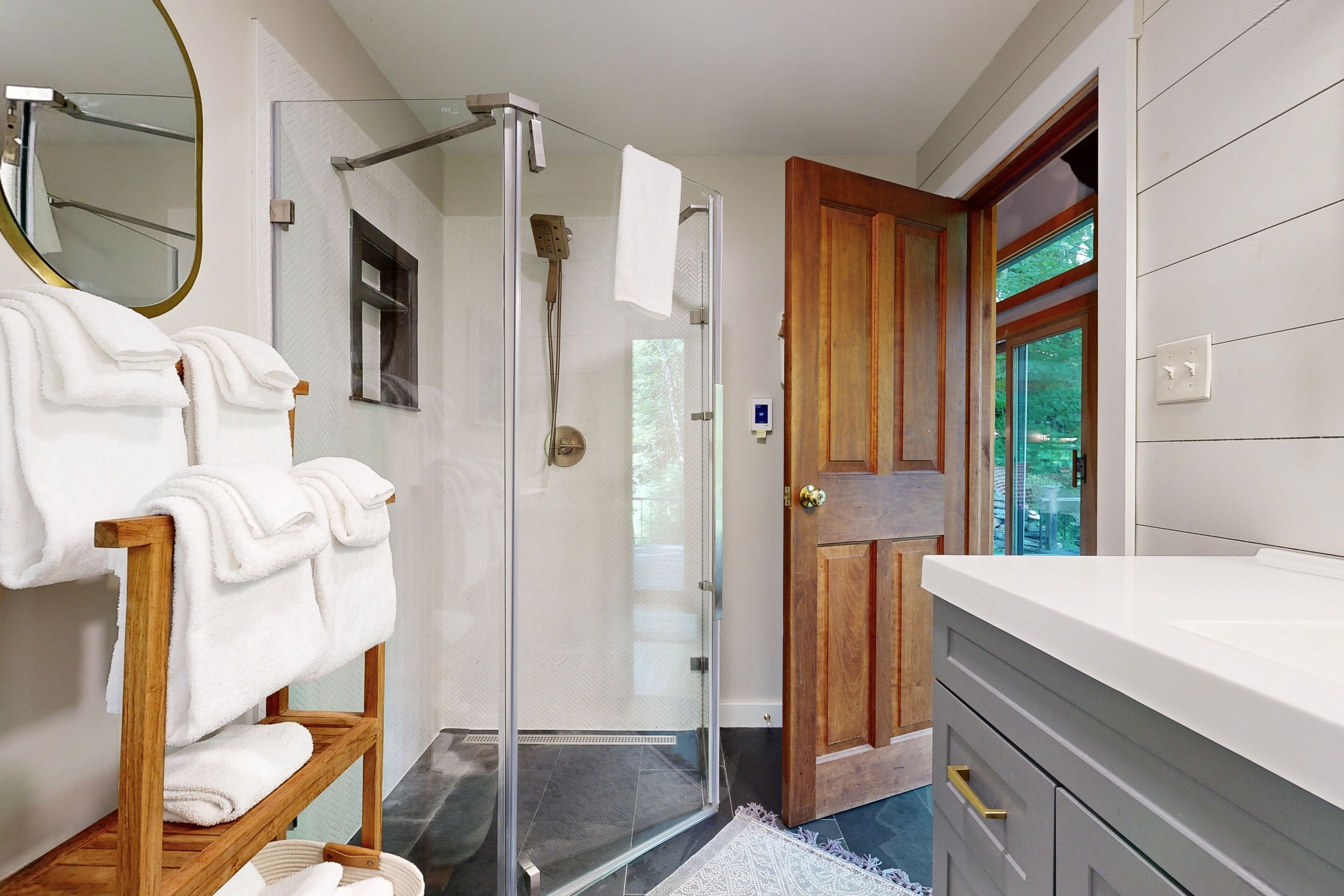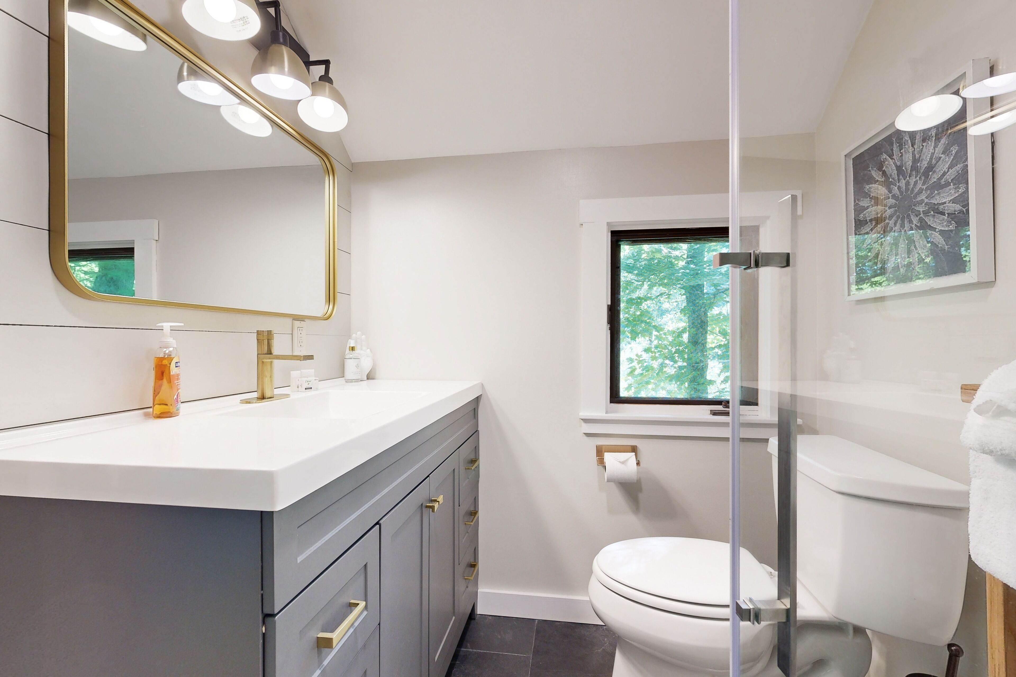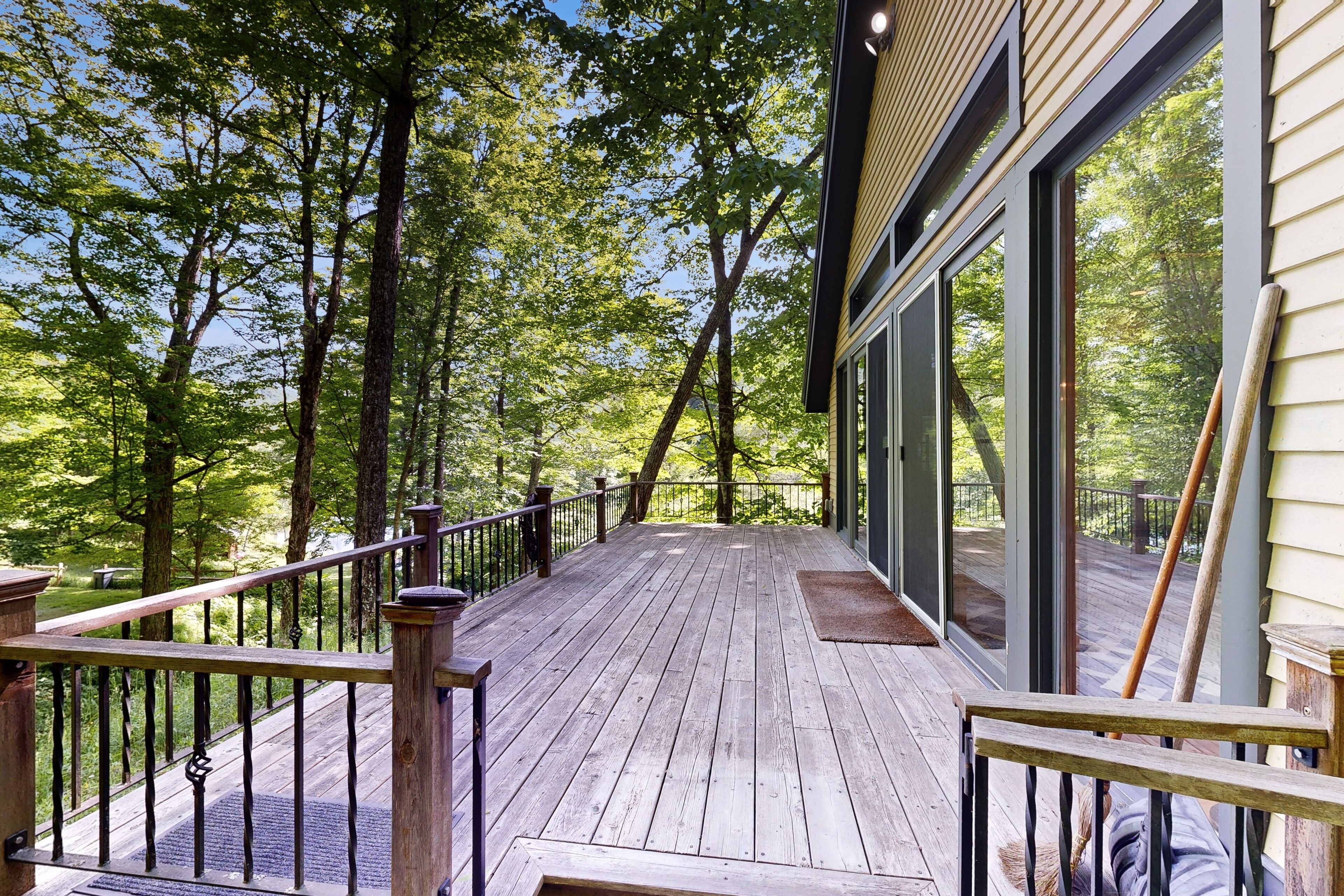 Charming waterfront 2BR house, private beach, waterfall, firepit, wifi, kayak Wild Blue YonderOur calendar is updated in real-time & our nightly rates are accurately displayed. Simply enter your desired dates and click 'Book Now!'Escape to this charming waterfront home nestled on 20 acres in Barnard, VT, offering a serene retreat with private sandy beach access, a cozy fire pit, and a lush lawn for relaxation. The wood-burning stove and gas fireplace provide a warm ambiance, perfect for unwinding after a day of outdoor adventures. This beautiful property boasts a range of amenities, including WiFi, a fully equipped kitchen with modern appliances, and access to 2 kayaks and 1 canoe at the home's nearby Sugar Shack on the pond's edge. Enjoy the stunning mountain views from the balcony or explore the surrounding area with activities like cross-country skiing and snowboarding just a stone's throw away. In the summer, the cabin stays naturally cool under a canopy of trees, creating a tranquil oasis for guests to enjoy. The nearby Lime Pond feeds a picturesque waterfall on the property that changes with the seasons, adding to the charm of this idyllic location. Whether you're seeking a peaceful retreat or an adventure-filled getaway, this home offers the perfect setting for a memorable vacation in Vermont. With its proximity to horseback riding, Nordic skiing, fishing, kayaking, and more, this property is ideal for outdoor enthusiasts looking to immerse themselves in nature. Explore the quaint village of Barnard or take a short drive to enjoy local restaurants, cinemas, and museums. Whether you're seeking relaxation or outdoor excitement, this waterfront home provides the perfect base for your Vermont escape. Book your stay today and experience the beauty of Barnard firsthand!Things to KnowCheck-in time: 4:00 p.m.Check-out time: 10:00 a.m.All guests shall abide by Vacasa’s good neighbor policy and shall not engage in illegal activity. Quiet hours are from 10:00 p.m. to 8:00 a.m.No smoking is permitted anywhere on the premises.Parking notes: There is free parking available for 3 vehicles.Due to local laws or HOA requirements, guests must be at least 21 years of age to book. Guests under 21 must be accompanied by a parent or legal guardian for the duration of the reservation.