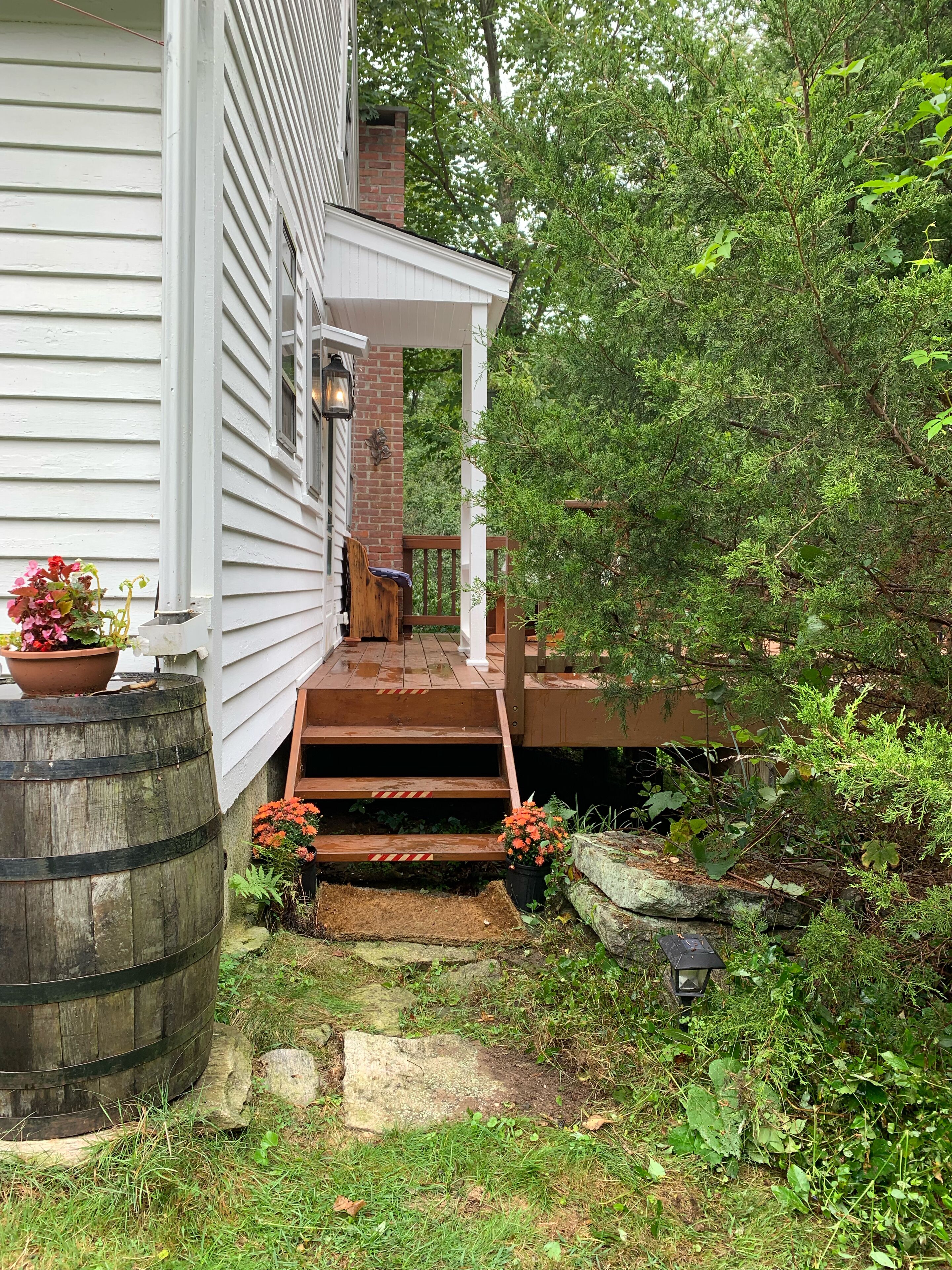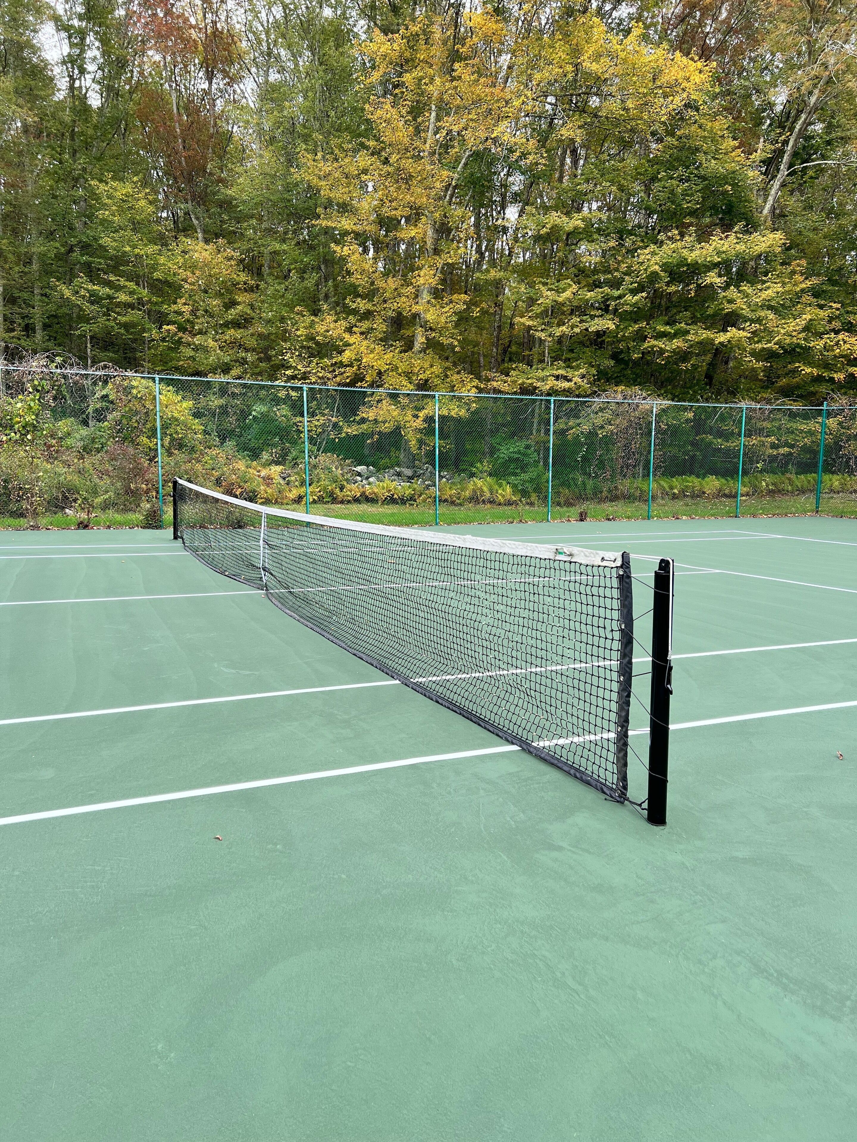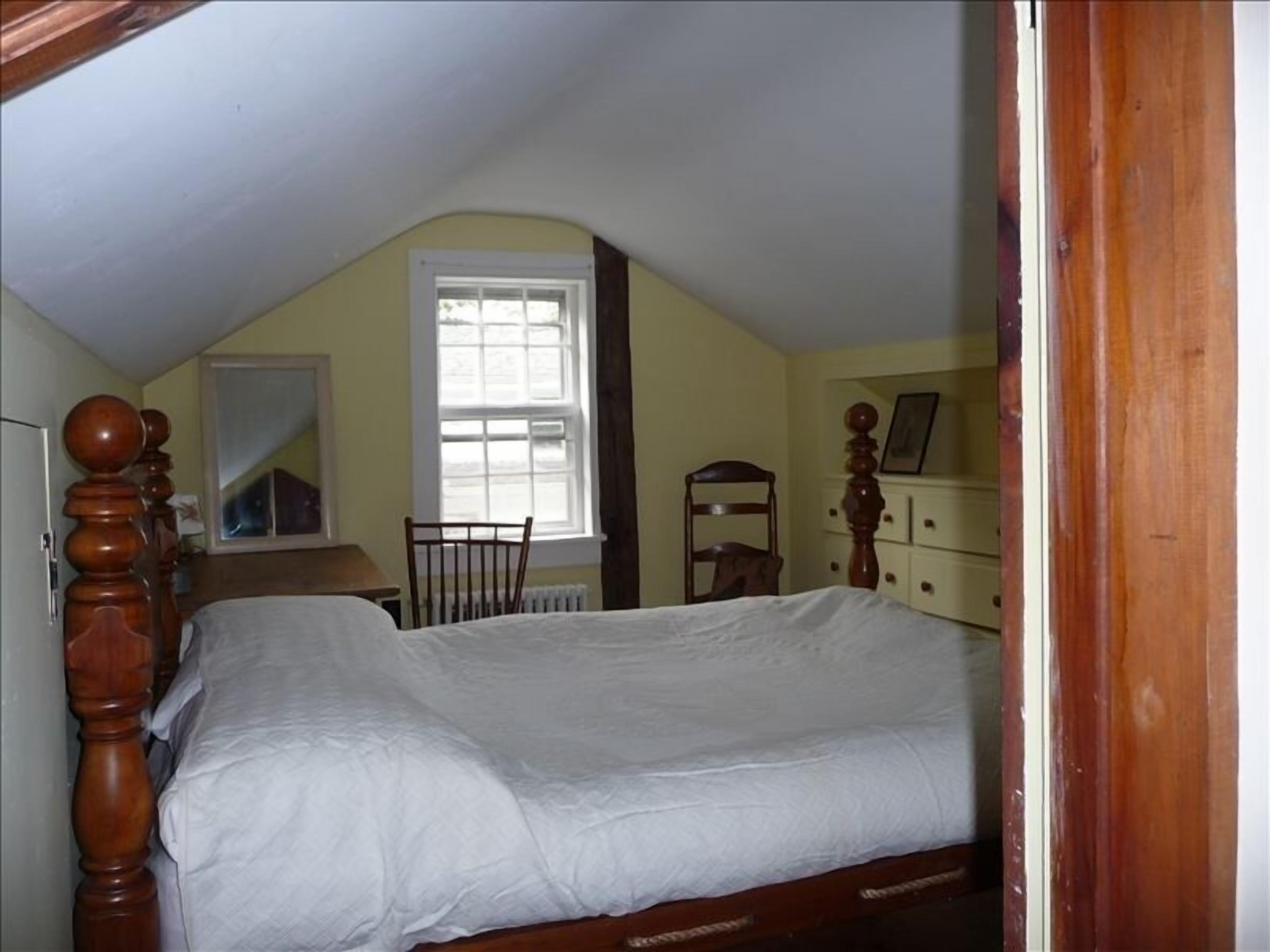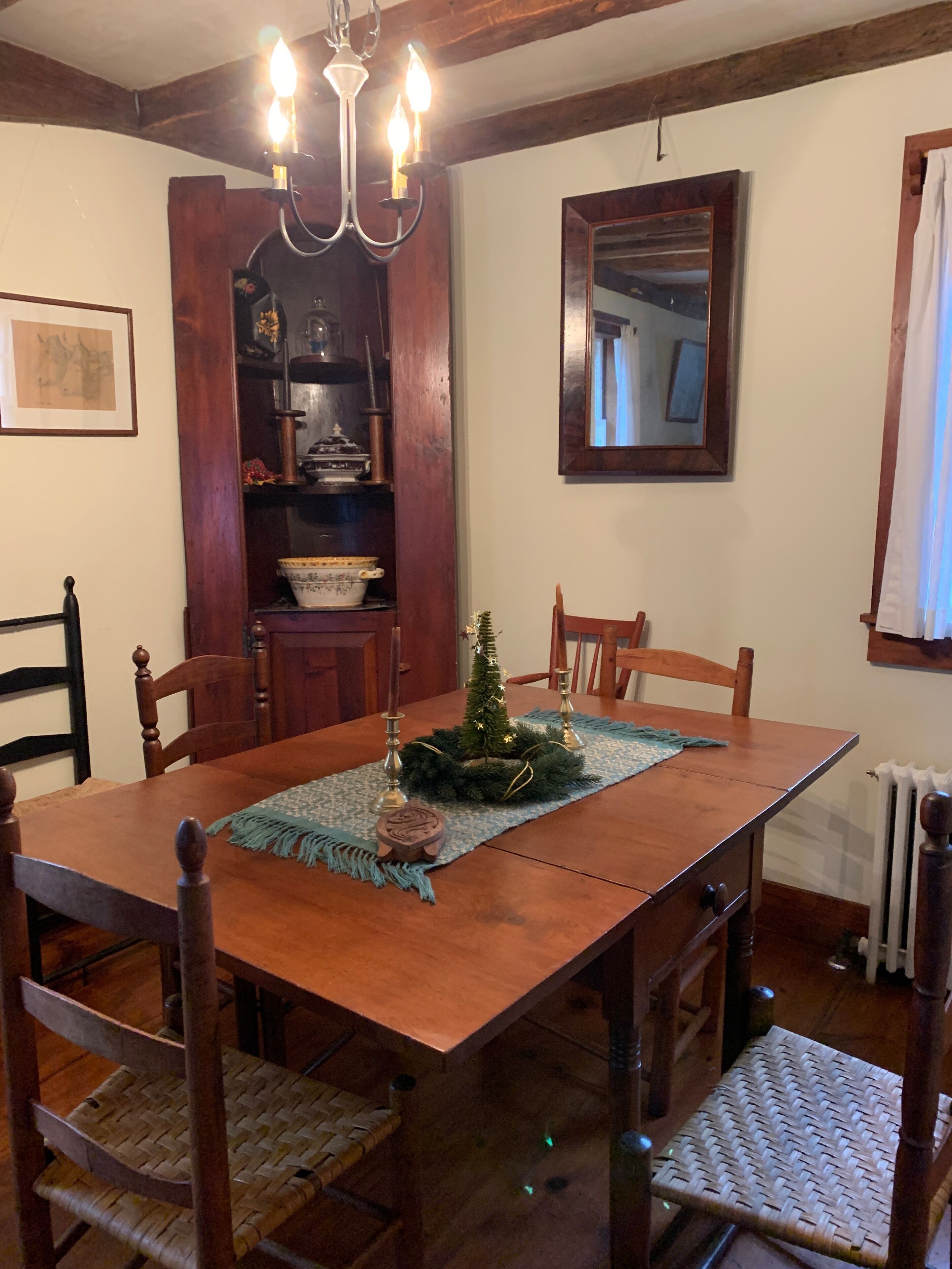 Little House in the Big Woods- Tennis Court Imagine staying in a house in Colonial Williamsburg, or OldSturbridge Village. The Little House at Jericho is an early American historic farmhouse located on the Abington side of Pomfret, Connecticut, in a secluded storybook location on 145 acres of preserved land adjacent to the Airline Trail, the Wolf Den State Forest, Mashomoquet State Park and the New England Forestry Foundation's Chase Kimball Memorial Forest. This nature preserve is suitable for bird-watching from the deck over-looking the pond or at the Audubon Society's Grasslands preserved sanctuary nearby, for long walks on the private trails in the woods (with direct access to the Airline Trail), cross-country skiing, tennis on the court, fishing in either or both of two ponds, or just for a place to get away from it all in a private nature sanctuary. Use of the tennis court is allowed, but hunting is strictly prohibited, as is use of any off-road vehicles. It is ideal for an artist or writer’s retreat. The Little House is a unique historic property that has been lovingly preserved by eight generations of the same family who have lived at Jericho since 1814. It is the birthplace of the famous industrialist and philanthropist, Augustus Sabin Chase, of Waterbury Connecticut fame (see Waterbury Hall of Fame, where he, his son, and one of his granddaughters are honored). This antique house has one slightly larger downstairs and two small upstairs bedrooms, a spacious living/dining room with a huge granite fireplace, and can sleep up to four people comfortably. Furnished with period country antiques, guests feel transported into the 18th century, until they slide back a door to find a modern kitchen with a view over an orchard and pond from a large deck, and an updated bathroom. It is not suitable for the disabled or for extremely large people, because it is a pre-1800 house with small period furnishings and is not wheelchair-accessible. The house is hypo-allergenic, and bedsheets are 100% cotton, laundered at high temperatures and ironed. Therefore, no pets or smoking are permitted. Jericho is situated close to Pomfret and Rectory Schools, Woodstock Academy and half an hour from Marianapolis Prep School, as well as close to the numerous scenic drives, destination restaurants, antique stores and boutiques in Windham County. This historic little house is nestled in the forest, at the end of a long straight dirt town road , far from the stress of daily life, but only a short drive from Old Sturbridge Village and Mystic Seaport. It is close to the Connecticut Audubon Center’s Grasslands Sanctuary, Goodwin Conservation Center in Hampton and several state parks and forests ideal for hiking. It is also less than an hour's drive from Hartford, Providence and Worcester and only a 20 minute drive from the University of Connecticut at Storrs. Boston is 90 miles Northeast and New York City 150 miles Southwest.Keywords: cottage, little house, tennis court, hiking, historic farmhouse, antique house, tennis, fishing, pond, secluded getaway, artist or writer’s sanctuary, birthplace, quaint, peaceful, nature sanctuary, UCONN, Pomfret, Rectory School, Airline Trail