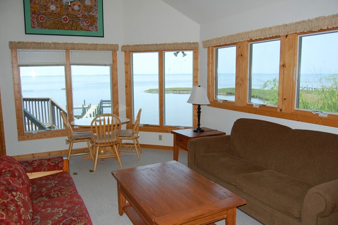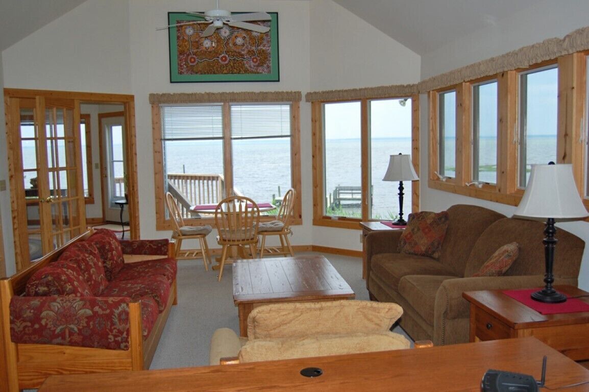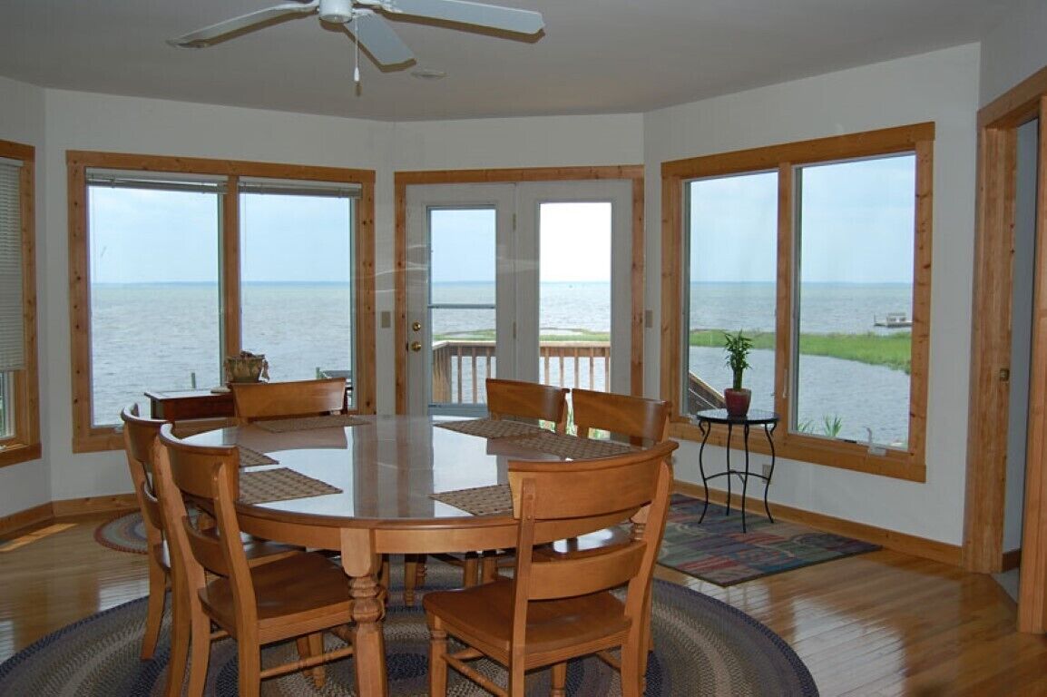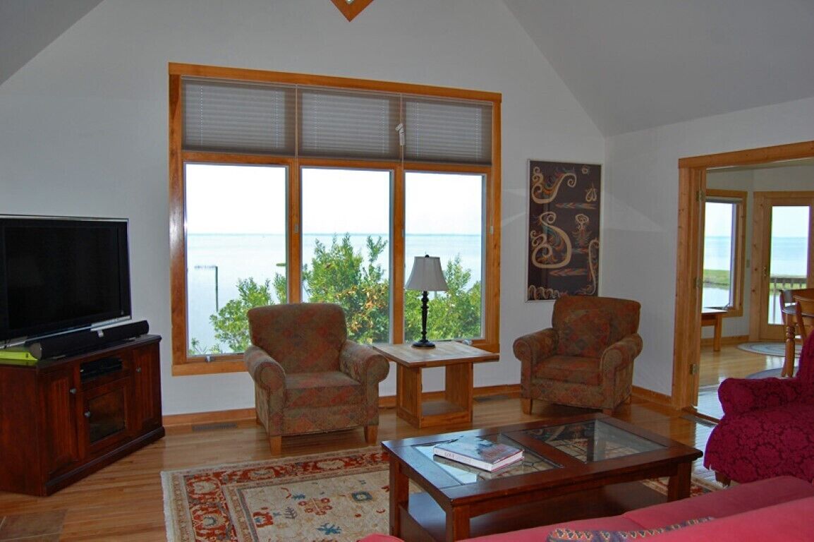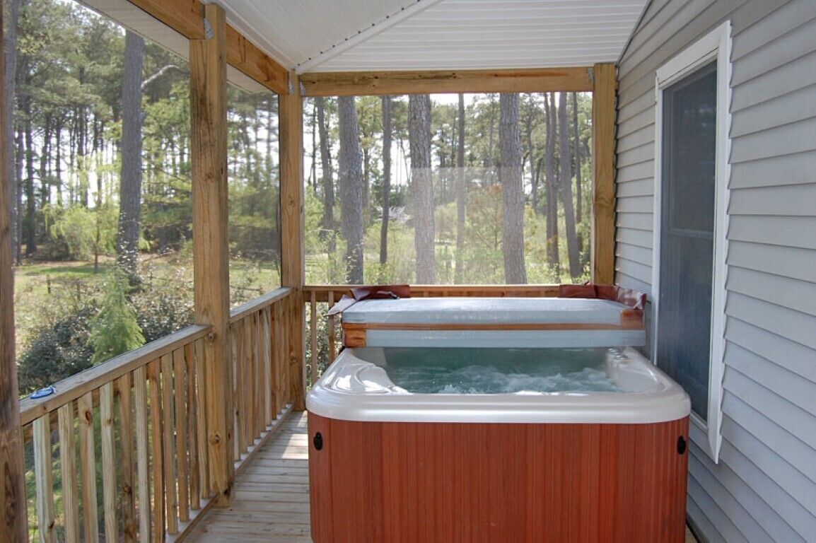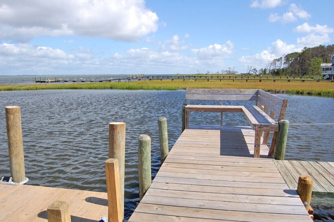 Sialang at Chincoteague Situated on the Chincoteague Bay, this fabulous home has marvelous views & room for the whole family.Private Pier, perfect for Crabbing. Lower stationary dock for kayaks.Peaceful Natural Setting with amazing Sunsets.Screened Porch in Wooded Setting features 2 Person Hot Tub for off-season only.First Floor Features:Spacious living room with TV & cozy nook for games or puzzles.Waterfront den with extra living space.Kitchen, dining room and full bath in hallway.Bedroom 1 has a queen bed, private bath, and waterfront balcony.Bedroom 2 has two twin beds.Second Floor Features:Bedrooms 3 & 4 have a queen bed and a shared hallway bath.