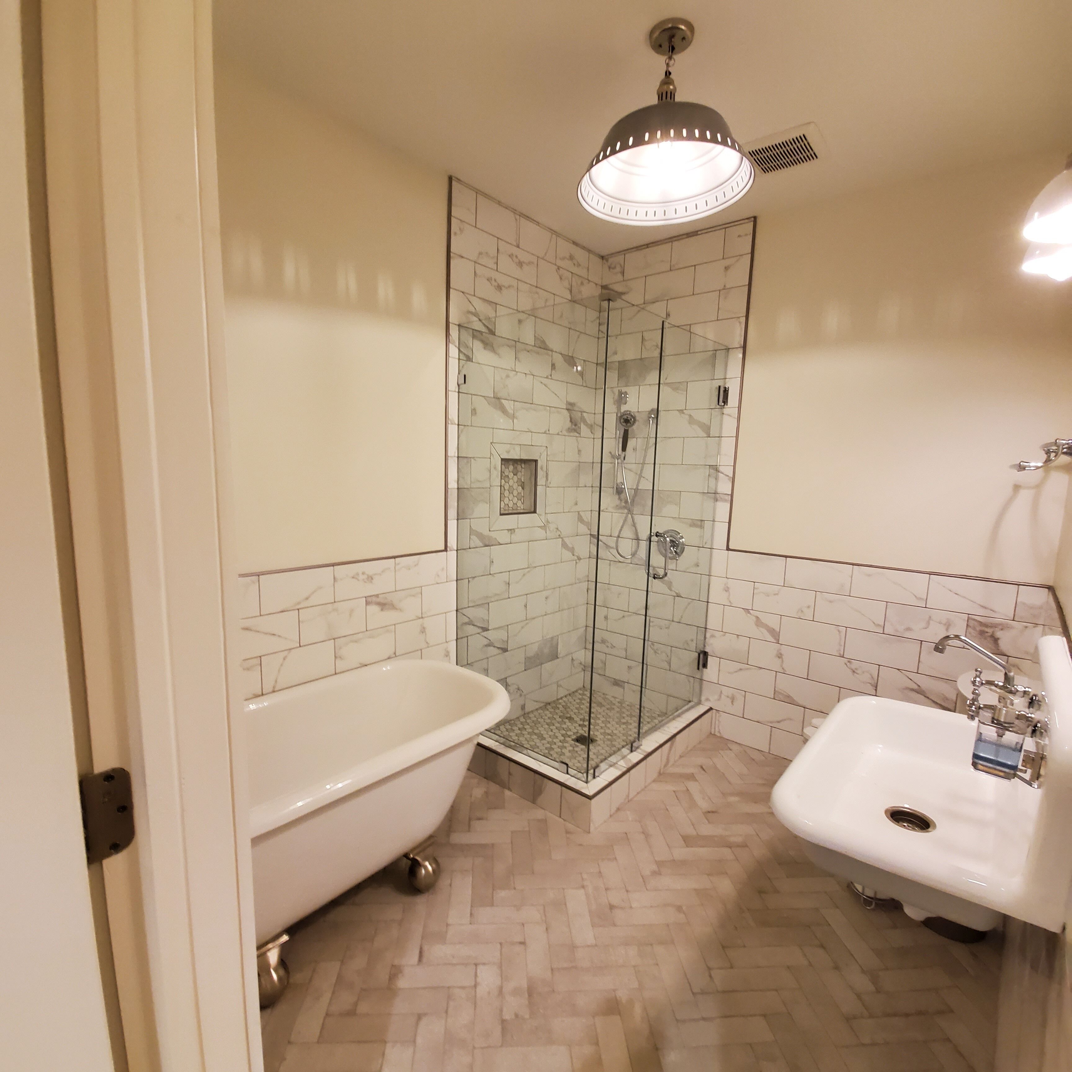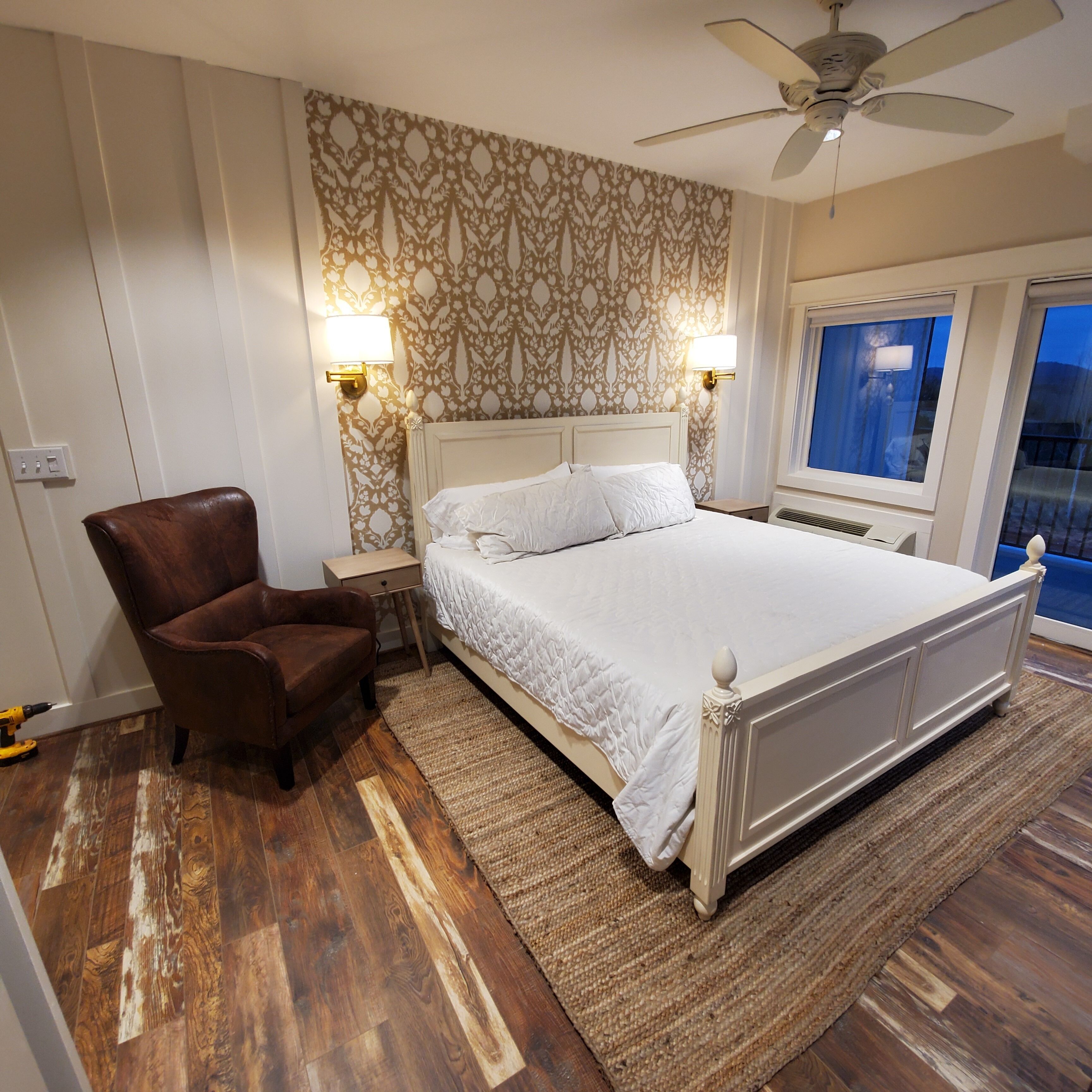 Bedroom 9 - The Big Creek Lodge Bedroom 9 is a deluxe room in the The Big Creek Lodge on the 350 acre resort property of Luna's Trail Farm and Event Center. Guests will enjoy beautiful views of Hanging Rock and Pilot Mountain from their private balcony. This deluxe room includes a claw foot tub and a walk in shower. It is our smallest room, but it easily has the best view, with Pilot Mountain visible from bed! There is a restaurant downstairs serving breakfast and dinner Thursday evening - Sunday eveningThe room is upstairs on the 2nd floor, and unfortunately we do not have an elevator, so guests would need to be able to climb the stairs, but there's a nice view at the top!There is an event center on the first floor of this building, so please ask ahead as to whether an event would affect your stay.