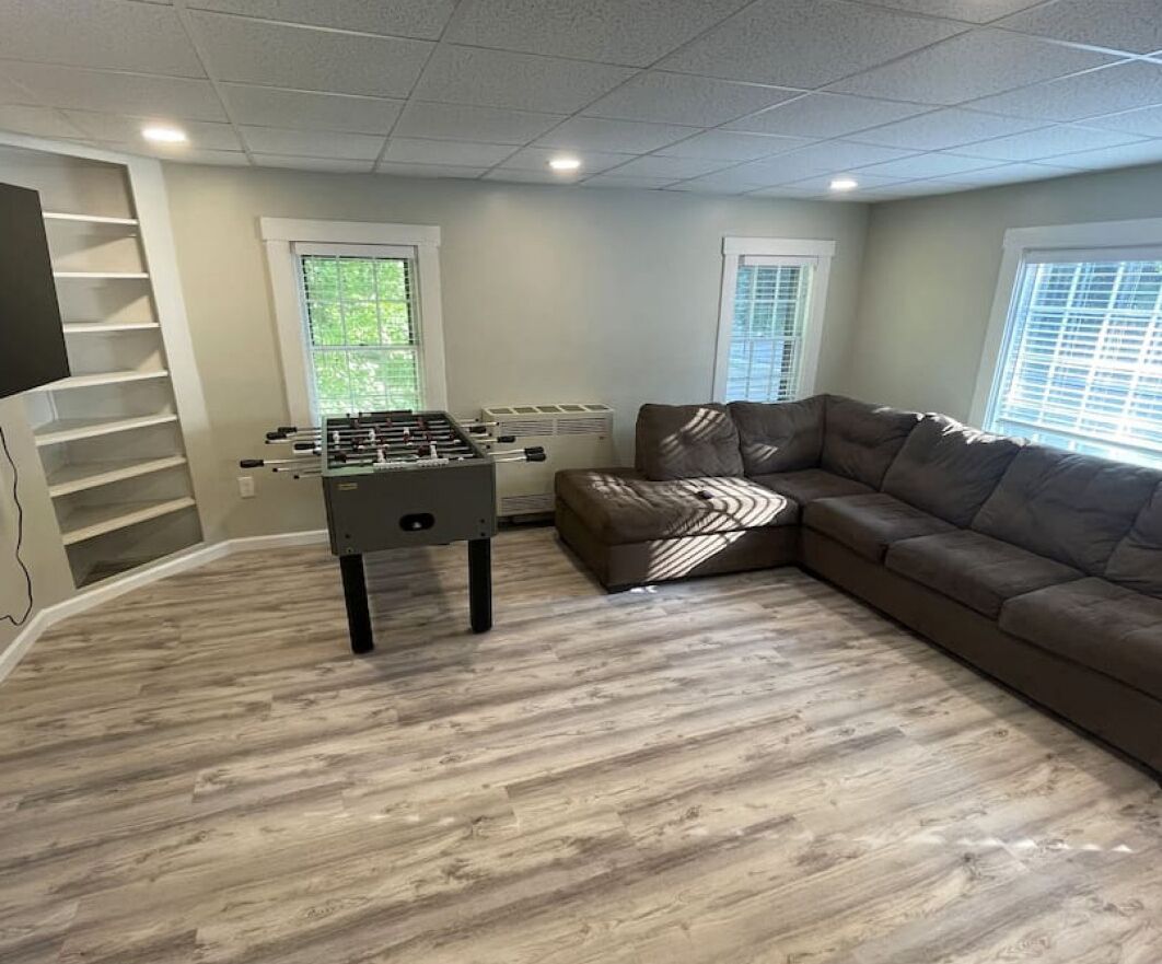 Large, Comfy Family House w/ Lake & Beach access The Woods at Windsor is located on 225+ acres of beautiful woodland in southern New Hampshire. The property was previously used as a youth camp, with lots of room to explore and play. We are now offering single-family homes for rent, so if have multiple families, or are planning a family reunion, we can accommodate you. Close to skiing, on a beautiful semi-private lake, with miles of trails being reestablished. This property can bring all your friends, but keep your space! Ask us about renting multiple houses for your stay. With property improvements happening daily, each year will bring more for your family to enjoy. This year we added pickleball courts! A golf cart is provided to get around the camp in the Summer and Fall.The house you are looking at now is quite spacious with an updated kitchen and living space. Plenty of room for the family to spread out, and a separate game room for the kids! Note* The big green barn building behind the house is the camp's maintenance shop. We use it to store the equipment mostly. It is pretty quiet most of the time, and we are still waiting for the green giants to grow up as a fence.The house has a private parking area and is nestled in a private wooded area. Plenty of parking for all your friends and family.You will have access to White Pond Lake. It is a semi-private lake with 150-foot-long beach access for the camp guests only. There are all different sizes of lifejackets, beach chairs, zero gravity chairs, paddles, etc. in the boathouse. Please put everything you take out back to the original place after each day of use. Really appreciate.Nearest grocery store:>> 13 minutes to Shaw's in Hillsborough NH.Nearby Ski Resorts:>> 23 minutes to Pats Peak Ski, NH (Ski and Snowtubing)>> 30 minutes to Crotched Mountain, NH (Accept EPIC PASS )>> 38 minutes to Mount Sunapee, NH (Accept EPIC PASS )>> 90 minutes to Okemo, VT (Accept EPIC PASS )Nearby State Park>> Fox State Forest is about 15 minutes away. It is a good outdoor park with activities for families with kids.Nearby Restaurants>> Tookey Mills in Hillsboro is a cool outdoor pub.>> Albertos in Bennington is a family Italian restaurant with good food.>> Country Spinit in Henniker has a good selection, service, and quality food.House Rule***** Pet(s) *****Pet(s) friendly house with an additional pet fee. $100 per stay for up to 2 dogsThe third dog will be an additional $100 per stay.The maximum number of dogs we allow is 3.Cats are not allowed because some people are allergic to them.****** Extra Guest Fee******The extra Guest Fee is $35 per person per night***** Additional House Rule *****• There are no launching boats or jet skis at the house.• Please leave used sheets on the beds so they can be stripped and washed after checkout.• Please try and conserve towel use by reusing towels if possible. Used towels should be left in the bathroom on the floor before checkout to distinguish used towels from unused towels.• Please bring the trash to the dumpster we own. It is about 2 minutes walking distance, or 1 minute driving distance, from the house you are staying. You can check the last picture in the rental website listing to find the dumpster location. No need to separate the recycling. All trash will get sorted for recycling.• Please take all food out of the fridge and freezer and please make sure all garbage is disposed of before leaving.• Dishes used should be placed in the dishwasher and set to wash before leaving.• Before ordering or having any packages shipped to the residence please check with hosts first.• There is absolutely no smoking inside the house.• There are absolutely NO PARTIES ALLOWED• There are NO FIREWORKS ALLOWED***** Privately Owned Golf Cart Usage Agreement *******(A golf cart is provided to get around the camp in the Summer and Fall)By paying the fee through the rental website service request, you are agreeing to these terms.• I agree to the following conditions. In the event that I violate any of the following conditions, I agree and understand that I will be charged for any damages.• I promise to return the rented golf cart in as good condition as I received. I will operate the golf cart safely and responsibly, and I will preserve and protect the golf cart from loss or damage to the cart itself, my person or property, and the persons or property of others. I agree to be legally and financially liable for all costs of repairs to the golf cart, and for the loss, damage, and/or injuries to my person or property and the persons or property of others regardless of fault.• I understand that a golf cart is subject to the same laws and regulations pertaining to motor vehicles and therefore agree that the golf cart will be operated in accordance with the laws of the State of New Hampshire, including but not limited to the requirement that persons driving the golf cart must not be under the influence of alcohol and/or illegal drugs. I further agree that I personally will be responsible for all moving and/or parking violations issued to said cart while it is in my possession, under my control, or at any time during the rental period.• I agree that only persons who are 18 years or older and possess a valid driver’s license shall be permitted to drive the golf cart. I further agree that the maximum occupancy of the golf cart is the number of available seats (no standing on the fender).• I agree that golf cart is not allowed to drive on pavement, trails, or woods. The golf cart's maximum capacity is 4 people.***** Additional golf cart rental *****• There is one golf cart provided with your stay. We offer additional golf cart rental for $50 per day. You can message us anytime if you would like an additional golf cart.****** No motorized vehicles, boats, ATVS, etc *******• For the safety of all guests on the property, no motorized vehicles, boats, ATVs, etc are to be driven on the property, without prior writt