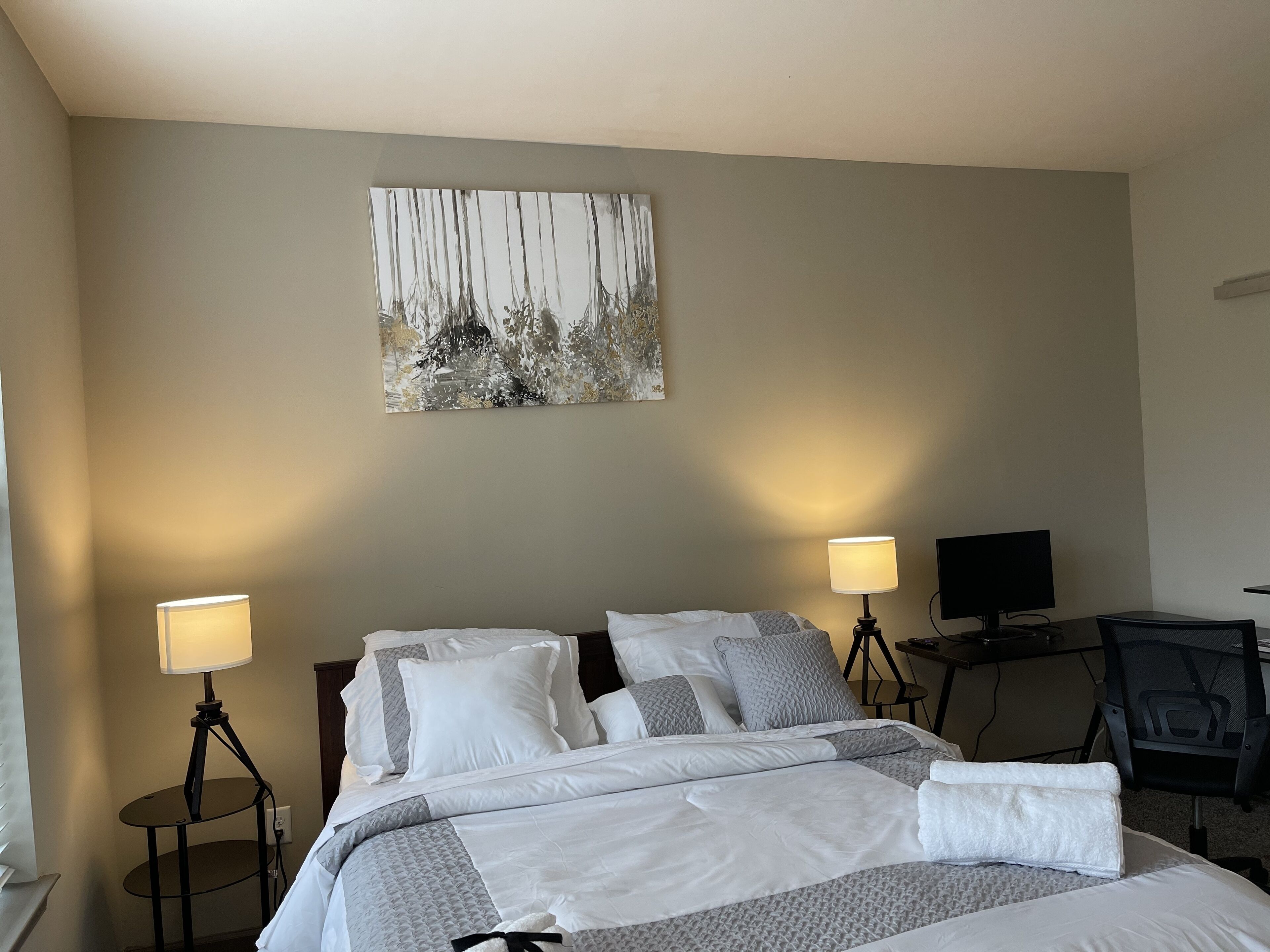 Home away from home Two bedroom unit for up to five guests. No parties, no events, no pets, noise discipline. Everything at your disposal, just leave it as you meet it and how you will like see it again. Work station/desk available for use during your stay.